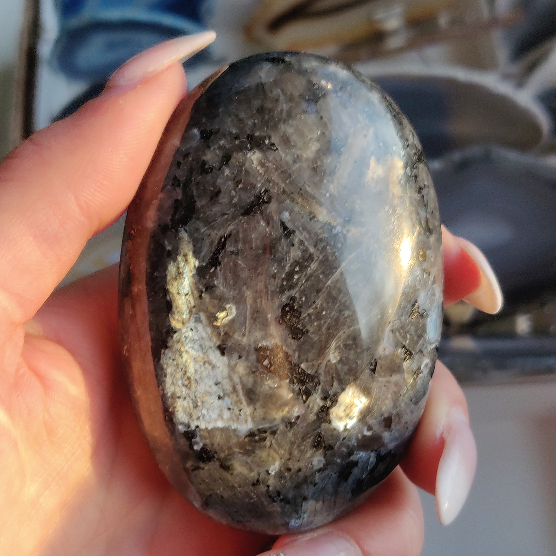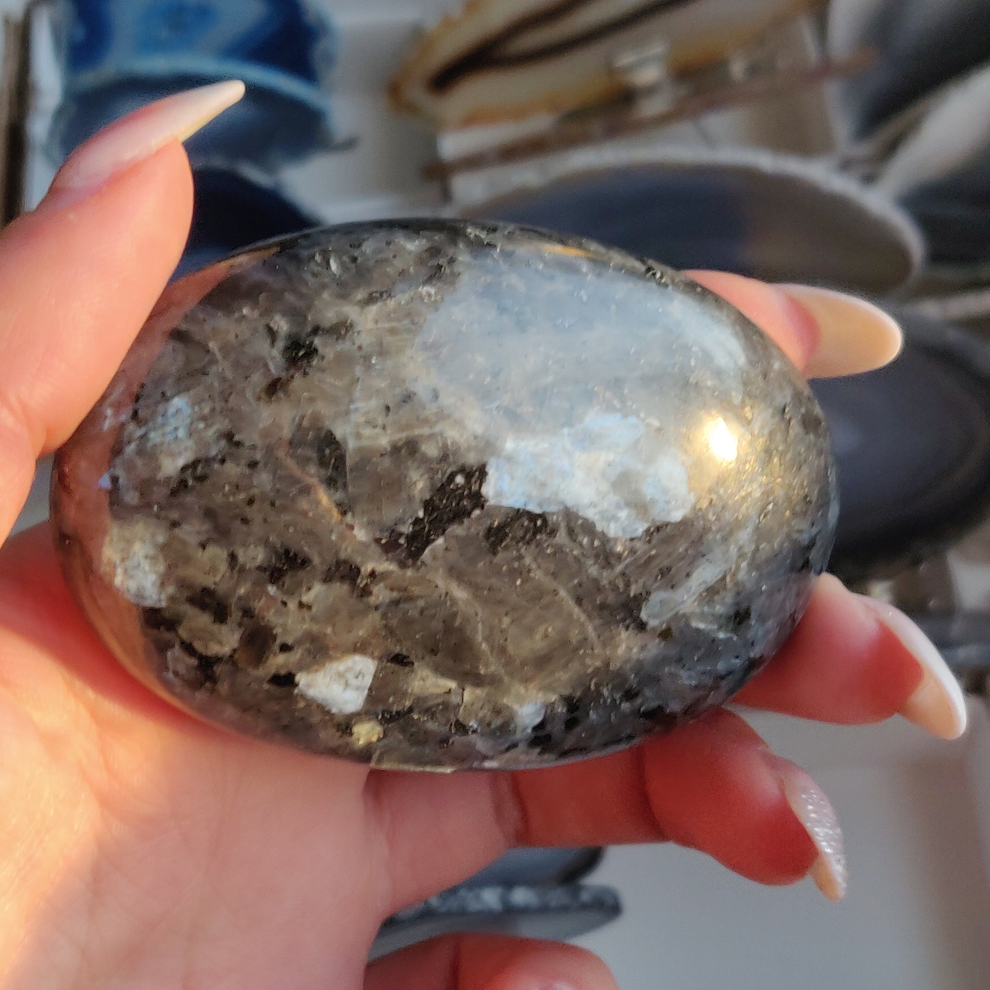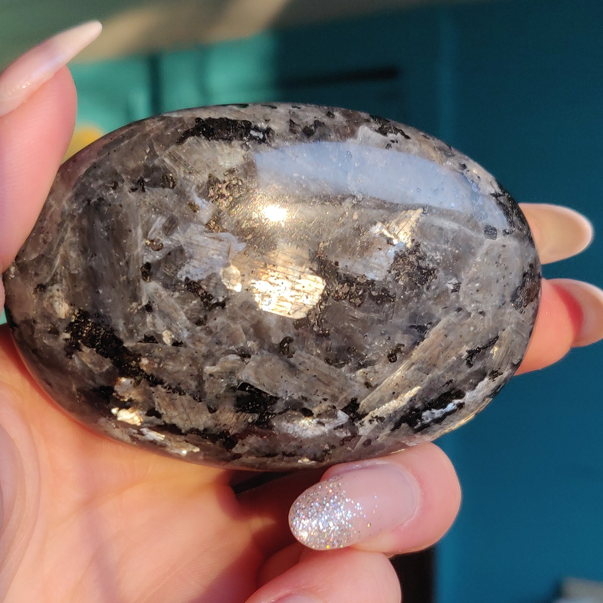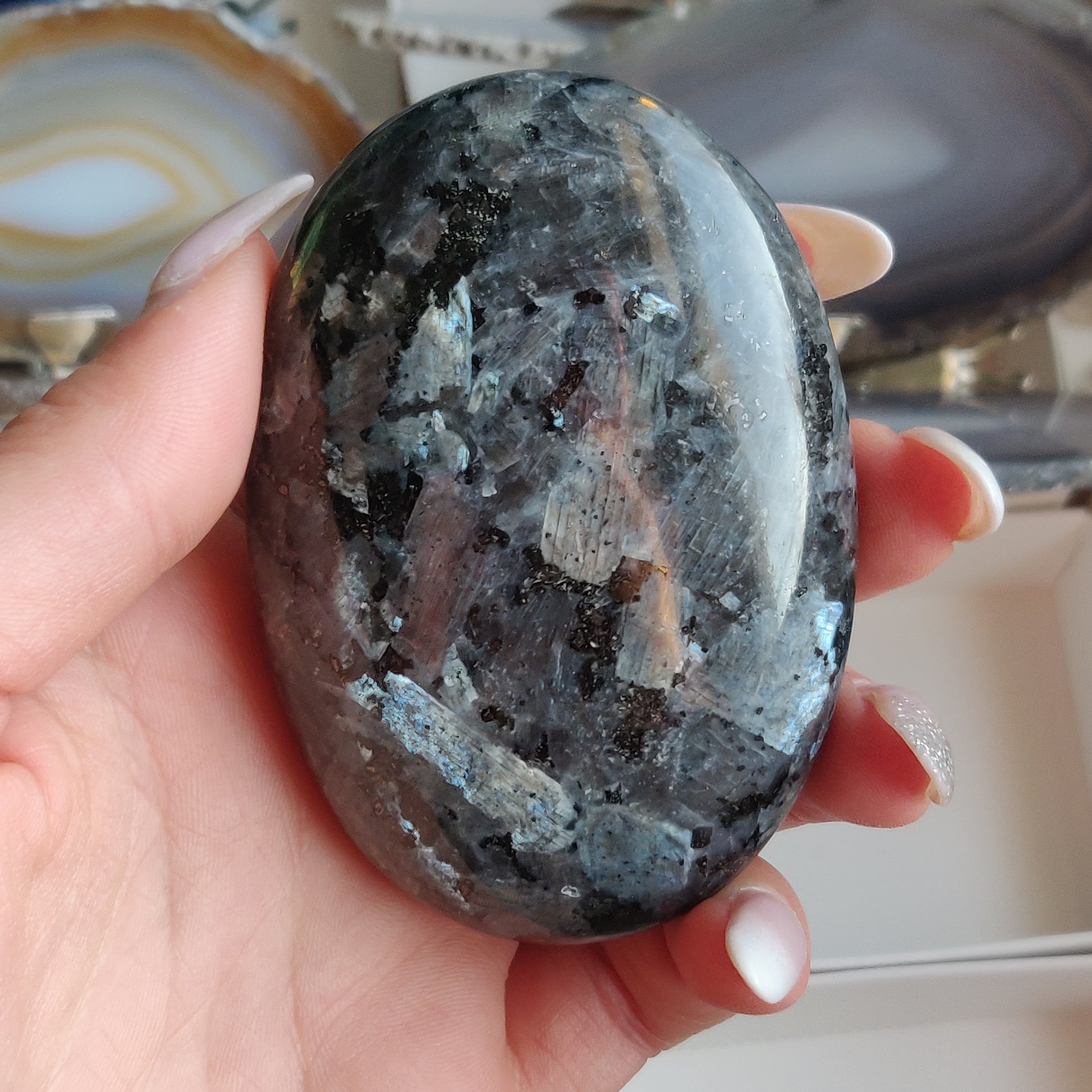 Larvikite is a beautiful gem in the Feldspar family. It is a wonderful stone to help you reconnect with nature. Larvikite encourages us not to dwell on problems, but to