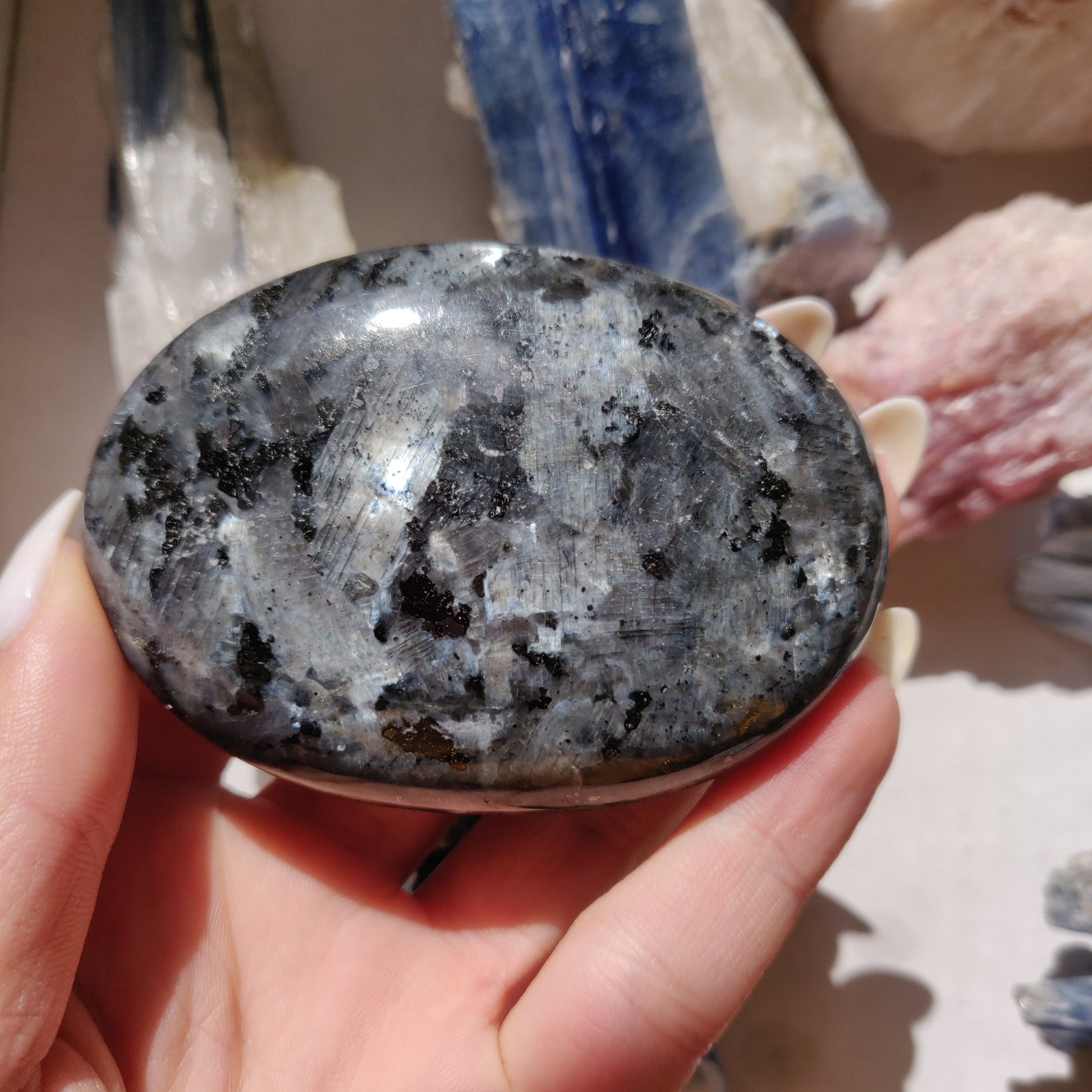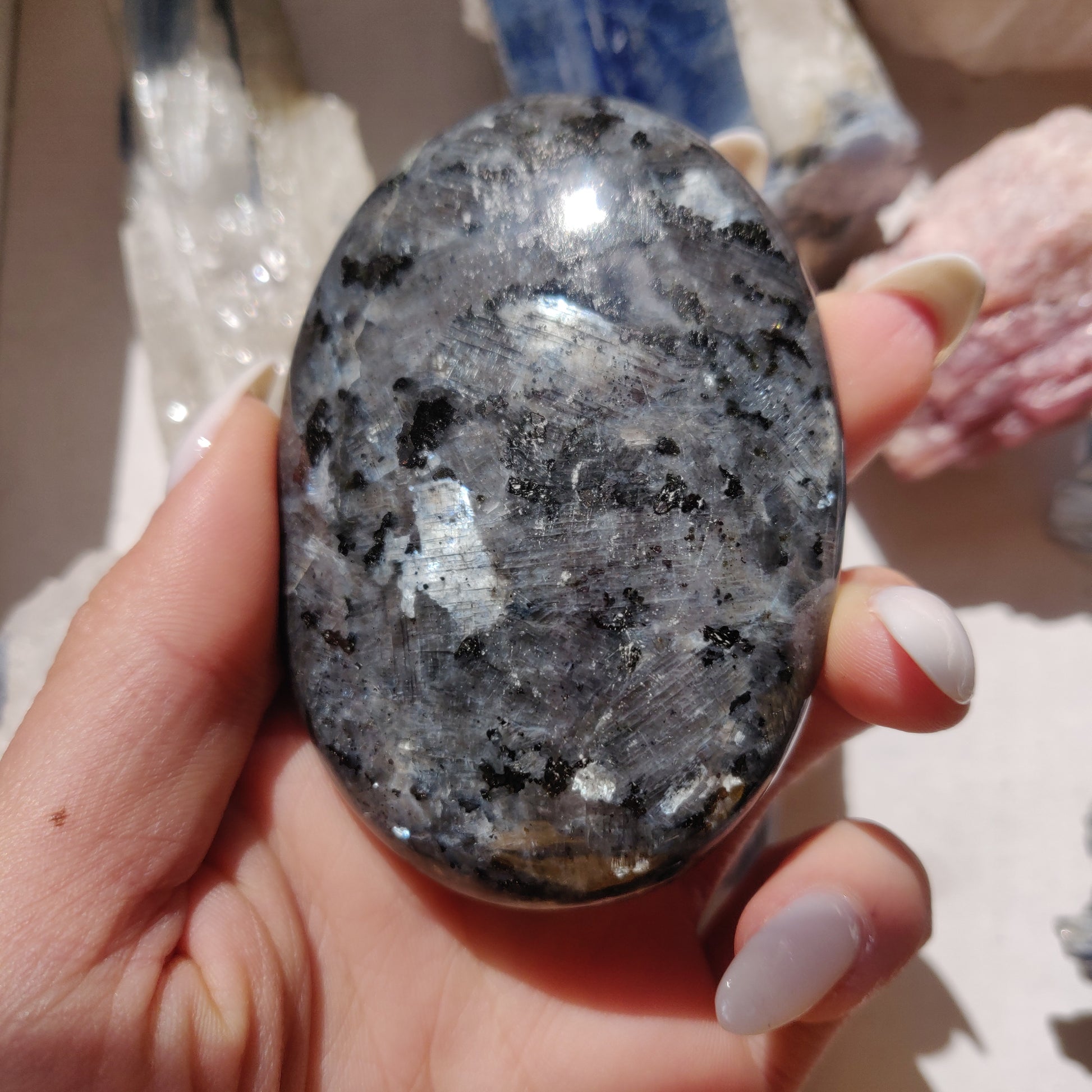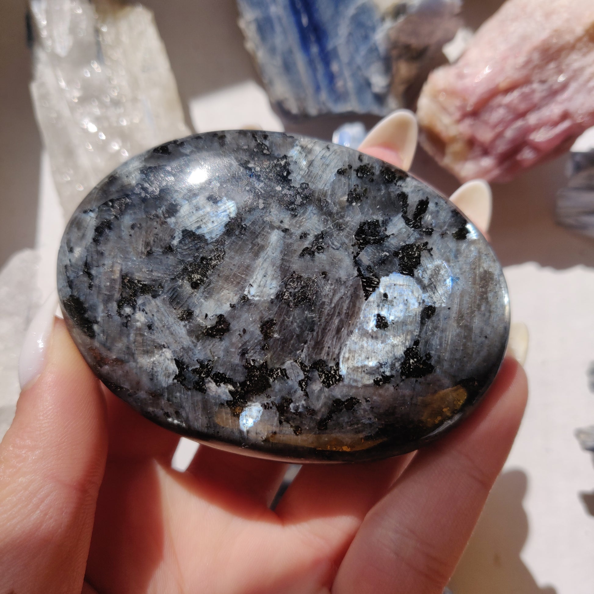 Larvikite is a beautiful gem in the Feldspar family. It is a wonderful stone to help you reconnect with nature. Larvikite encourages us not to dwell on problems, but to