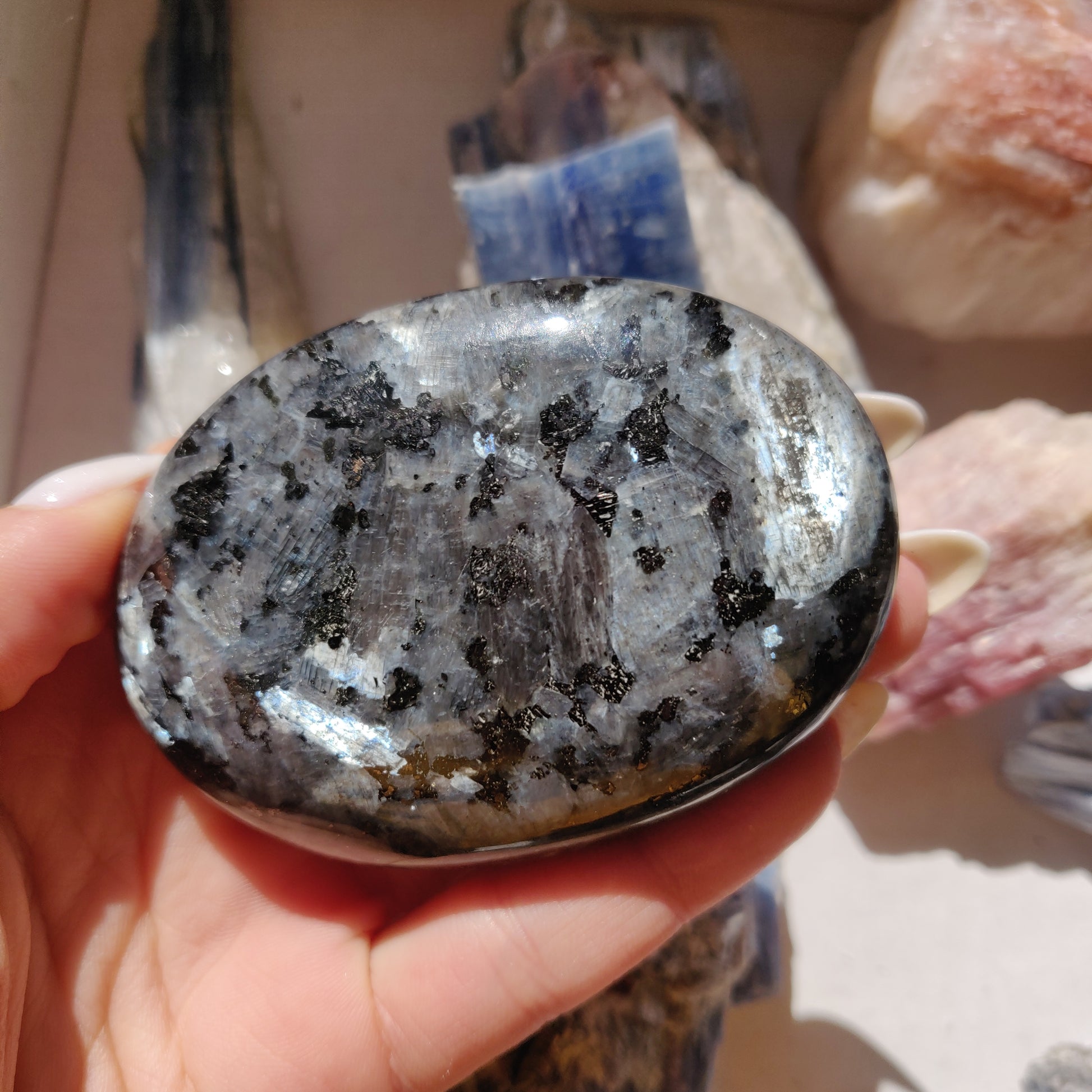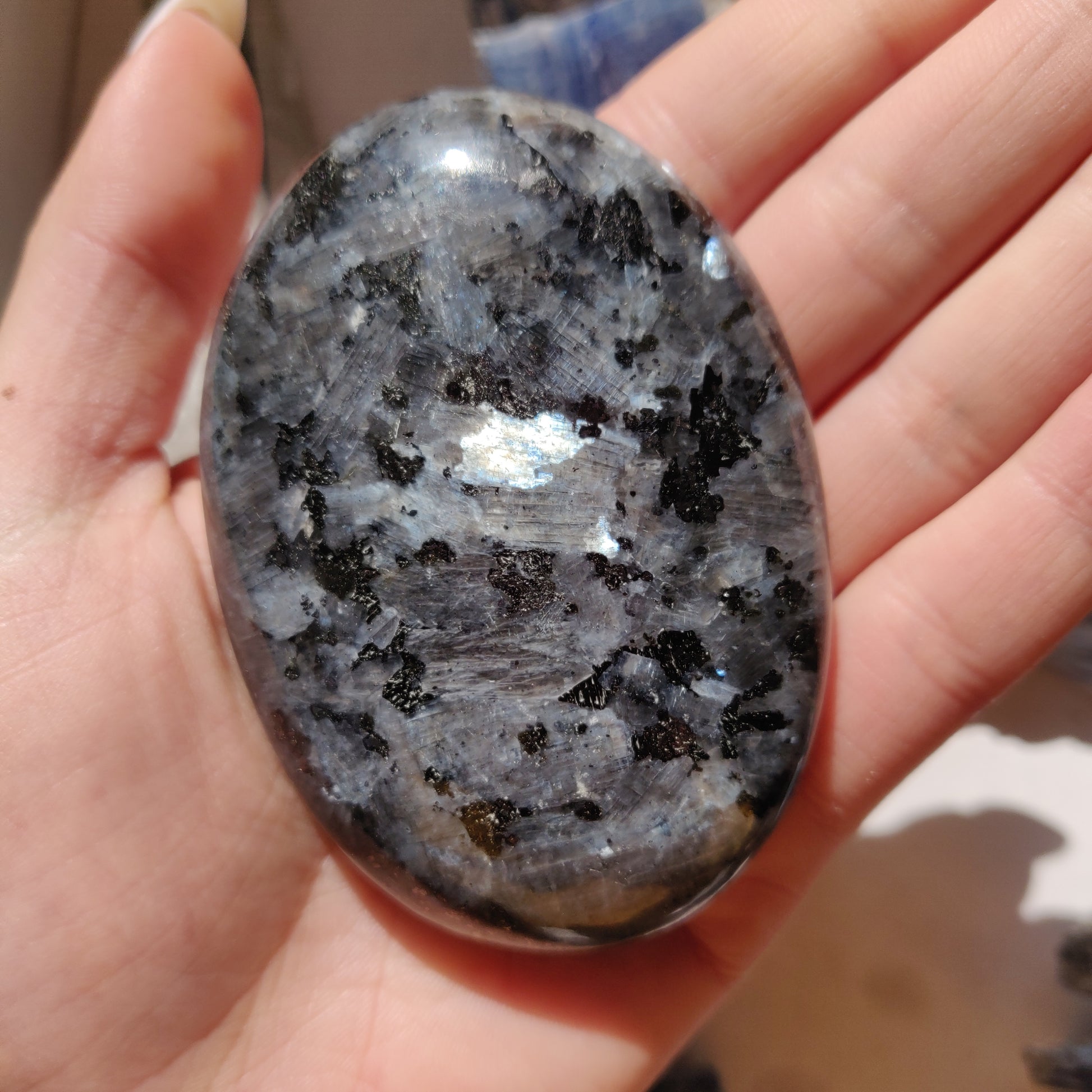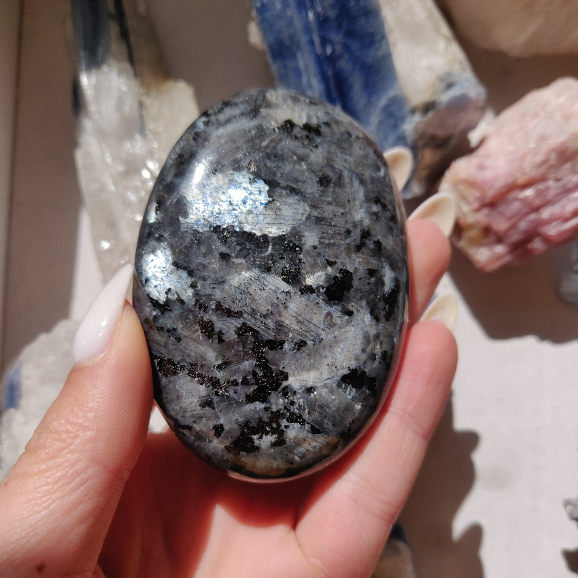 Larvikite is a beautiful gem in the Feldspar family. It is a wonderful stone to help you reconnect with nature. Larvikite encourages us not to dwell on problems, but to
