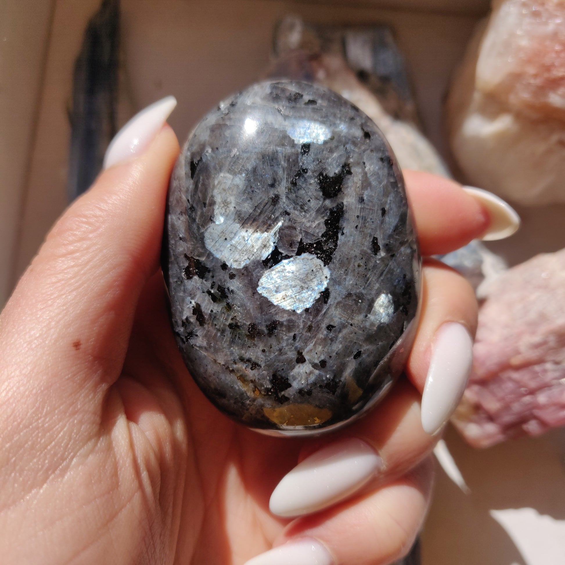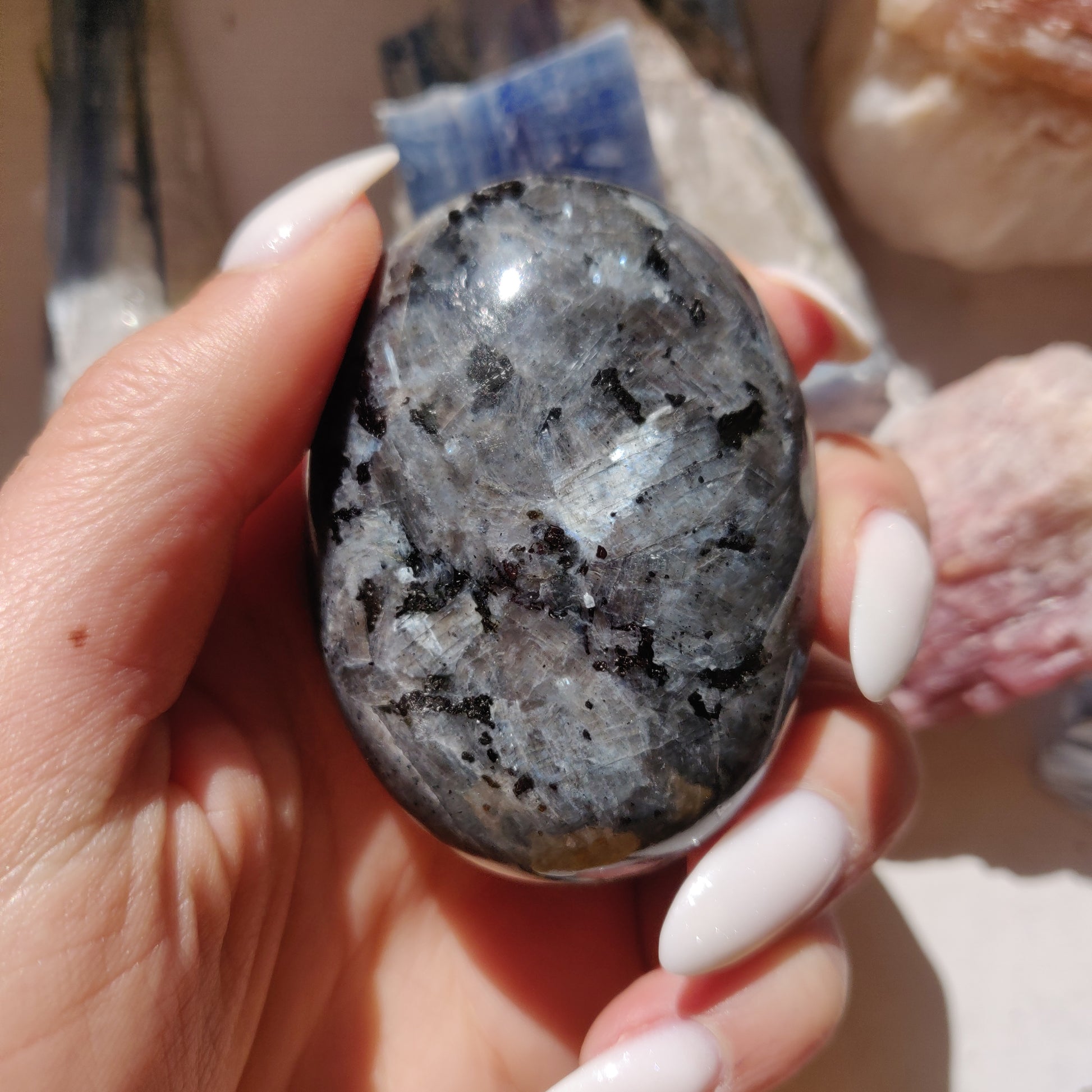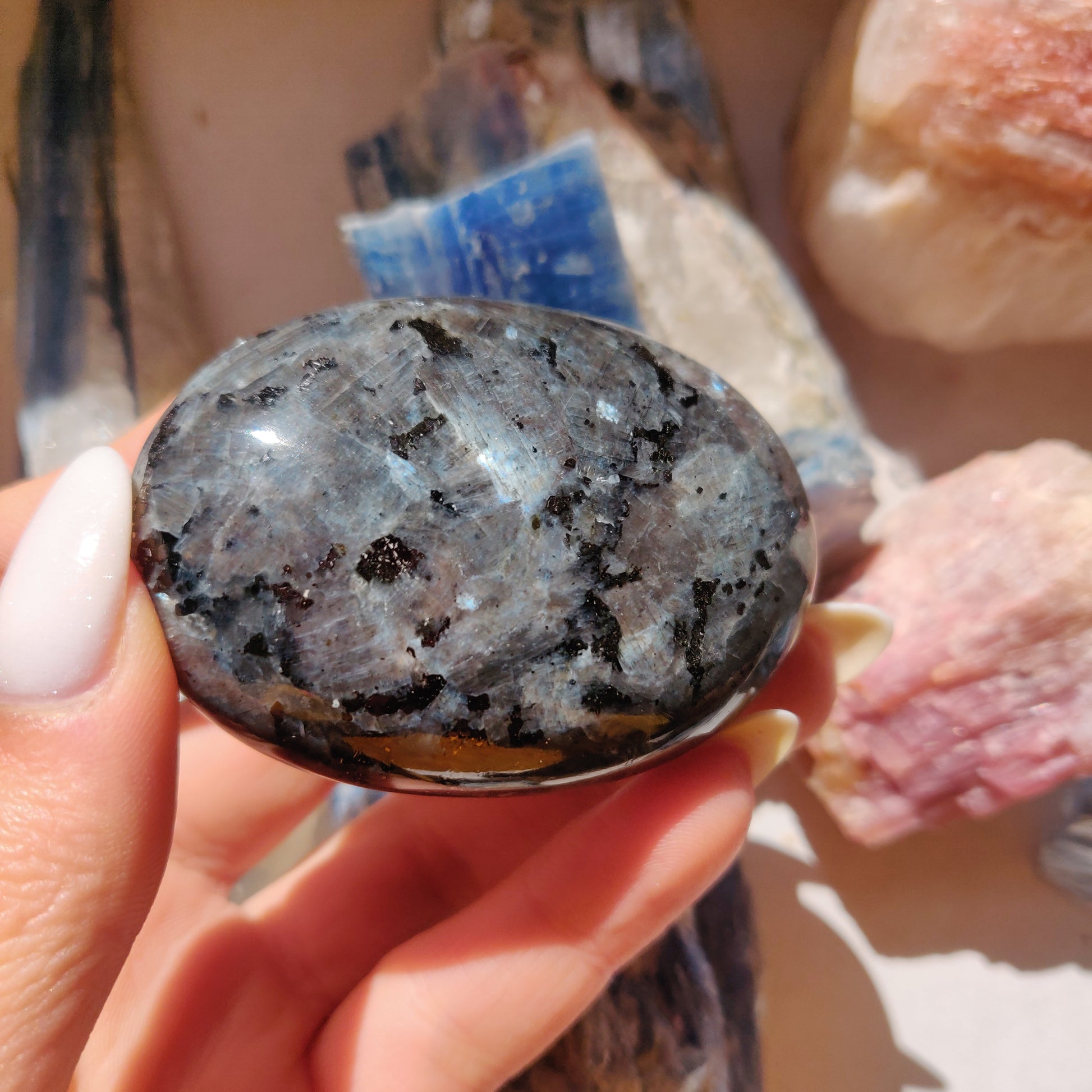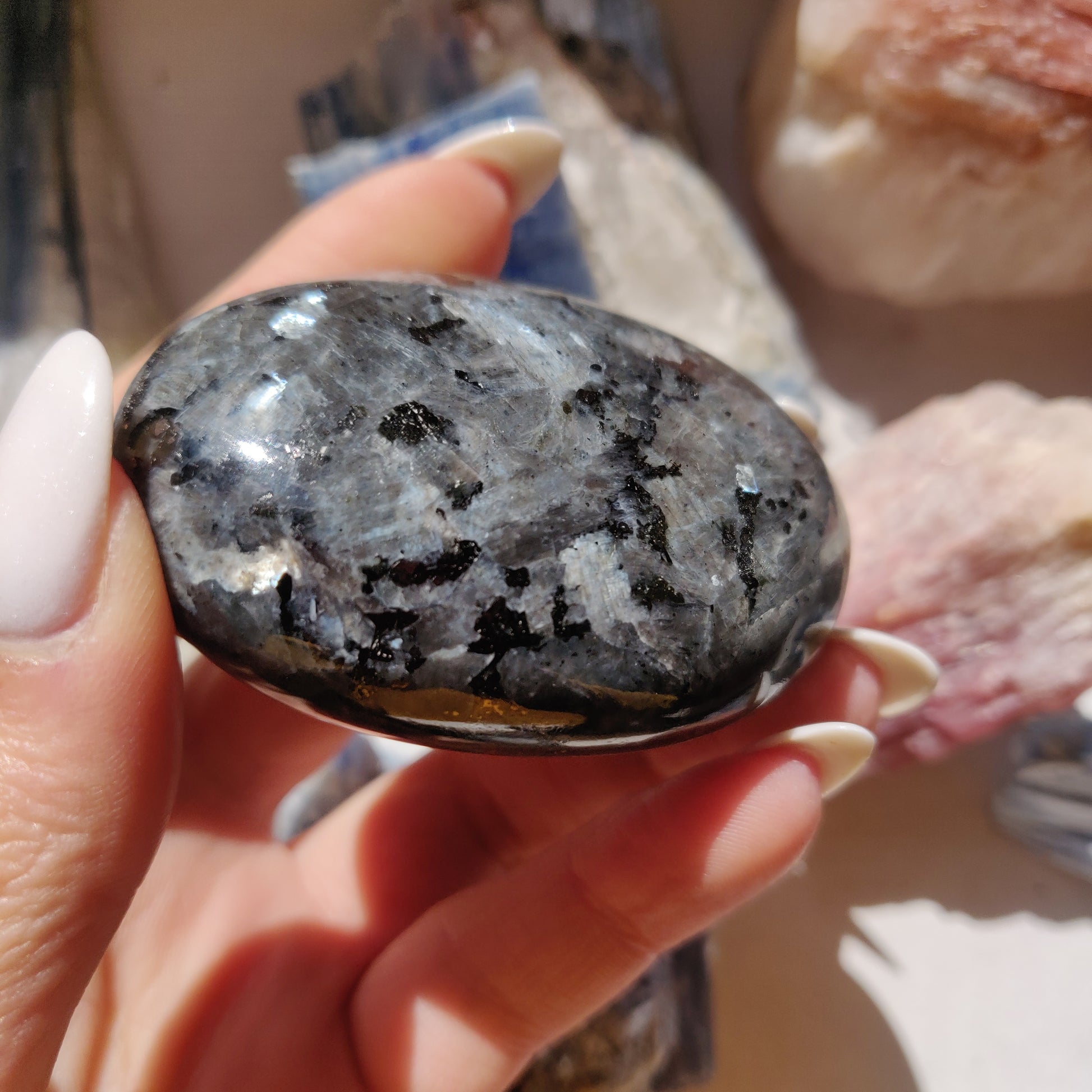 Larvikite is a beautiful gem in the Feldspar family. It is a wonderful stone to help you reconnect with nature. Larvikite encourages us not to dwell on problems, but to