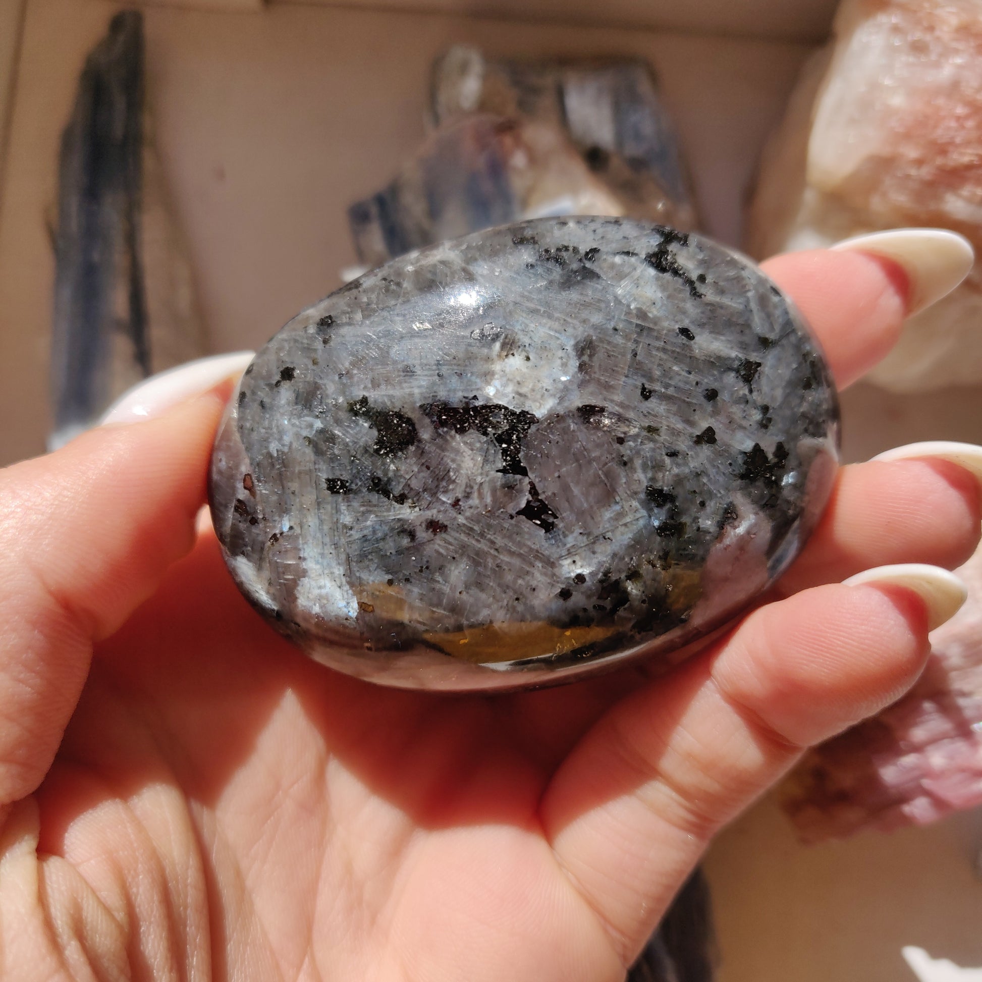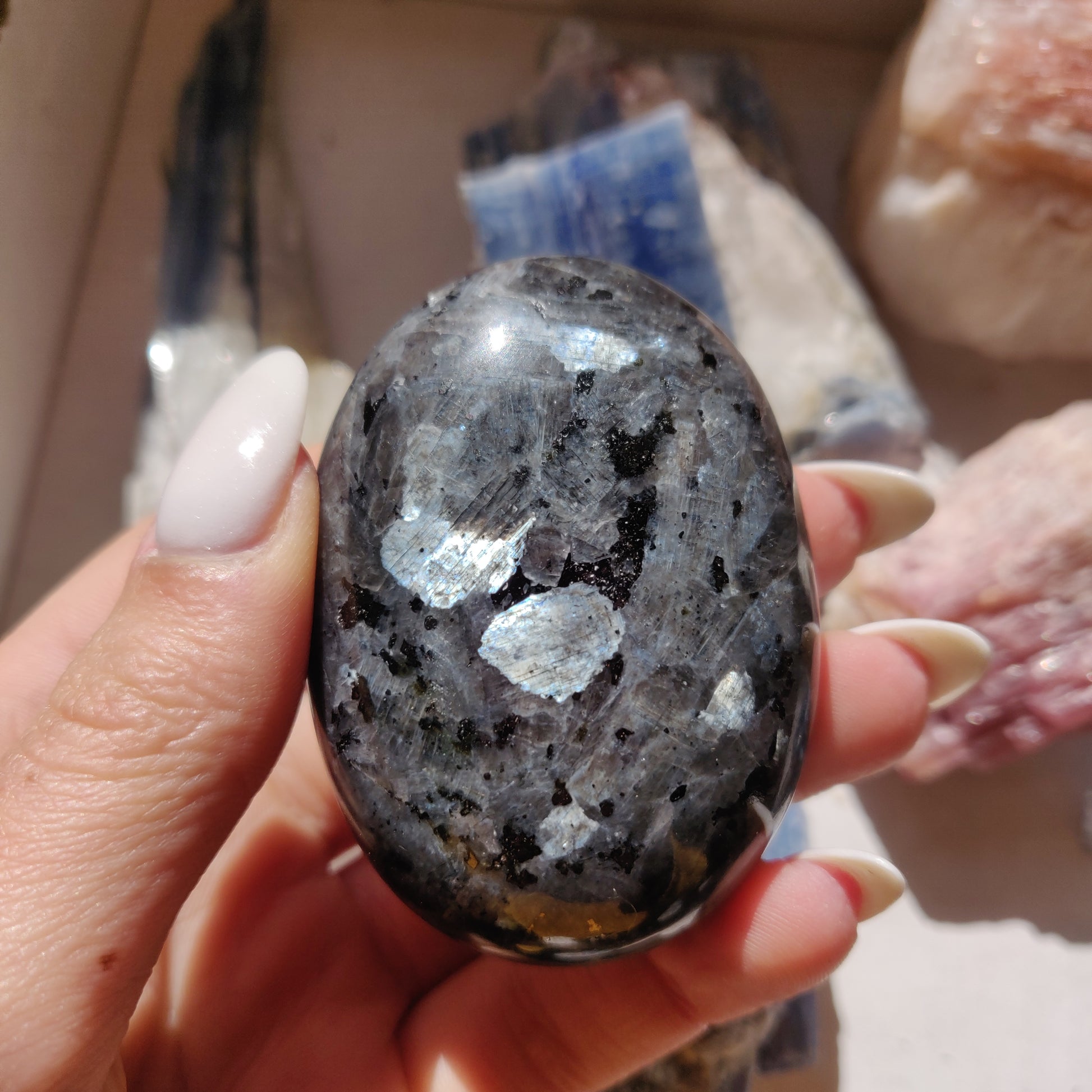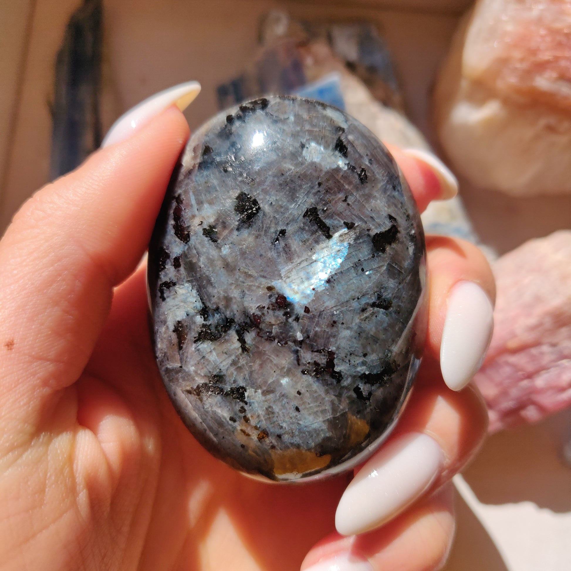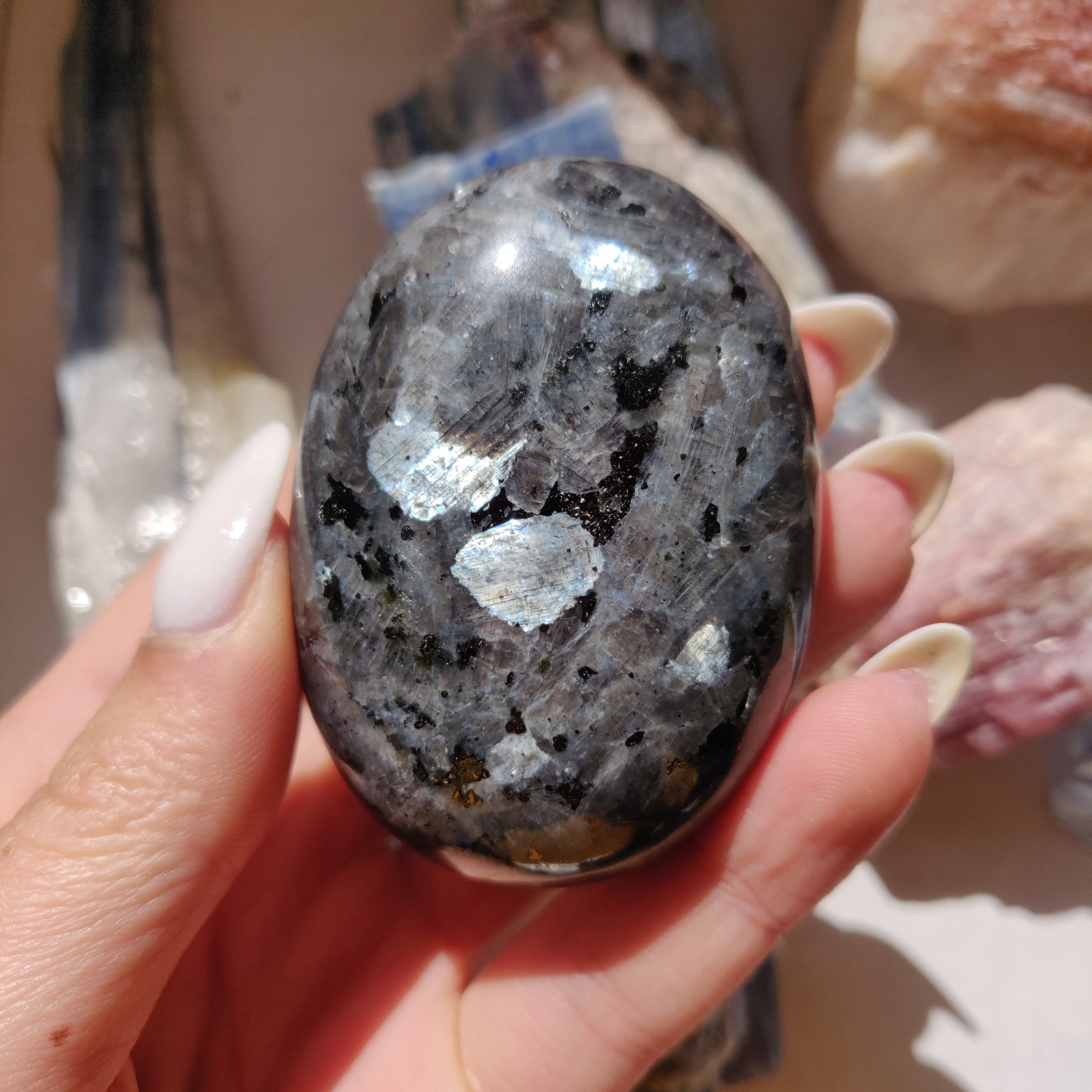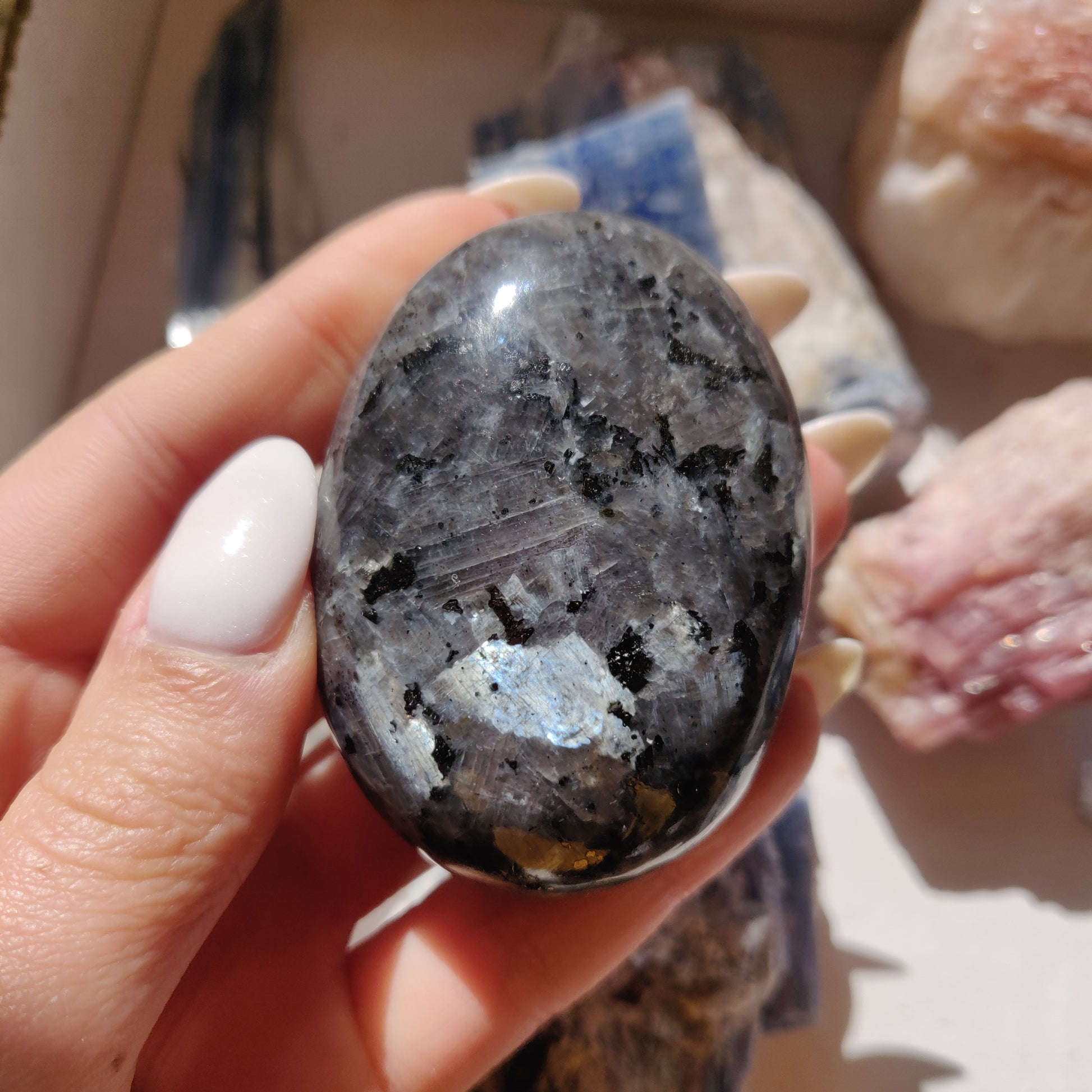 Larvikite is a beautiful gem in the Feldspar family. It is a wonderful stone to help you reconnect with nature. Larvikite encourages us not to dwell on problems, but to