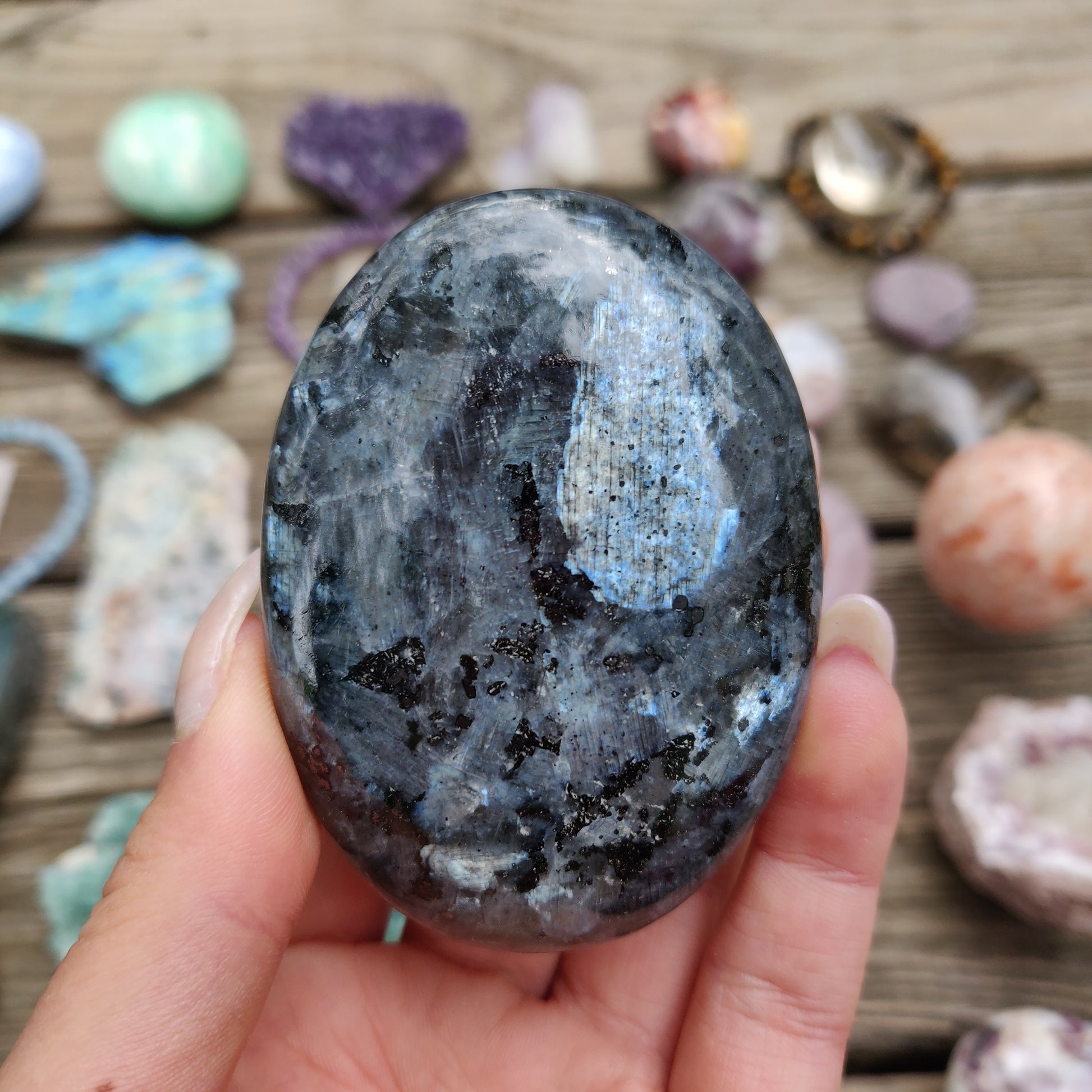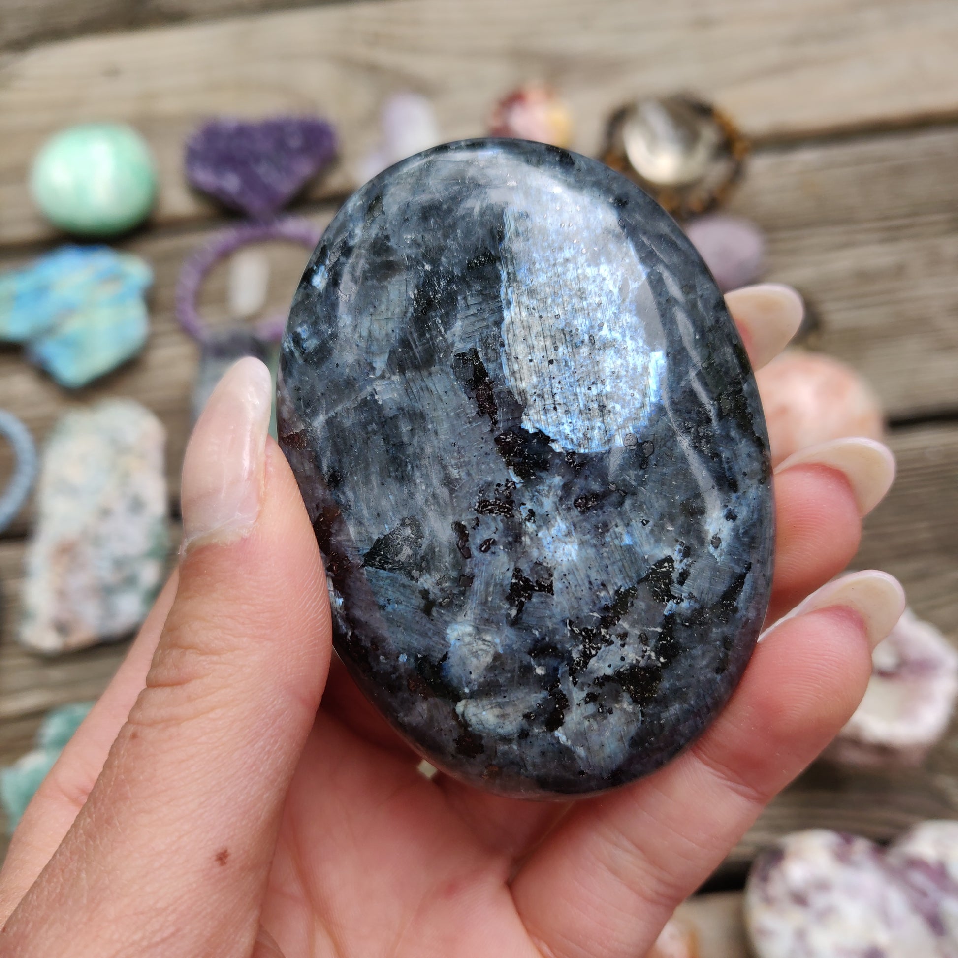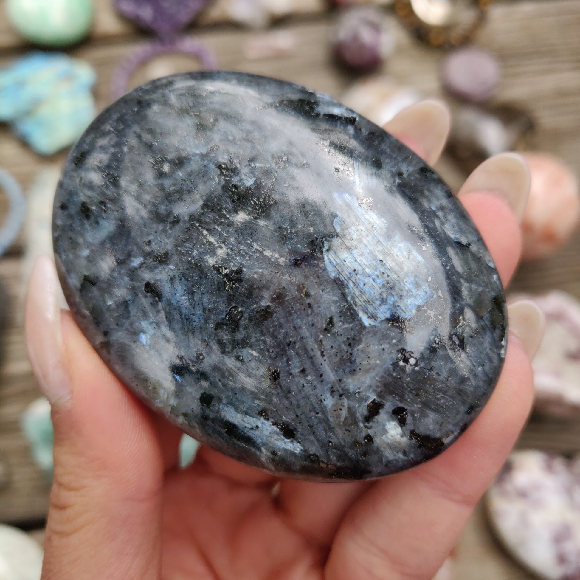 Larvikite is a beautiful gem in the Feldspar family. It is a wonderful stone to help you reconnect with nature. Larvikite encourages us not to dwell on problems, but to