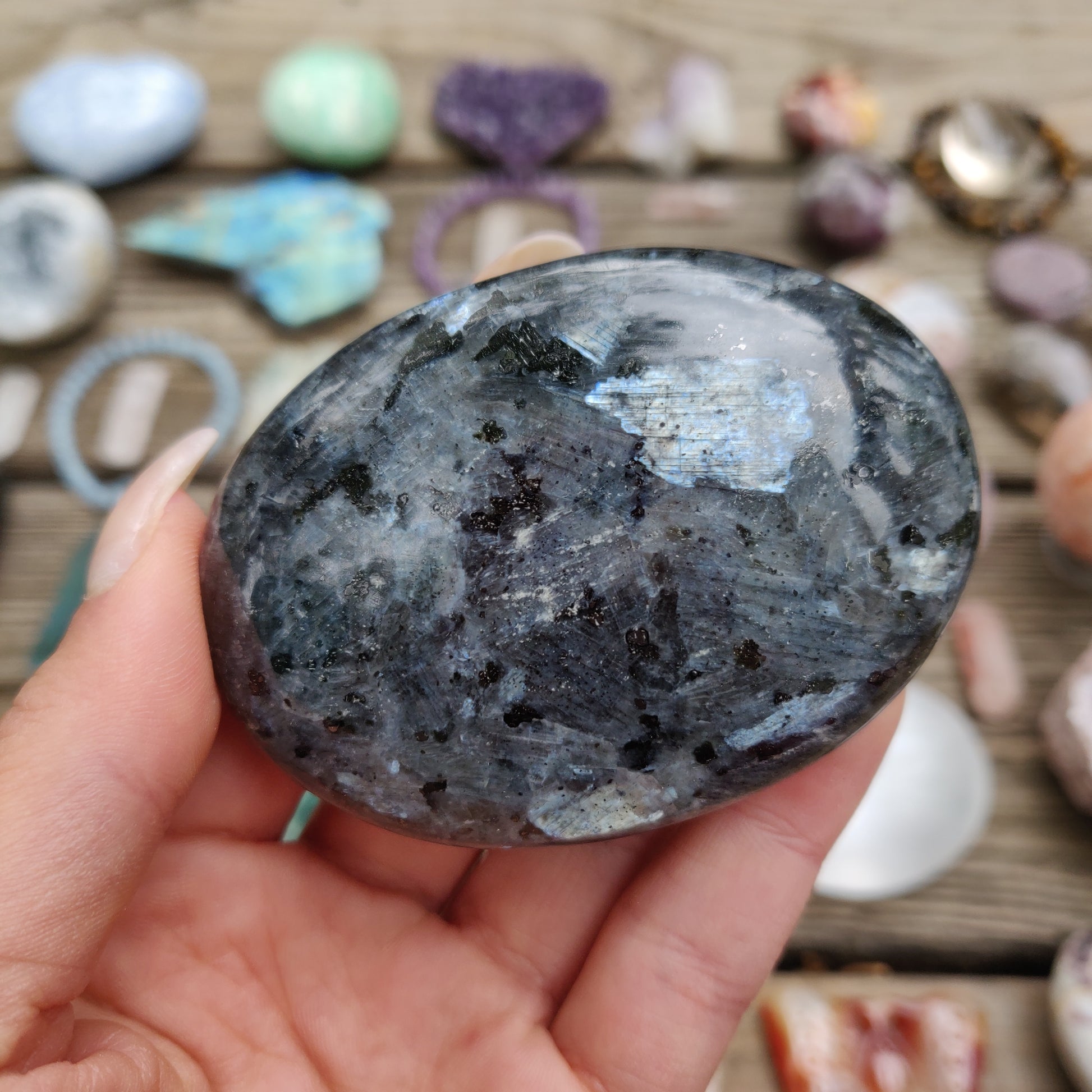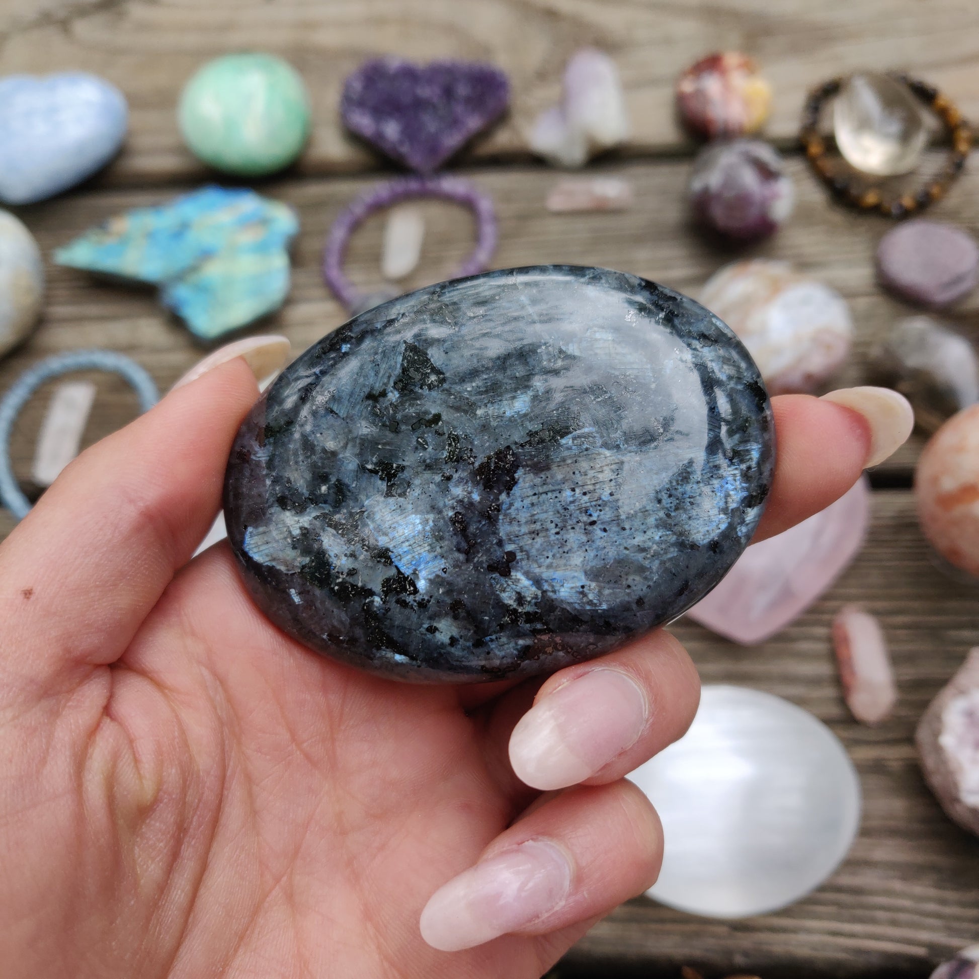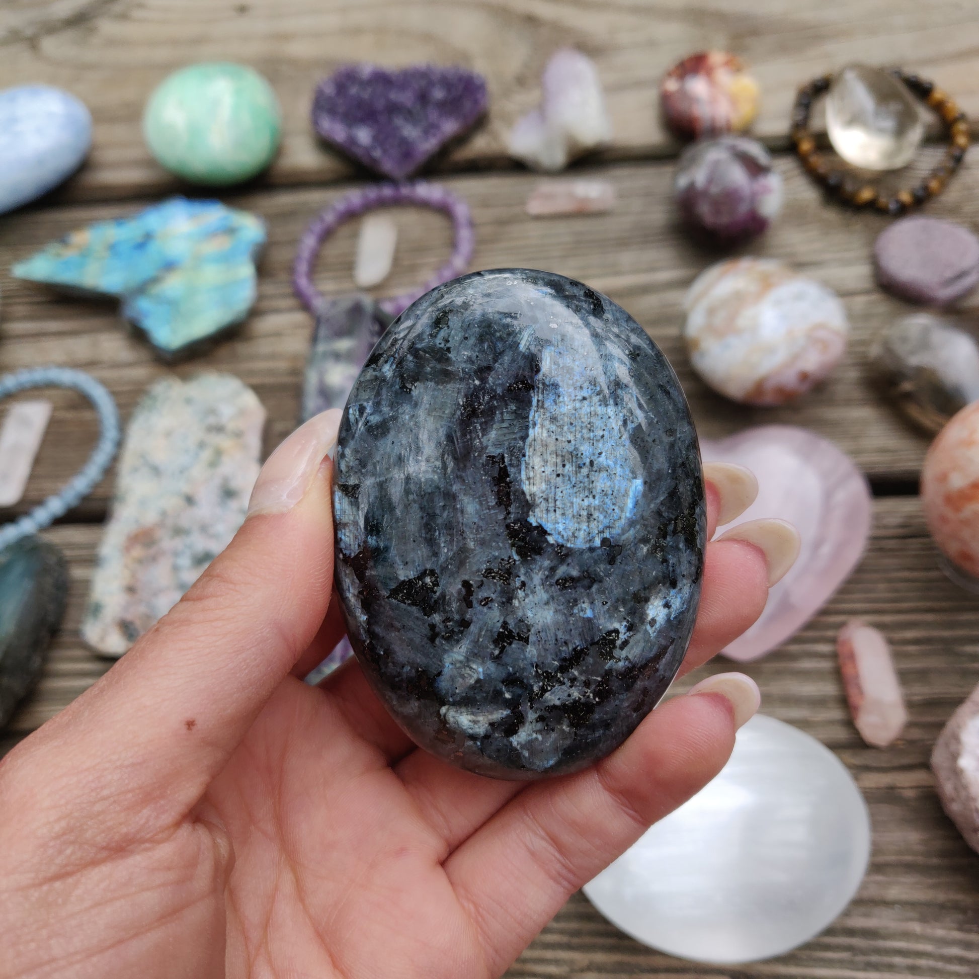Larvikite is a beautiful gem in the Feldspar family. It is a wonderful stone to help you reconnect with nature. Larvikite encourages us not to dwell on problems, but to