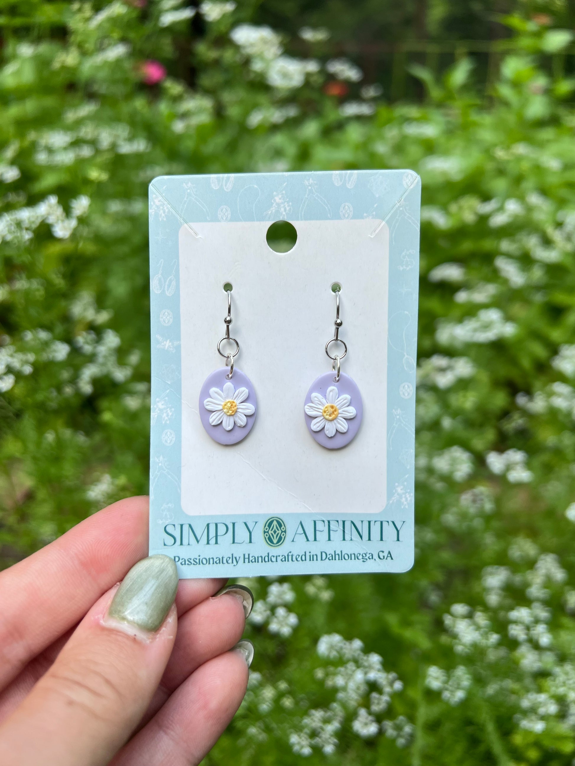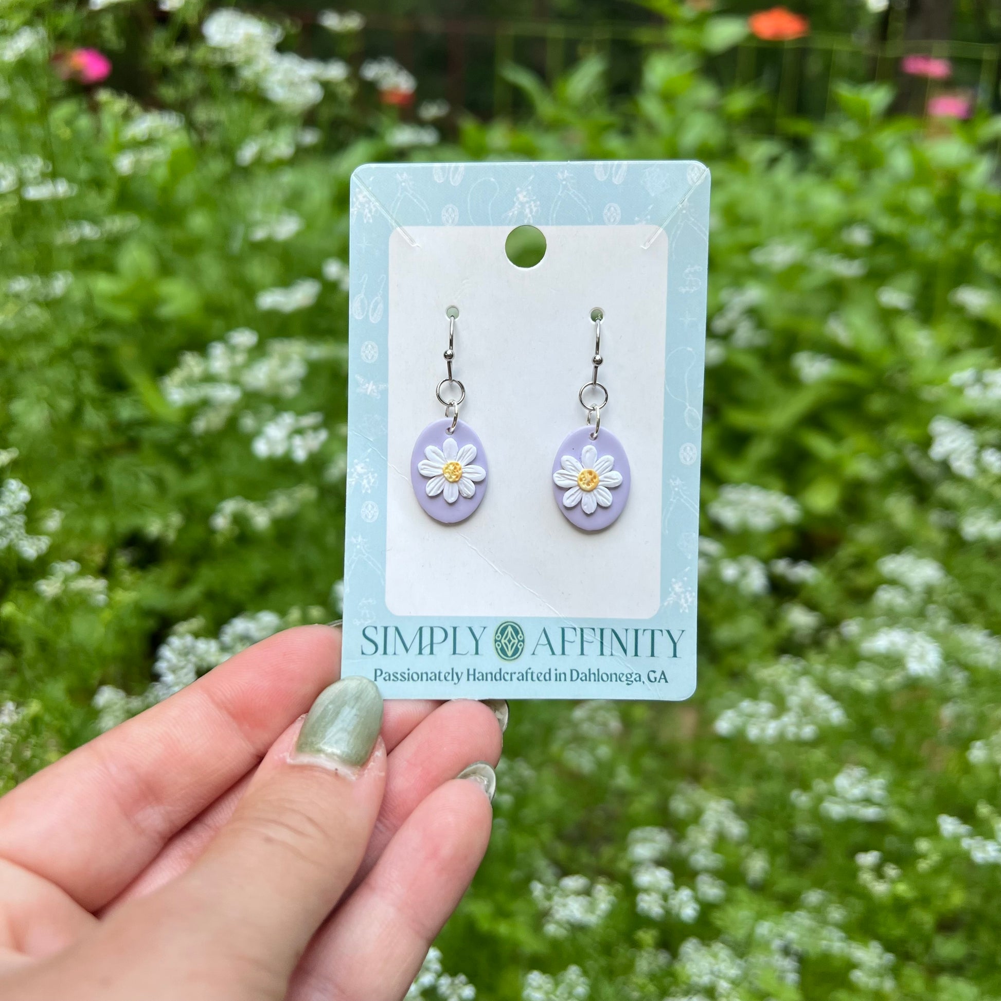 Add a touch of enchantment to your wardrobe with our lightweight and intricately sculpted daisy earrings. Handcrafted from lightweight polymer clay, enjoy the whimsical beauty of nature while being comfortable wearing your earrings all day long. These sweet earrings are on stainless steel earring wires.