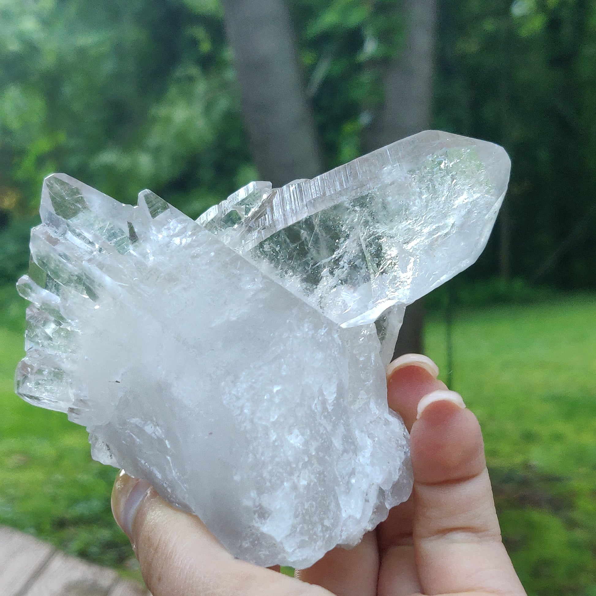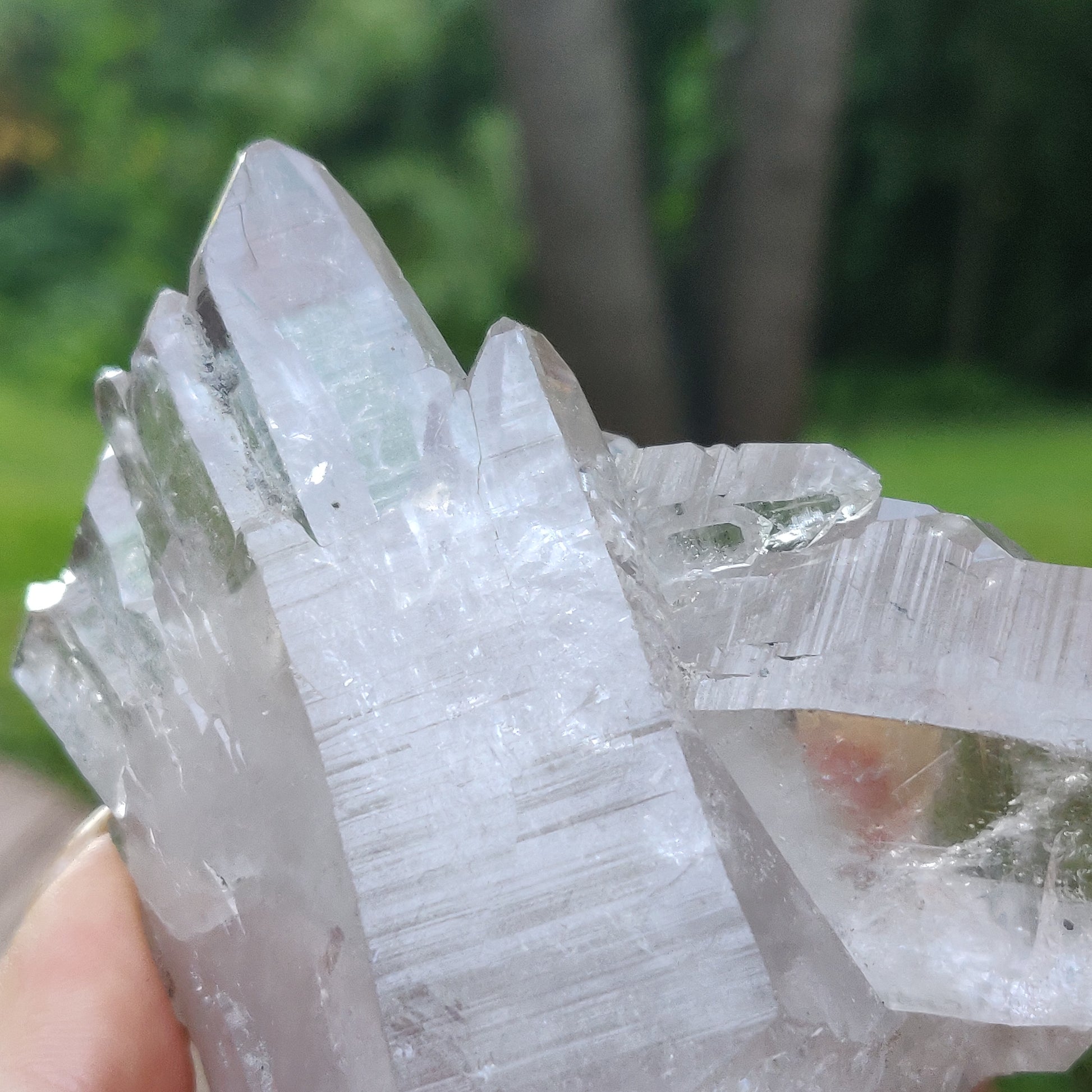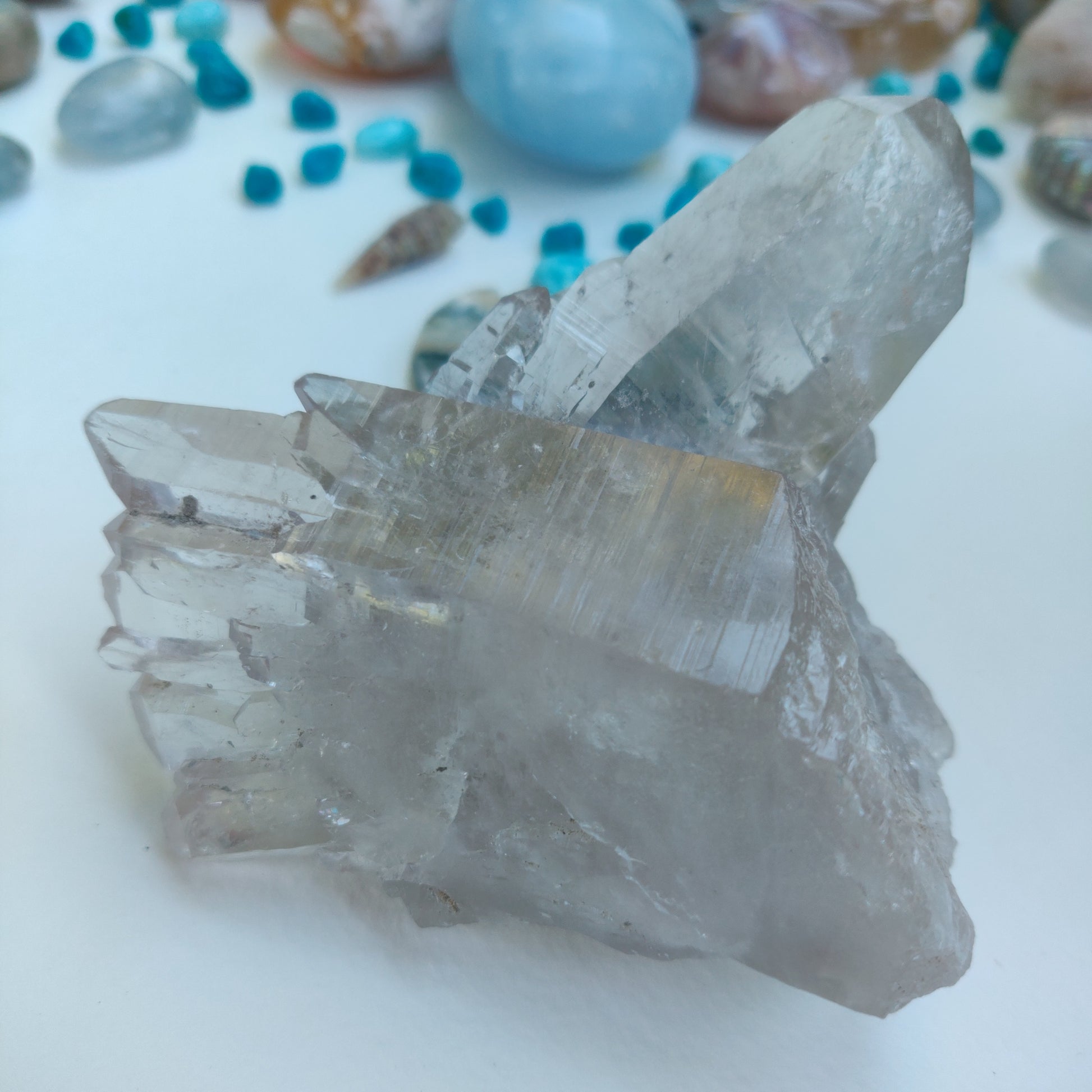 Lemurian Quartz are said to be the "perfect tools for light workers. They remind light workers to tend to their evolution as well as facilitating that of others. Ascended like a ladder, accessing inner-and muliti-dimensional states, they teach that we are multi-dimensioned beings and give an objective view of prior lifetimes. Mentally, Lemurians teach that thoughts are creative and take on form, and harnessed to right intent and self-belief, manifest full potential." -Judy Hall's Crystal Bible Vol. 3