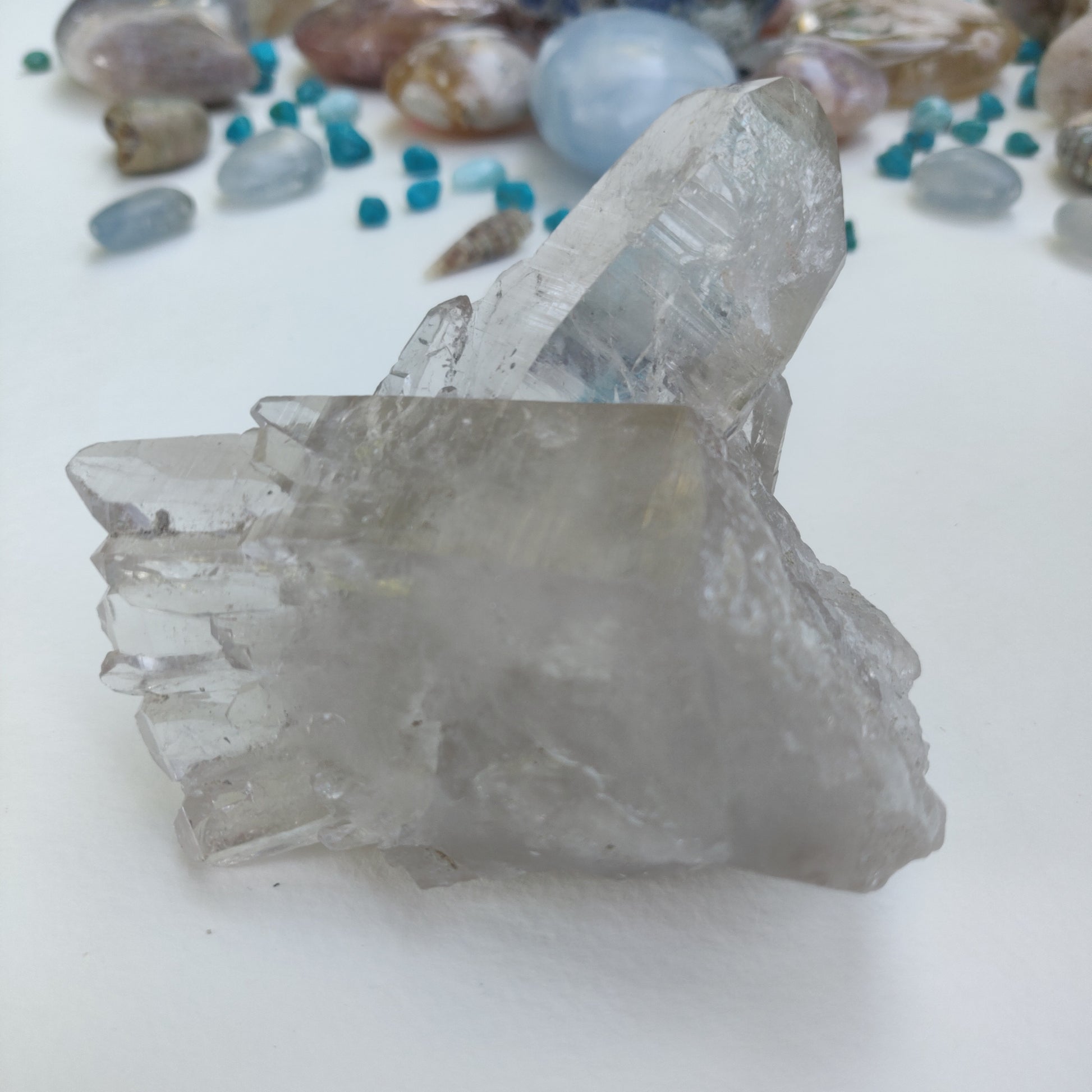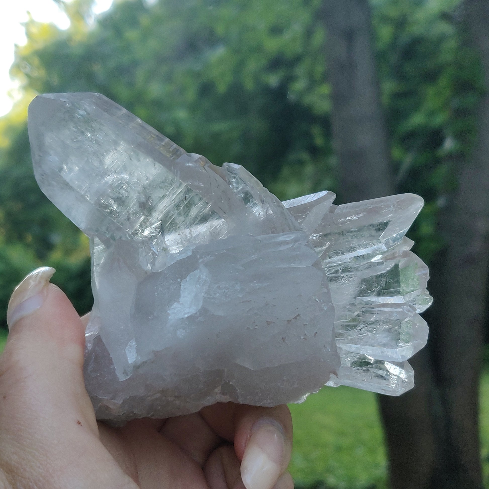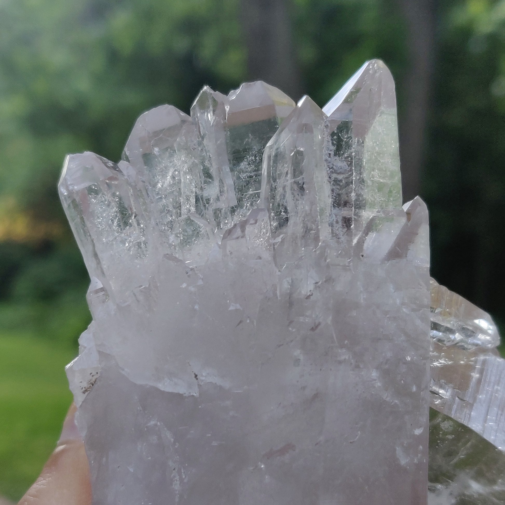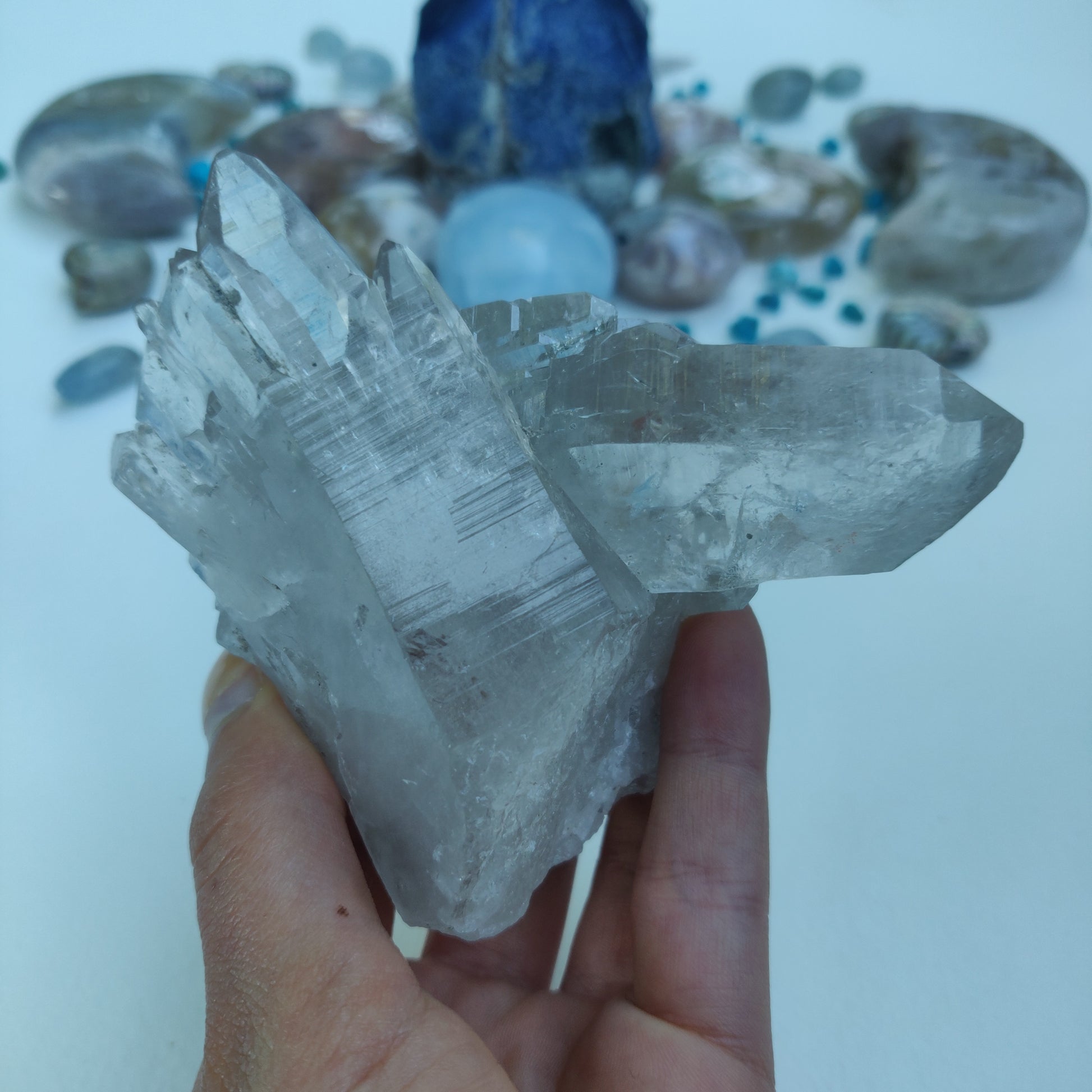 Lemurian Quartz are said to be the "perfect tools for light workers. They remind light workers to tend to their evolution as well as facilitating that of others. Ascended like a ladder, accessing inner-and muliti-dimensional states, they teach that we are multi-dimensioned beings and give an objective view of prior lifetimes. Mentally, Lemurians teach that thoughts are creative and take on form, and harnessed to right intent and self-belief, manifest full potential." -Judy Hall's Crystal Bible Vol. 3