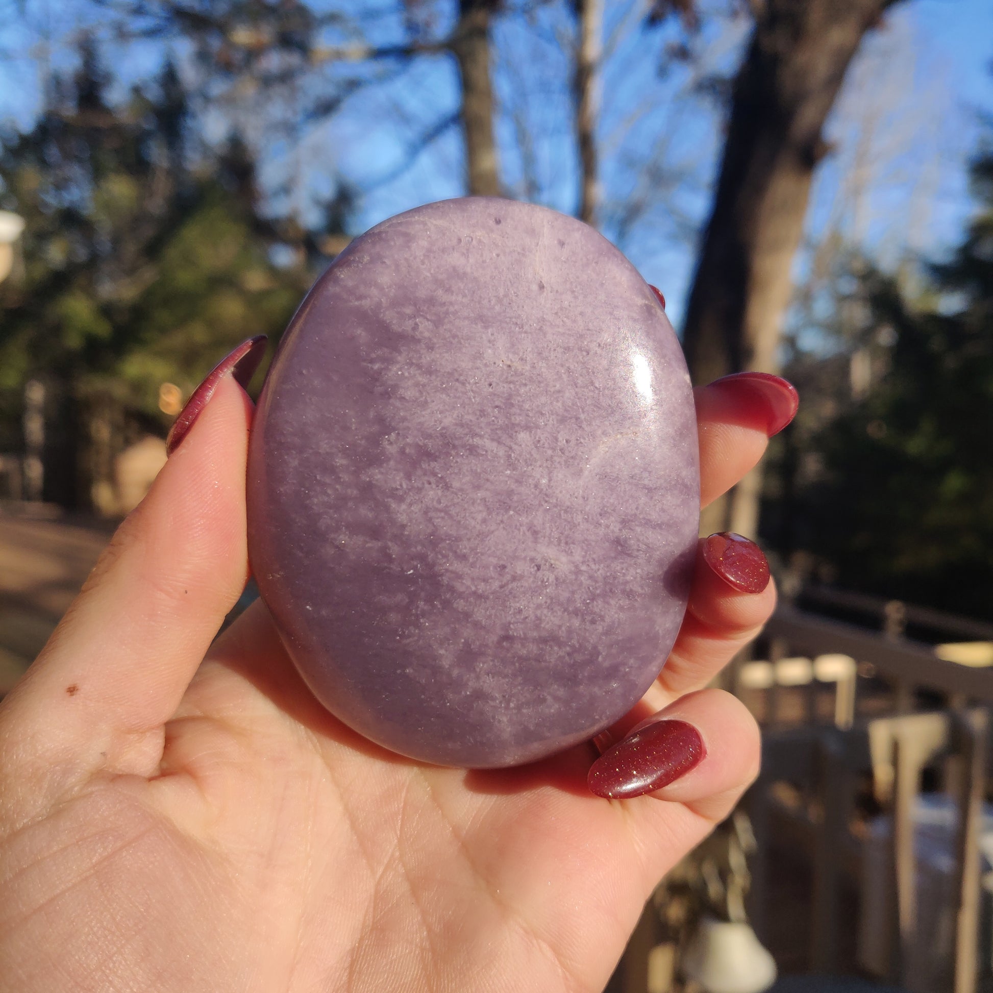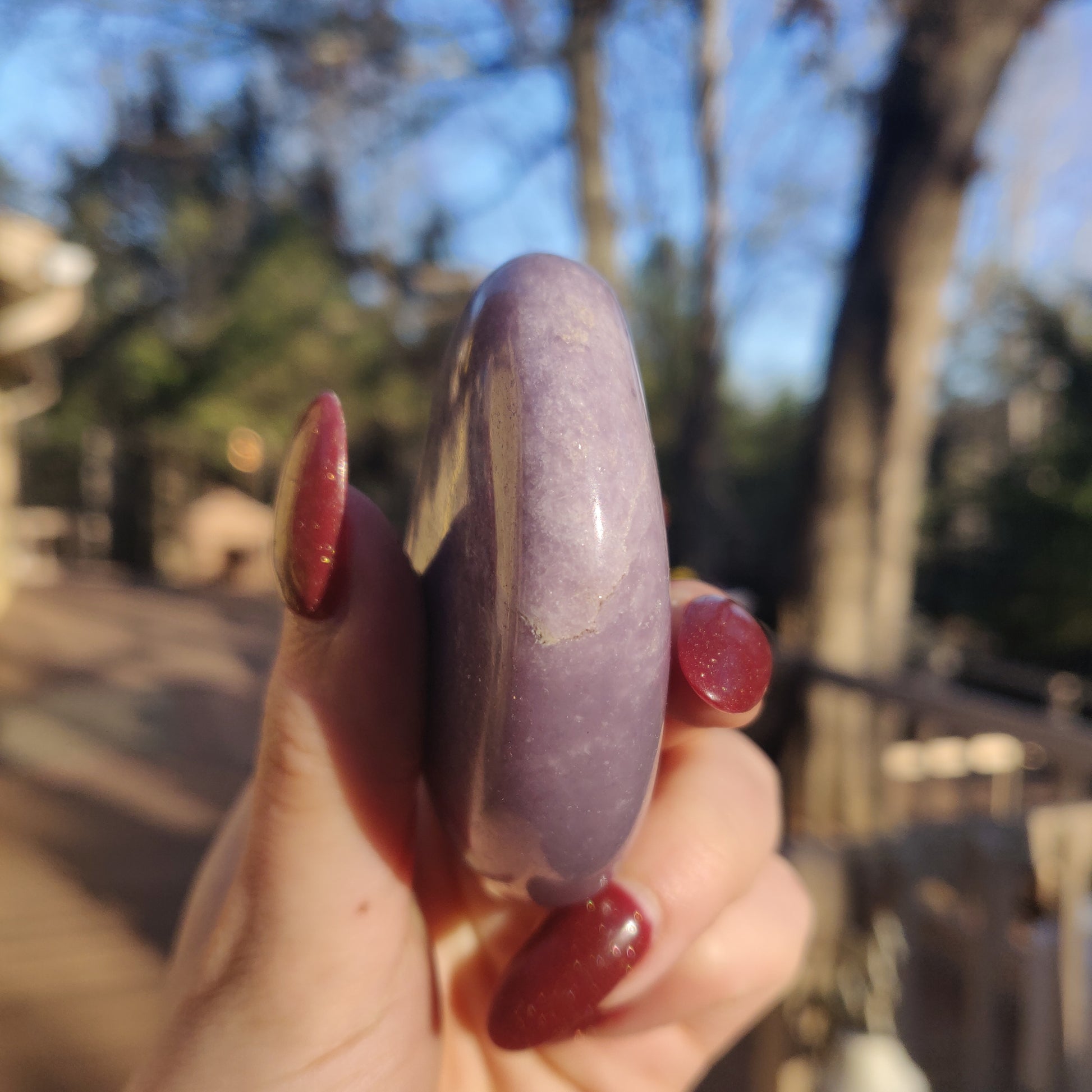 Lepidolite is extremely useful in stress reduction and overcoming depression. When lepidolite is in its mica form, like this beautiful piece, it is the most powerful. The high lithium content in Lepidolite is helpful for stabilizing moods, and brings deep emotional healing.