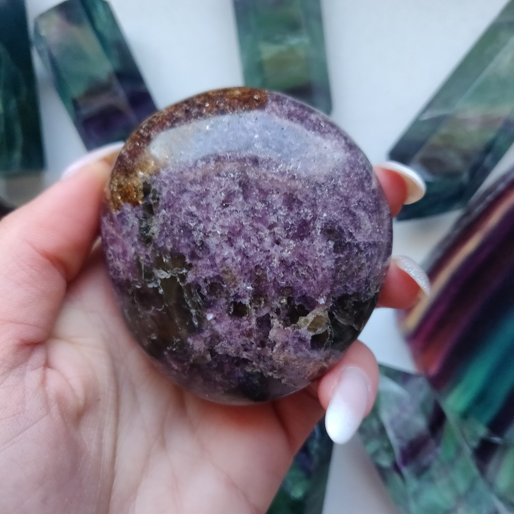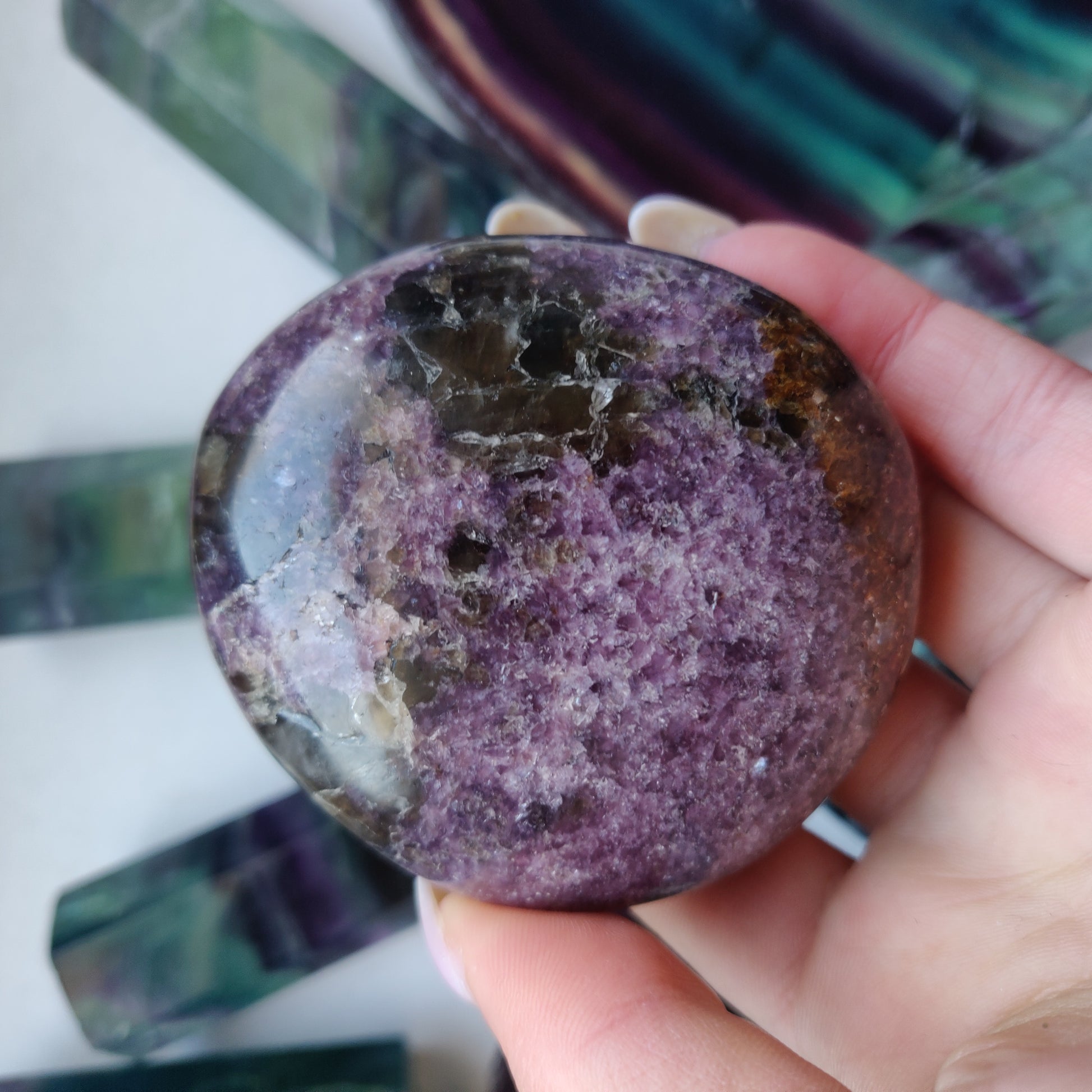 Lepidolite is extremely useful in stress reduction and overcoming depression. When lepidolite is in its mica form, like this beautiful piece, it is the most powerful. The high lithium content in Lepidolite is helpful for stabilizing moods, and brings deep emotional healing.