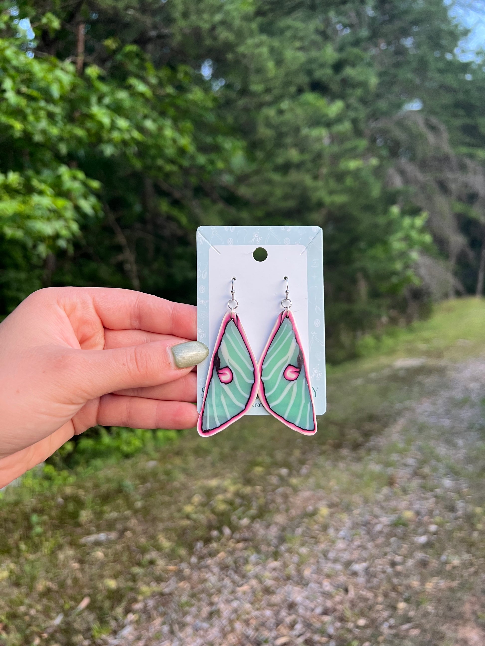 Hand-Sculpted Polymer Clay Luna Moth Wing Earrings
