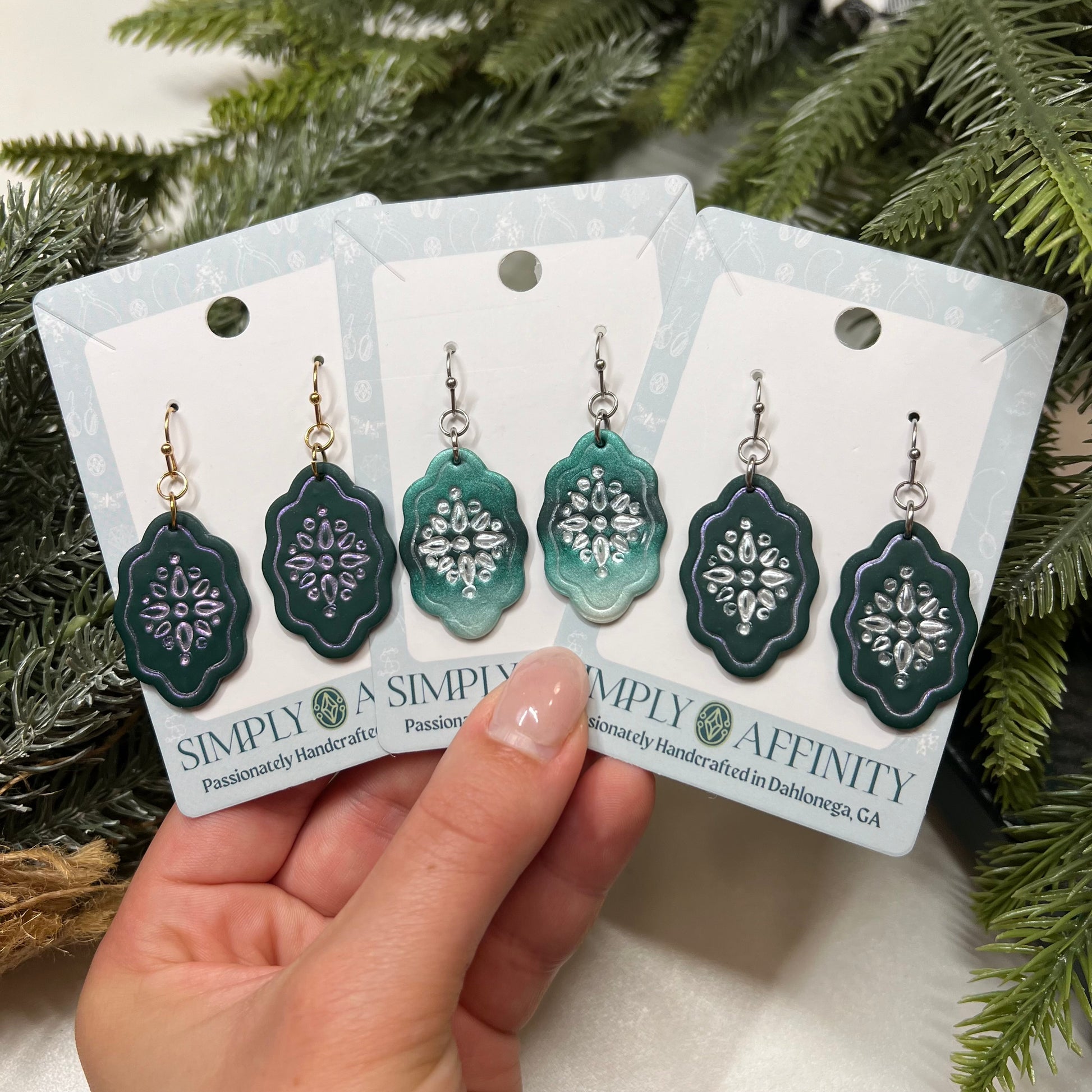 Introducing our handcrafted Mandala Imprint Polymer Clay Earrings, a perfect blend of artistry and elegance. Each pair is meticulously crafted by first sculpting a delicate mandala design, which is then used as a custom stamp to create intricate patterns on the clay surface. The rich, custom-mixed clay serves as a vibrant base, while the enchanting pearlescent mica powders bring out the finer details, adding a soft, luminous glow to each design. You can choose your favorite color combination in the dropdown menu. These lightweight earrings are not only beautiful but comfortable for all-day wear.