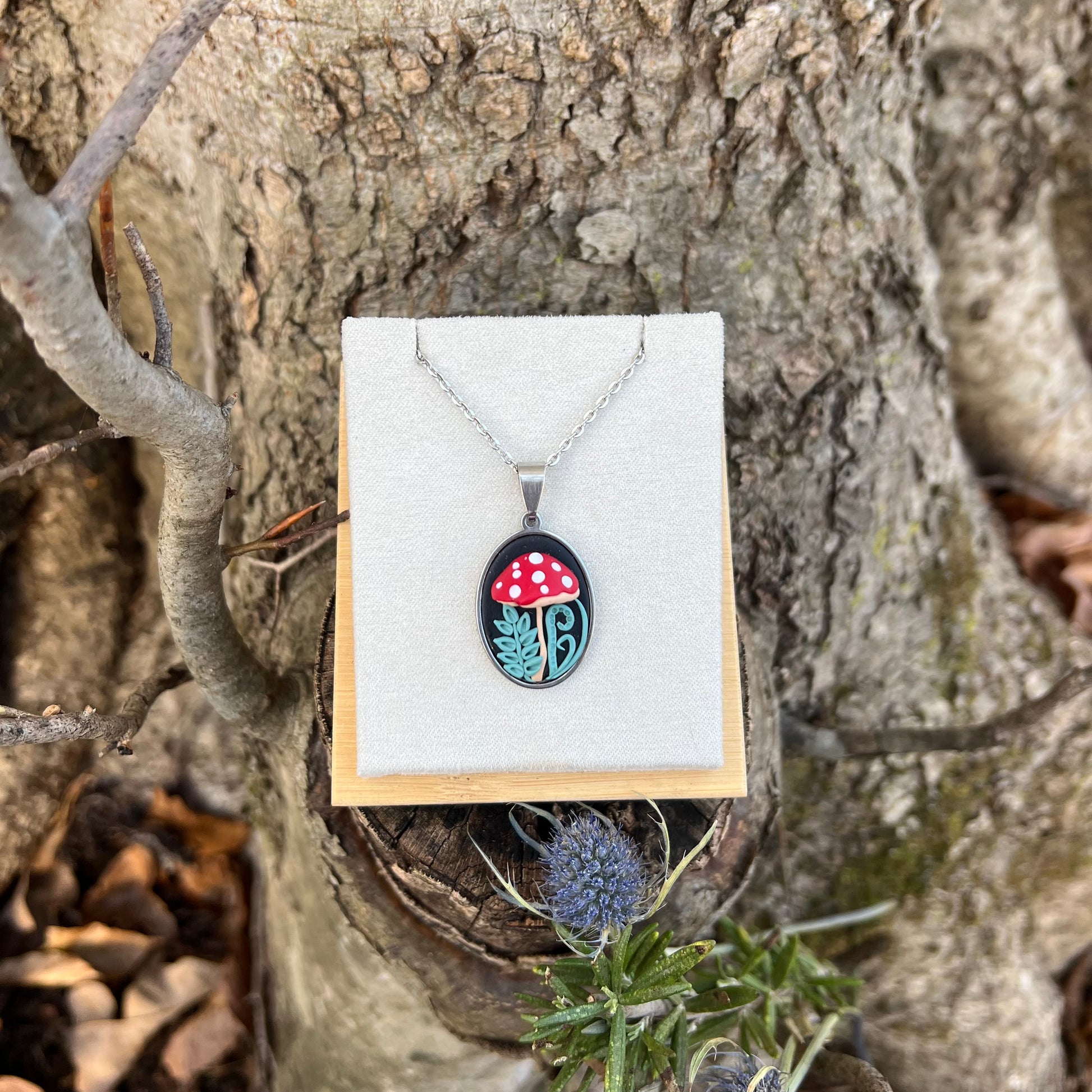 Add a touch of enchantment to your wardrobe with our intricately sculpted mushroom necklace. Hand-sculpted from lightweight polymer clay, enjoy the whimsical beauty of nature.