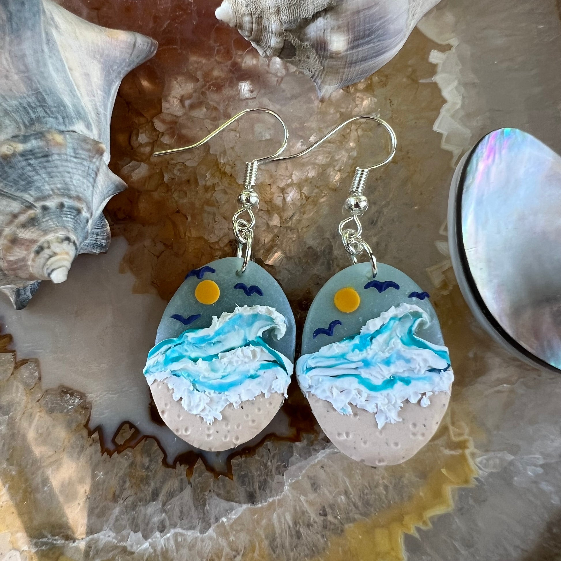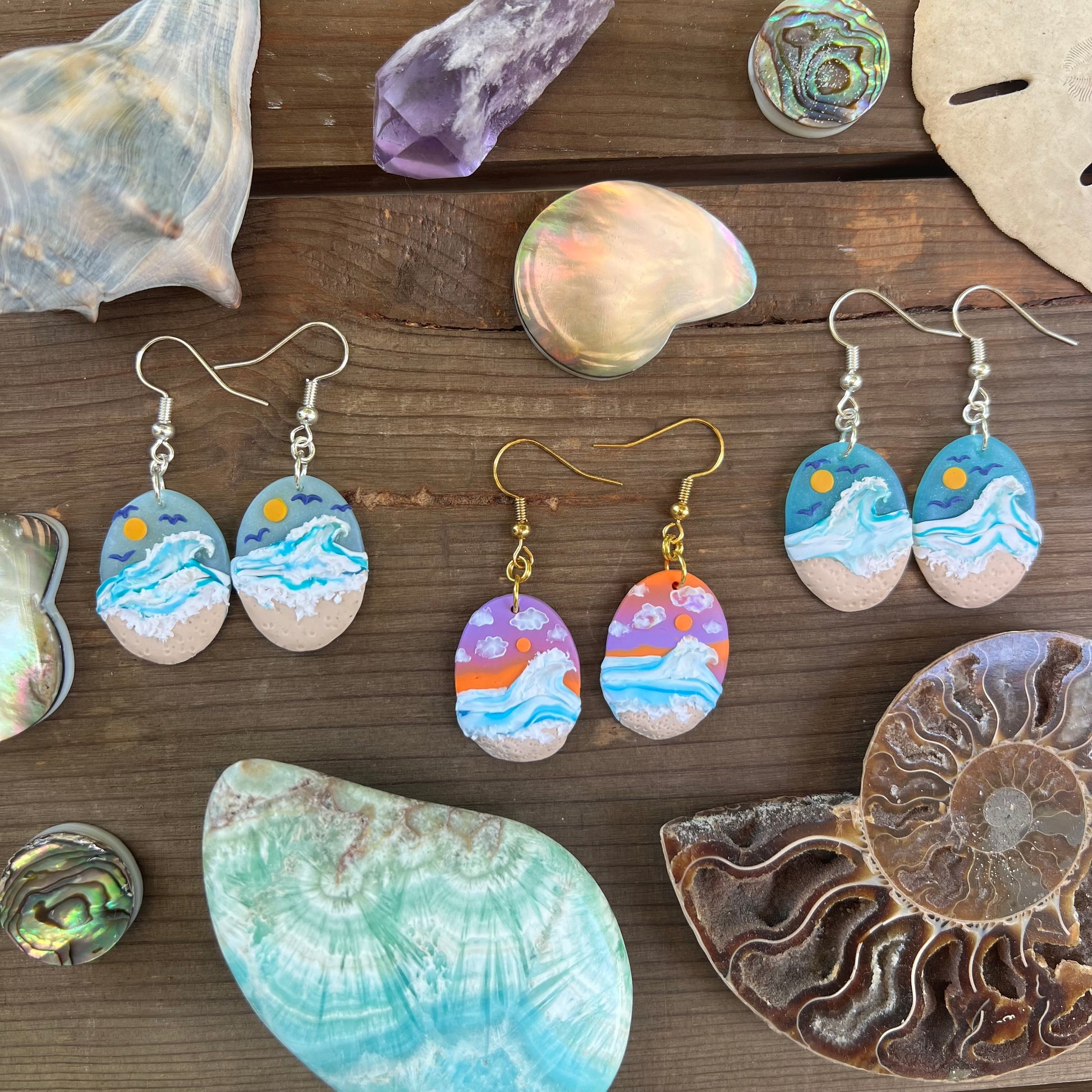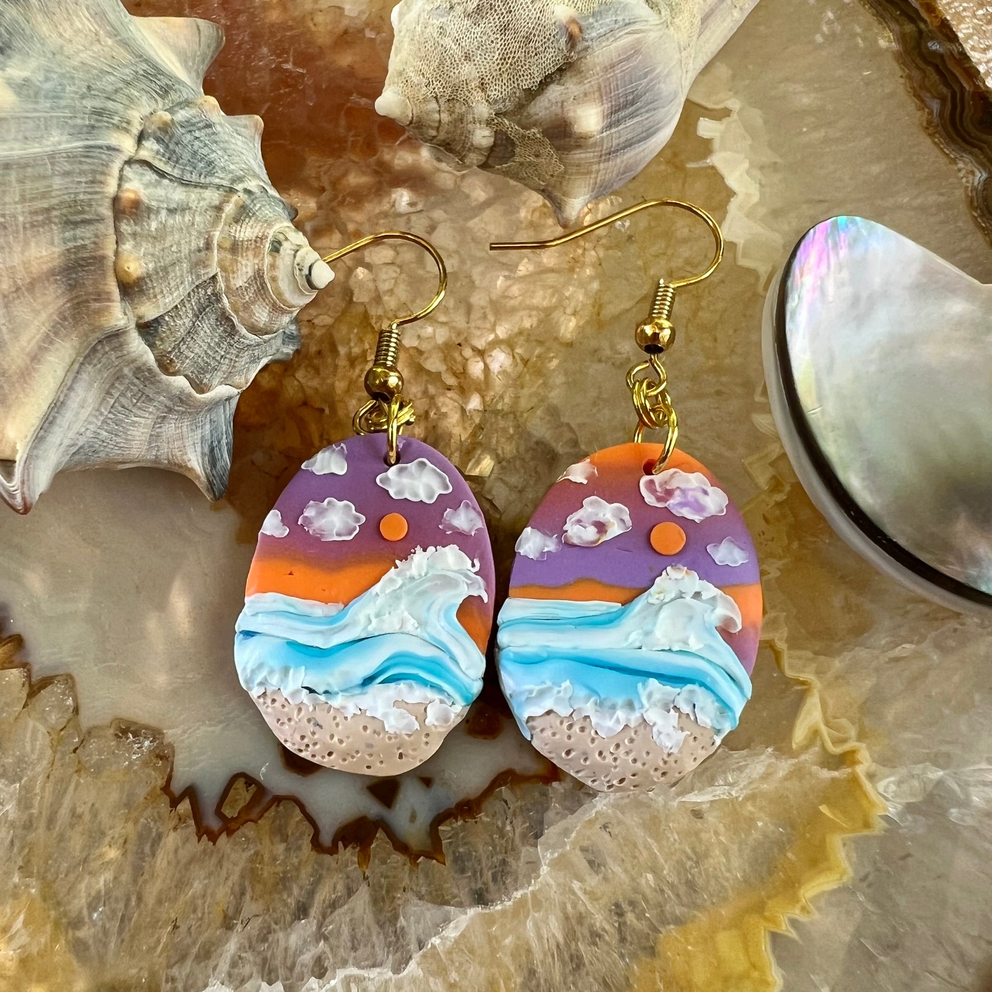 Add a touch of summer to your wardrobe with our lightweight and intricately sculpted ocean wave earrings. Handcrafted from lightweight polymer clay, enjoy the enchanting beauty of nature while being comfortable wearing your earrings all day long. These sweet earrings are on silver or gold plated brass earring wires. If you would like to upgrade to titanium, gold-filled, or sterling silver french style earring wires, you can add this listing in the following link to your cart: Earring Wire Upgrade