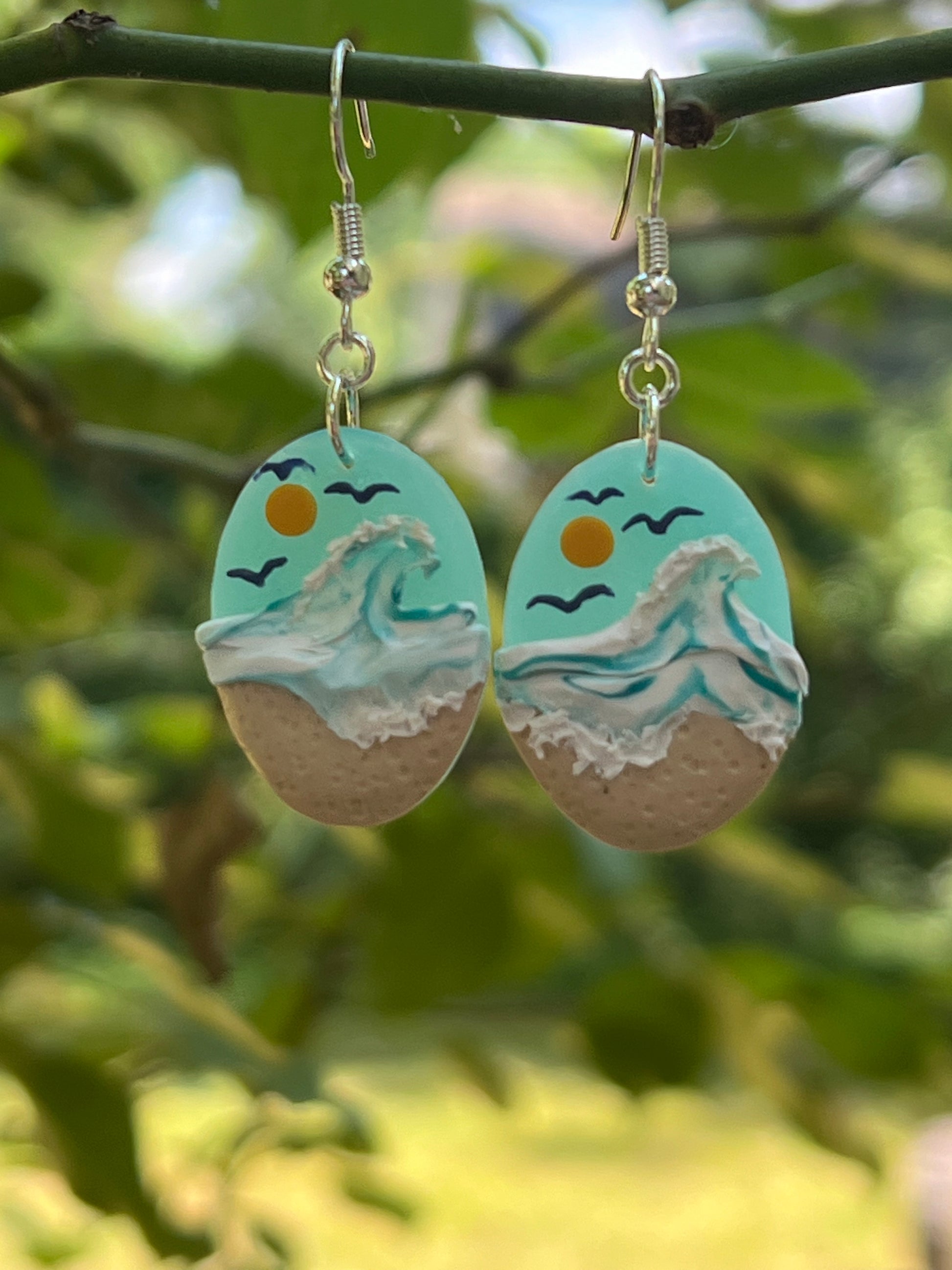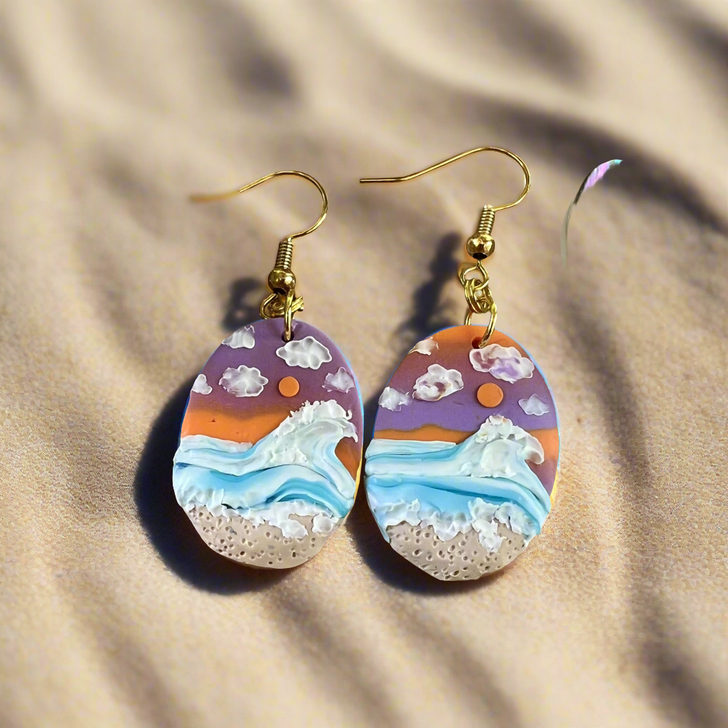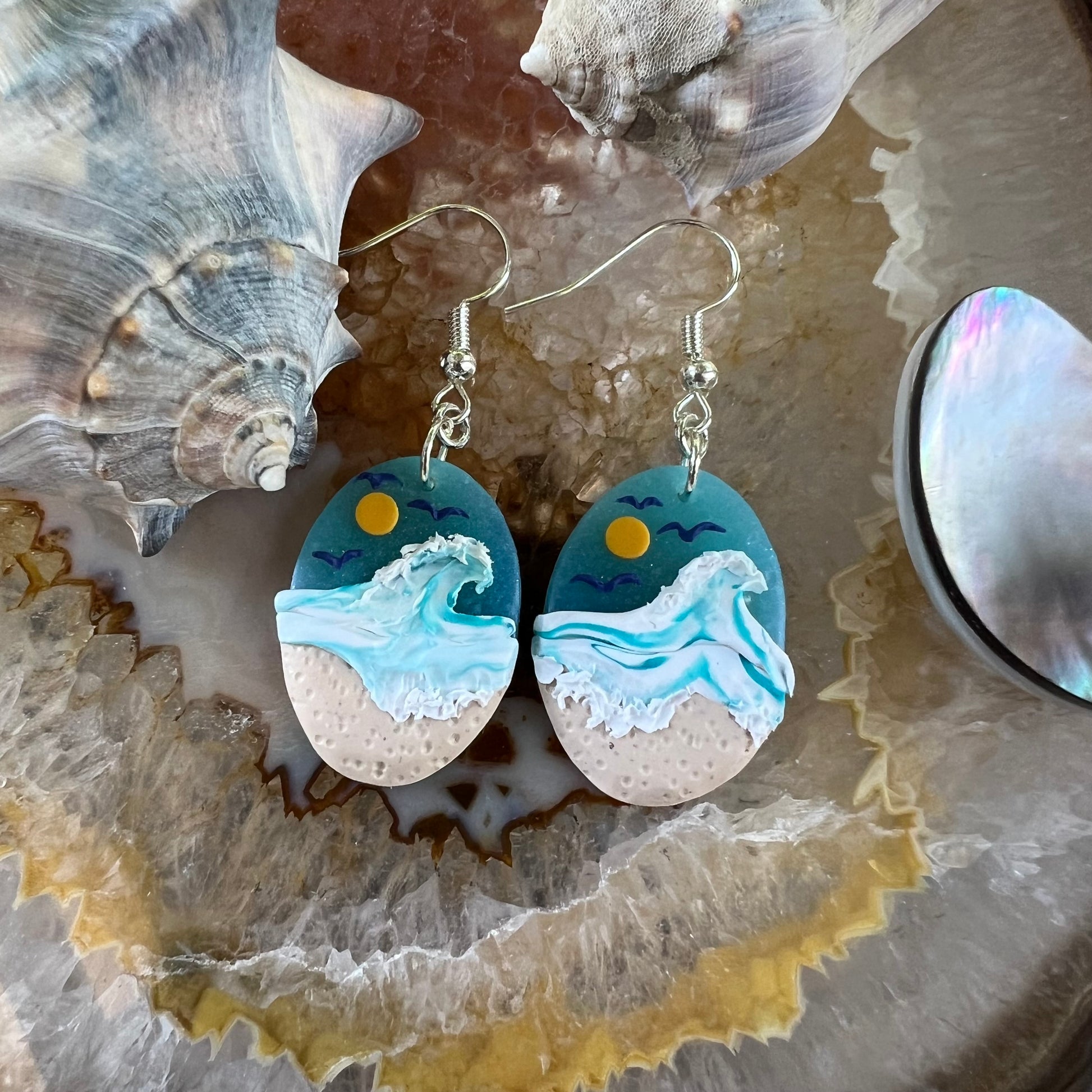 Add a touch of summer to your wardrobe with our lightweight and intricately sculpted ocean wave earrings. Handcrafted from lightweight polymer clay, enjoy the enchanting beauty of nature while being comfortable wearing your earrings all day long. These sweet earrings are on silver or gold plated brass earring wires. If you would like to upgrade to titanium, gold-filled, or sterling silver french style earring wires, you can add this listing in the following link to your cart: Earring Wire Upgrade