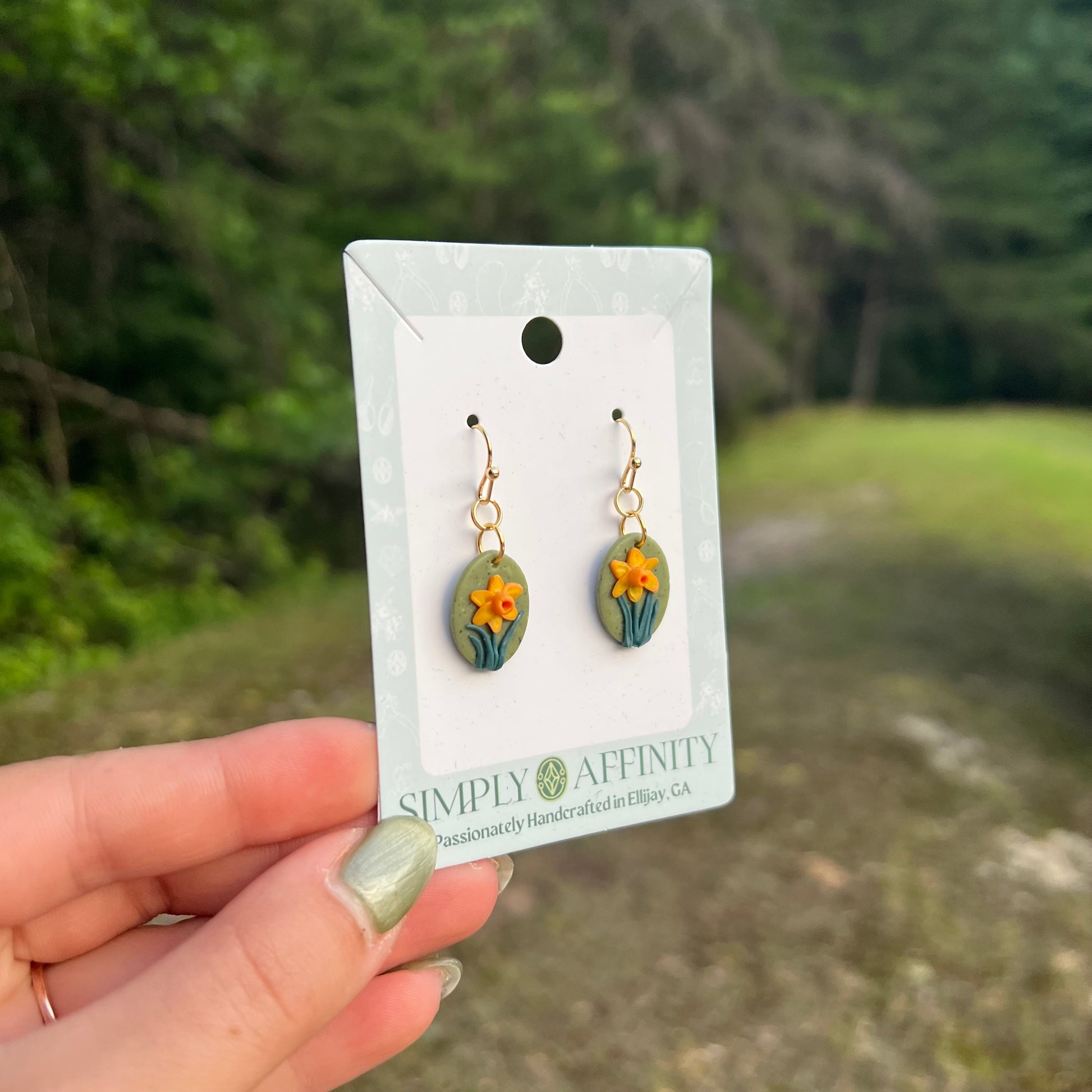Add a touch of enchantment to your wardrobe with our lightweight and intricately sculpted daffodil earrings. Handcrafted from lightweight polymer clay, enjoy the whimsical beauty of nature while being comfortable wearing your earrings all day long. These sweet earrings are on gold plated stainless steel ear wires. If you would like to upgrade to titanium, gold-filled, or sterling silver french style earring wires, you can add this listing in the following link to your cart: Earring Wire Upgrade