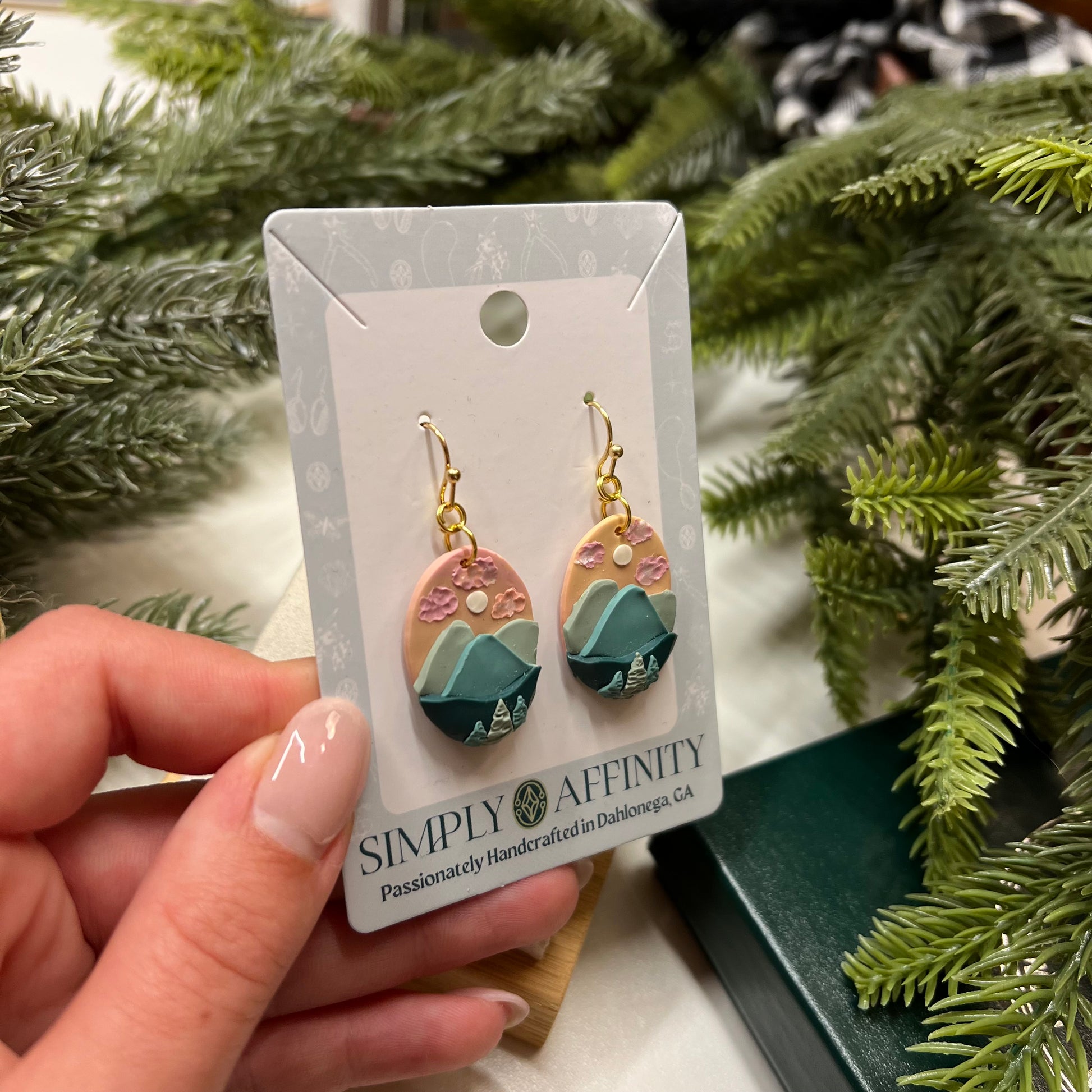 Each earring is individually sculpted by hand, ensuring that no two pairs are exactly alike. The polymer clay is lightweight and comfortable to wear, making these earrings perfect for all-day use without any heavy tugging on your ears. Whether you're heading to the mountains or simply daydreaming about them, these earrings will add a touch of handmade artistry to any outfit.