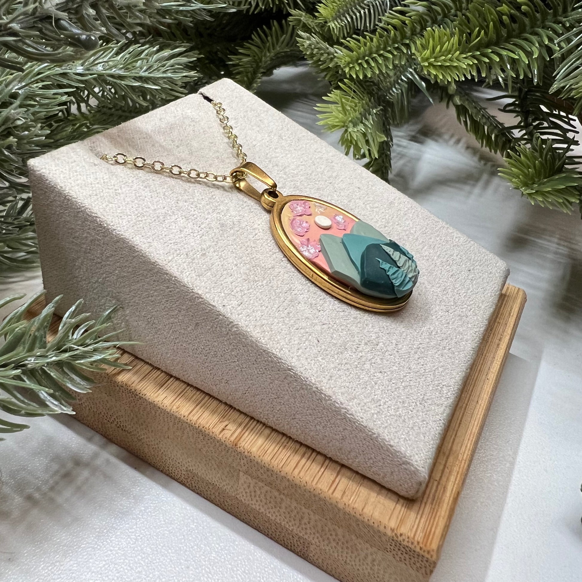 Each necklace is individually sculpted by hand, ensuring that no two pieces are exactly alike. Whether you're heading to the mountains or simply daydreaming about them, this necklace will add a touch of handmade artistry to any outfit.