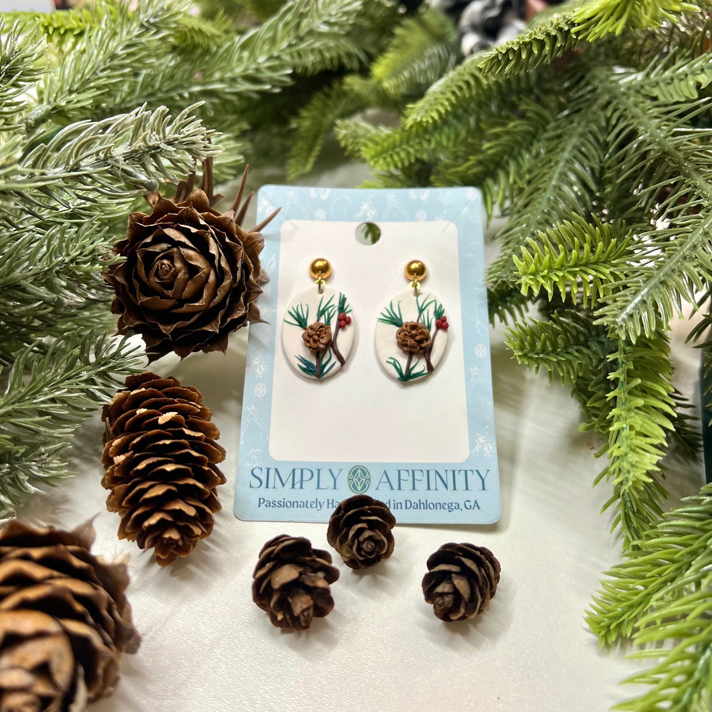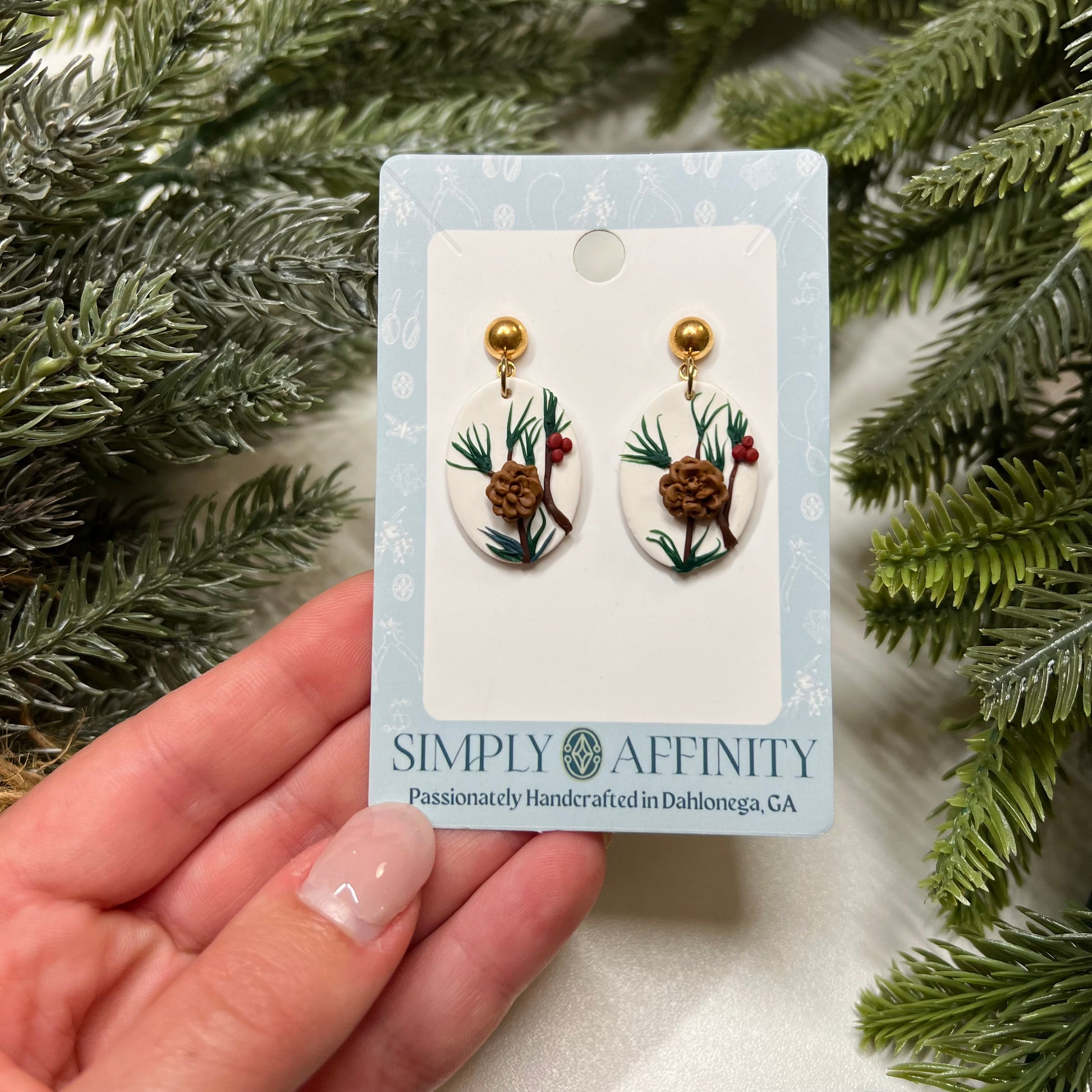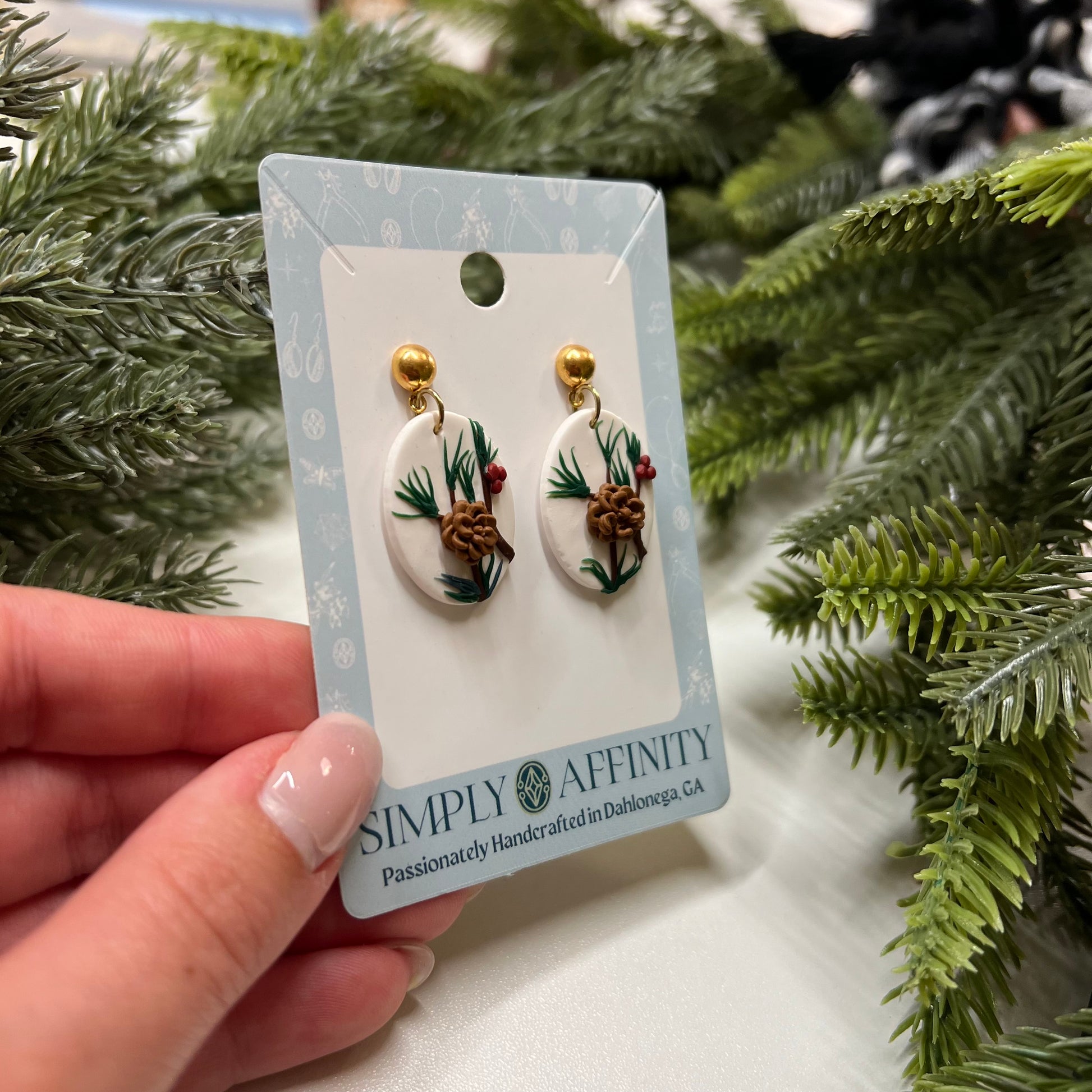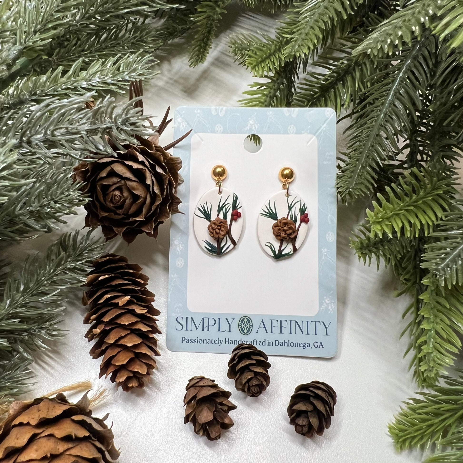 Add a touch of enchantment to your wardrobe with our lightweight and intricately sculpted pine bough earrings. Handcrafted from lightweight polymer clay, enjoy the whimsical beauty of nature while being comfortable wearing your earrings all day long. These sweet earrings are on gold plated brass earring wires.