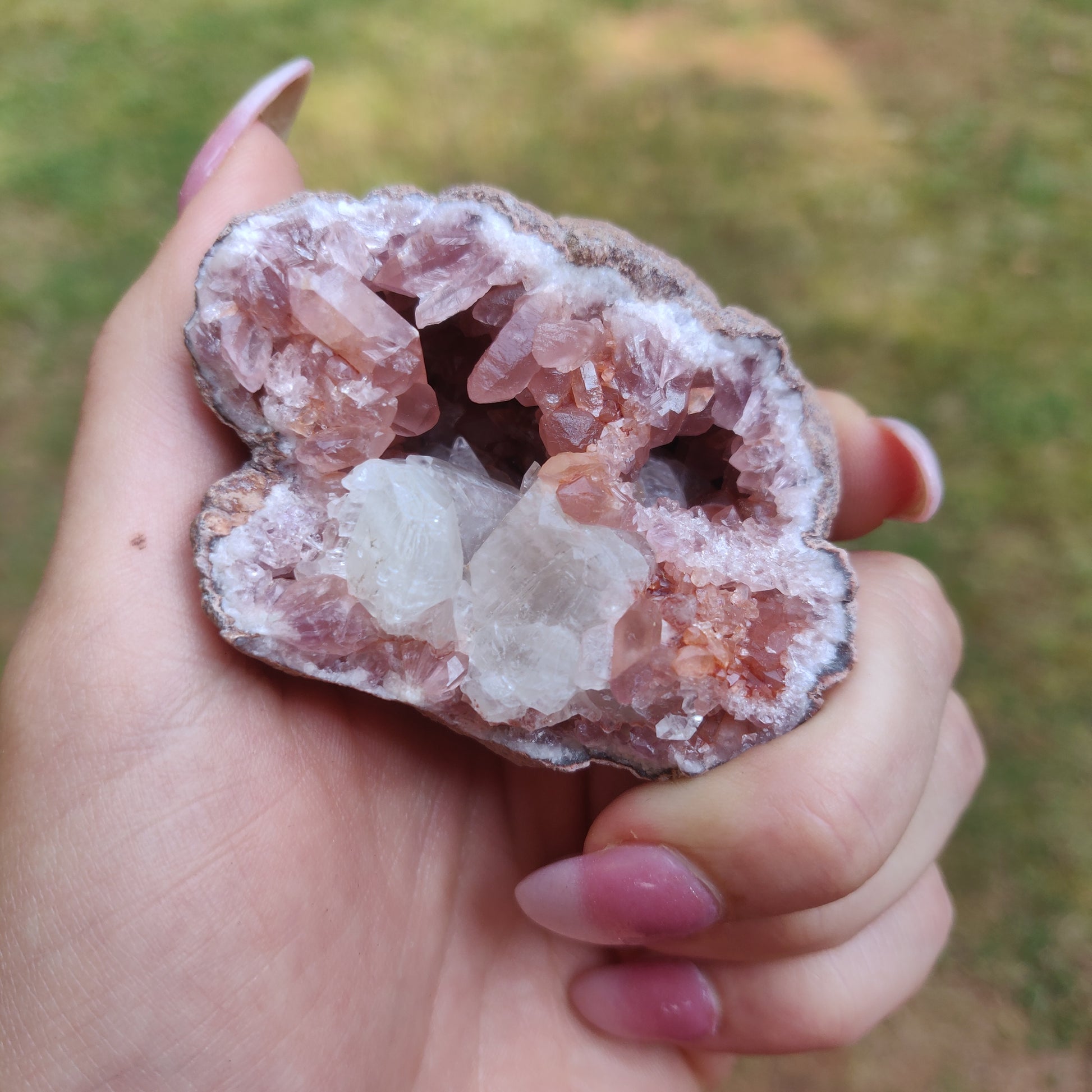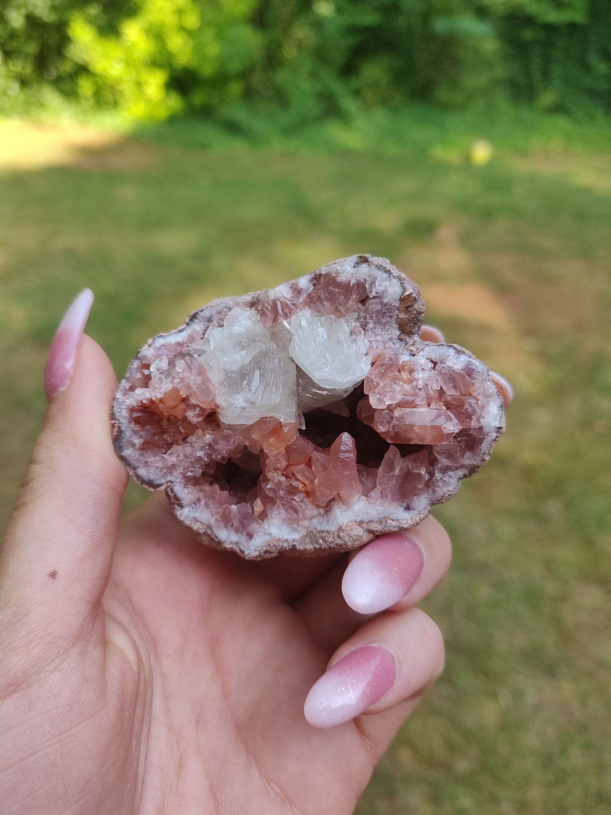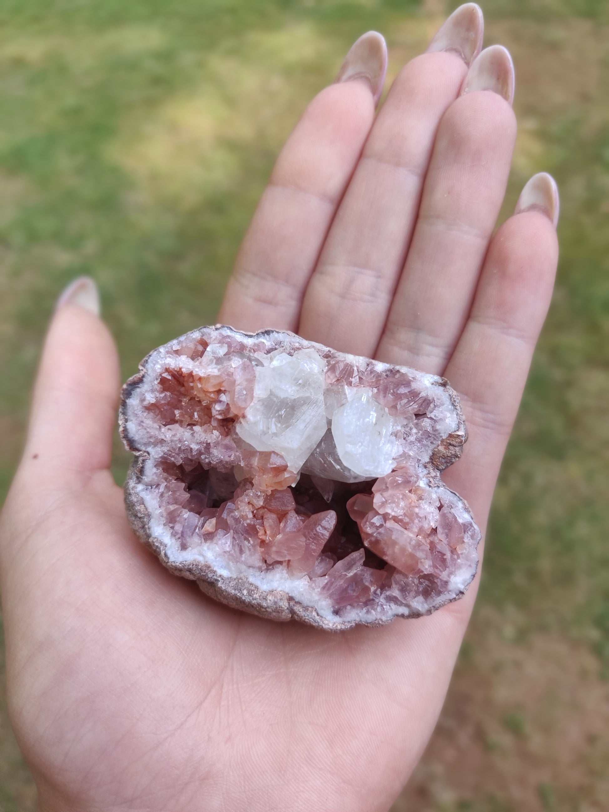 Pink Amethyst Geode with Fluorescent Calcite (#2F)