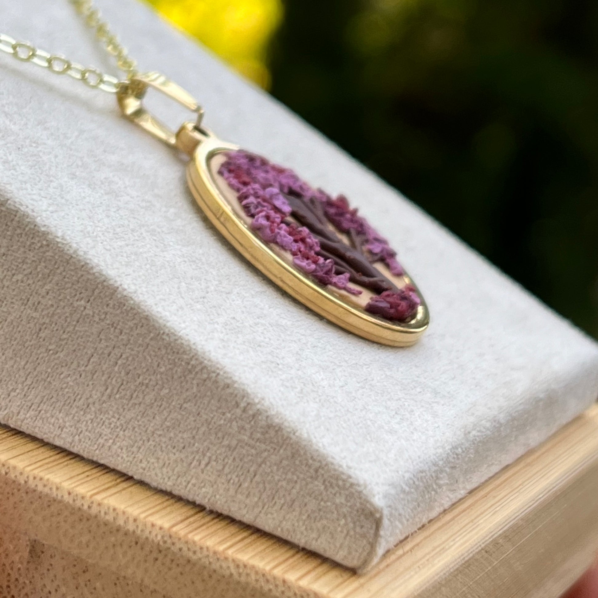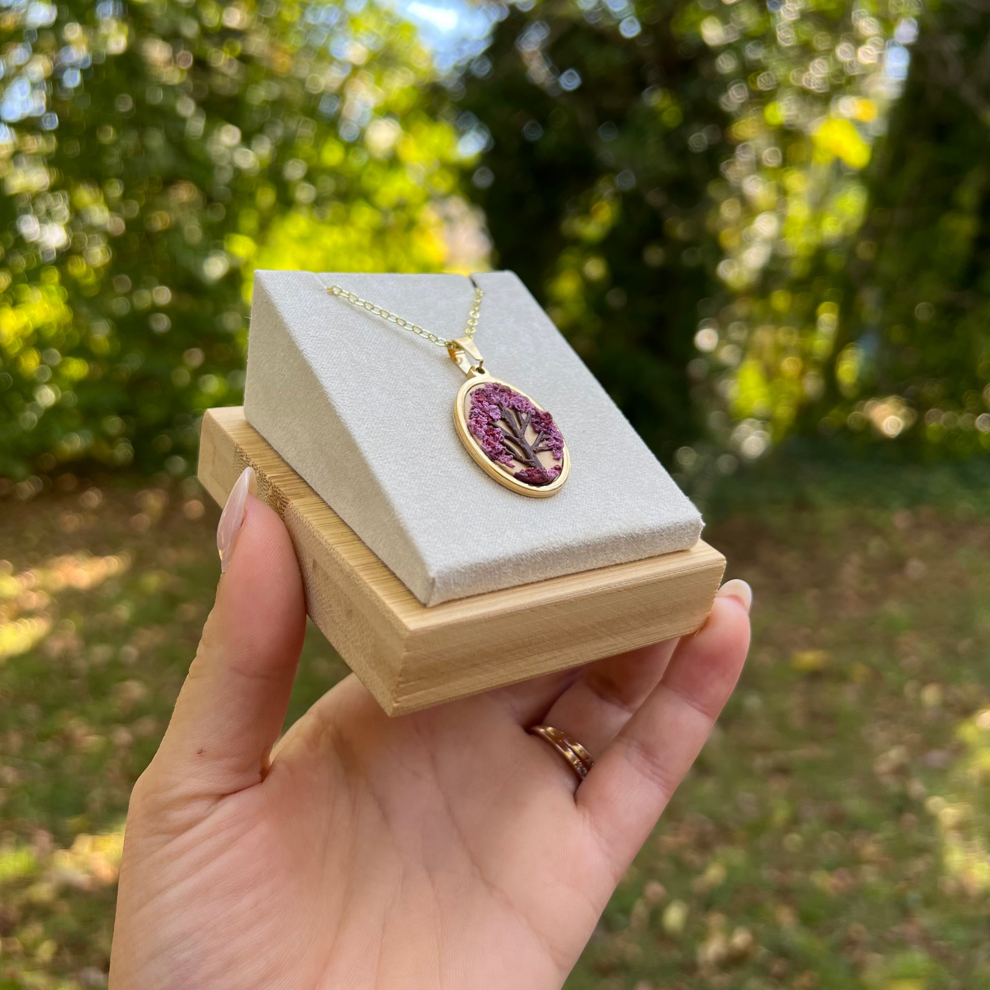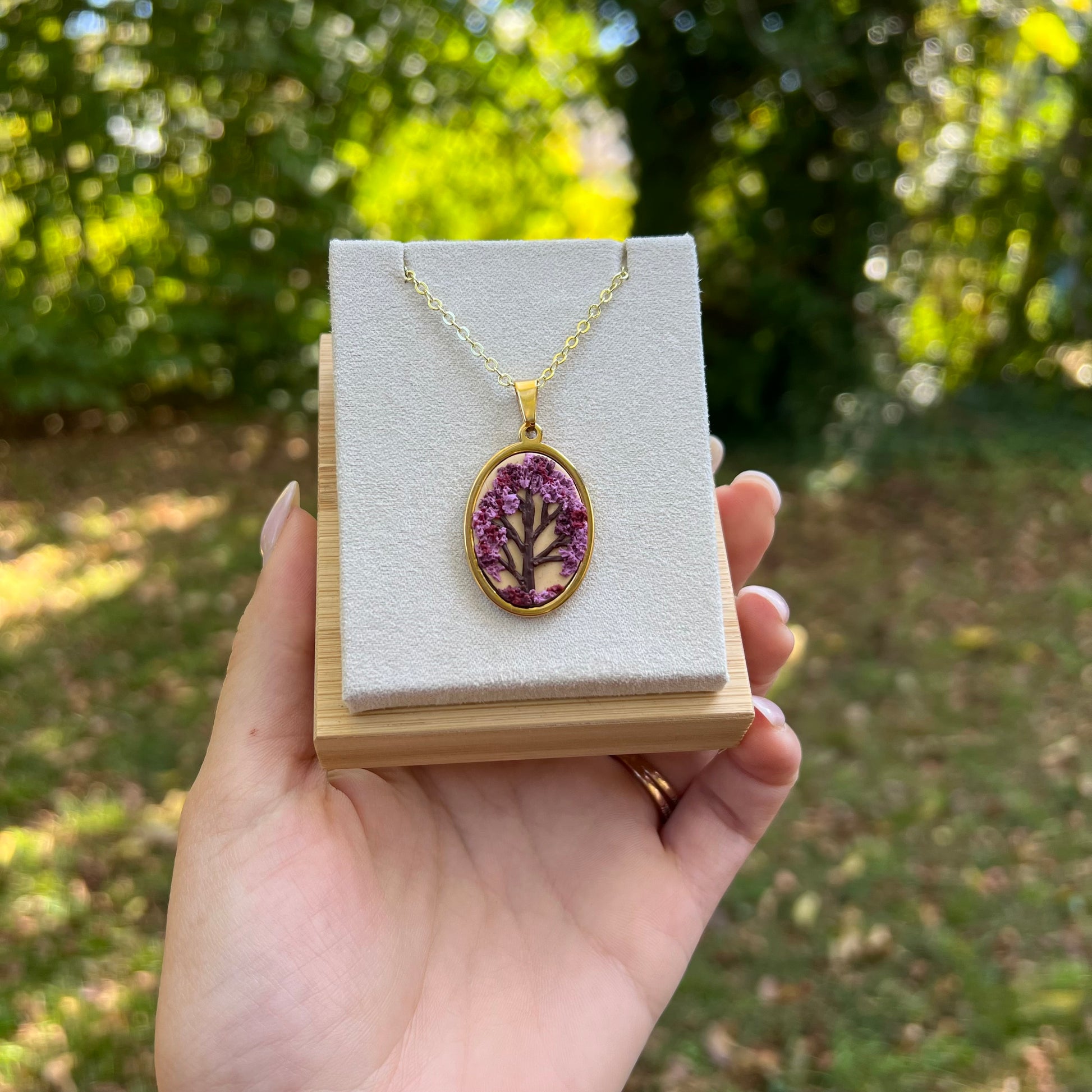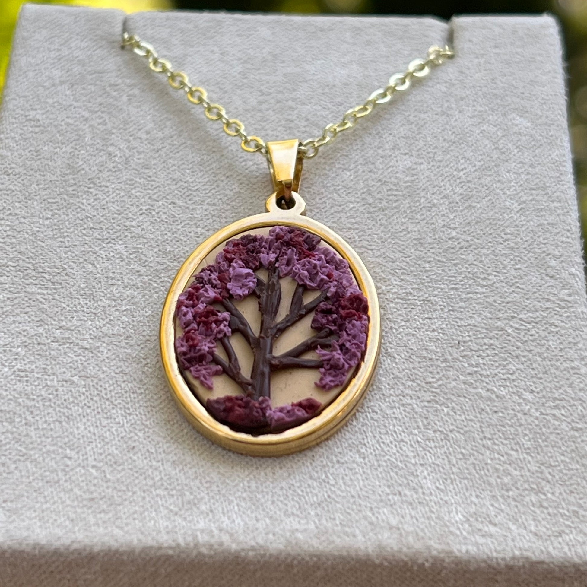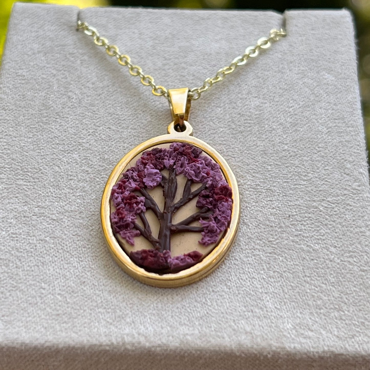 Once sculpted and baked to perfection, the tree is elegantly set into a gold-plated stainless steel bezel, adding a touch of sophistication and warmth. The 18" chain, also gold-plated over stainless steel, complements the pendant beautifully, ensuring a durable and stylish finish that shines with every movement.