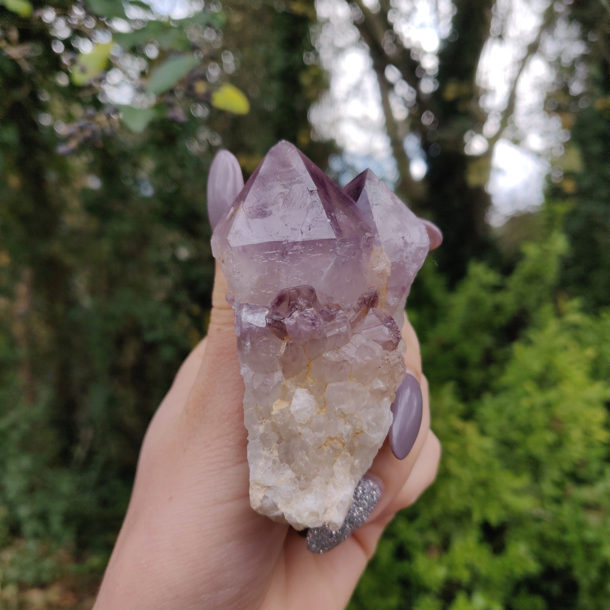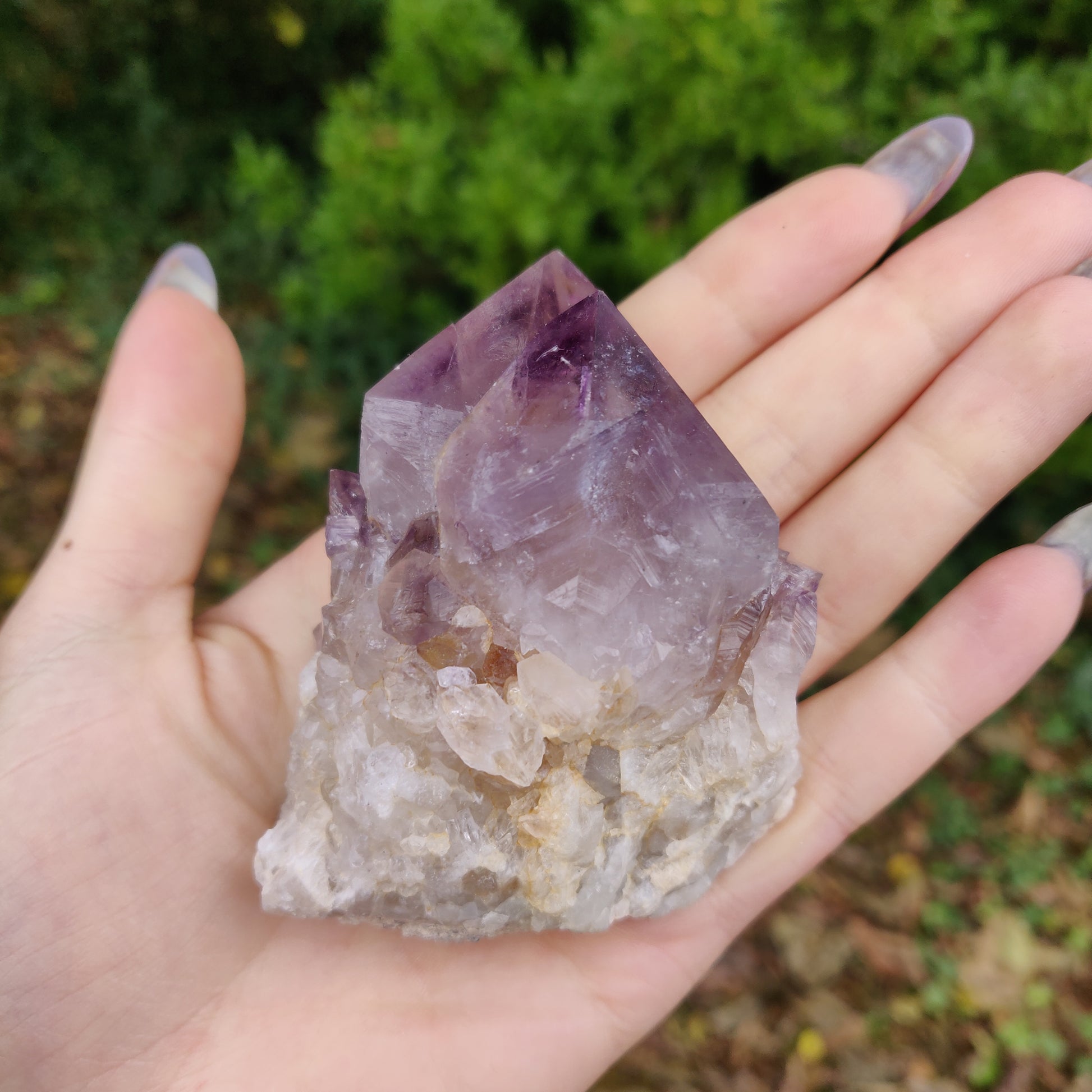 Amethyst evokes passion and imagination, emotion and logic. It stimulates creativity and is particularly helpful in artistic endeavors. Amethyst is the traditional birthstone of those born in February, and is associated with the sign of Pisces.