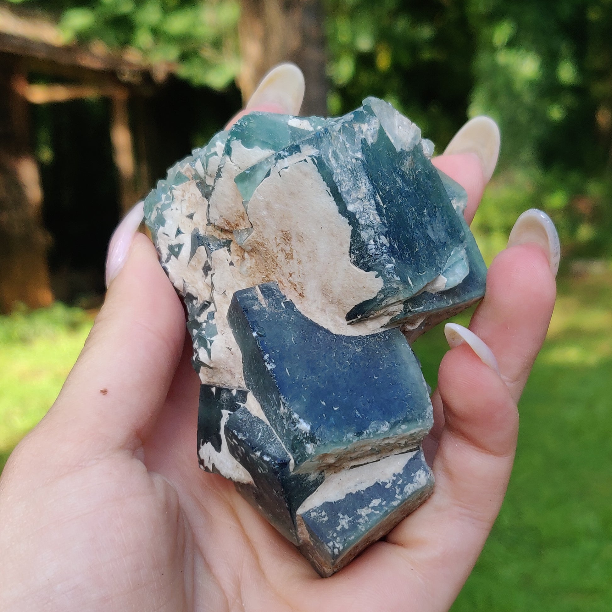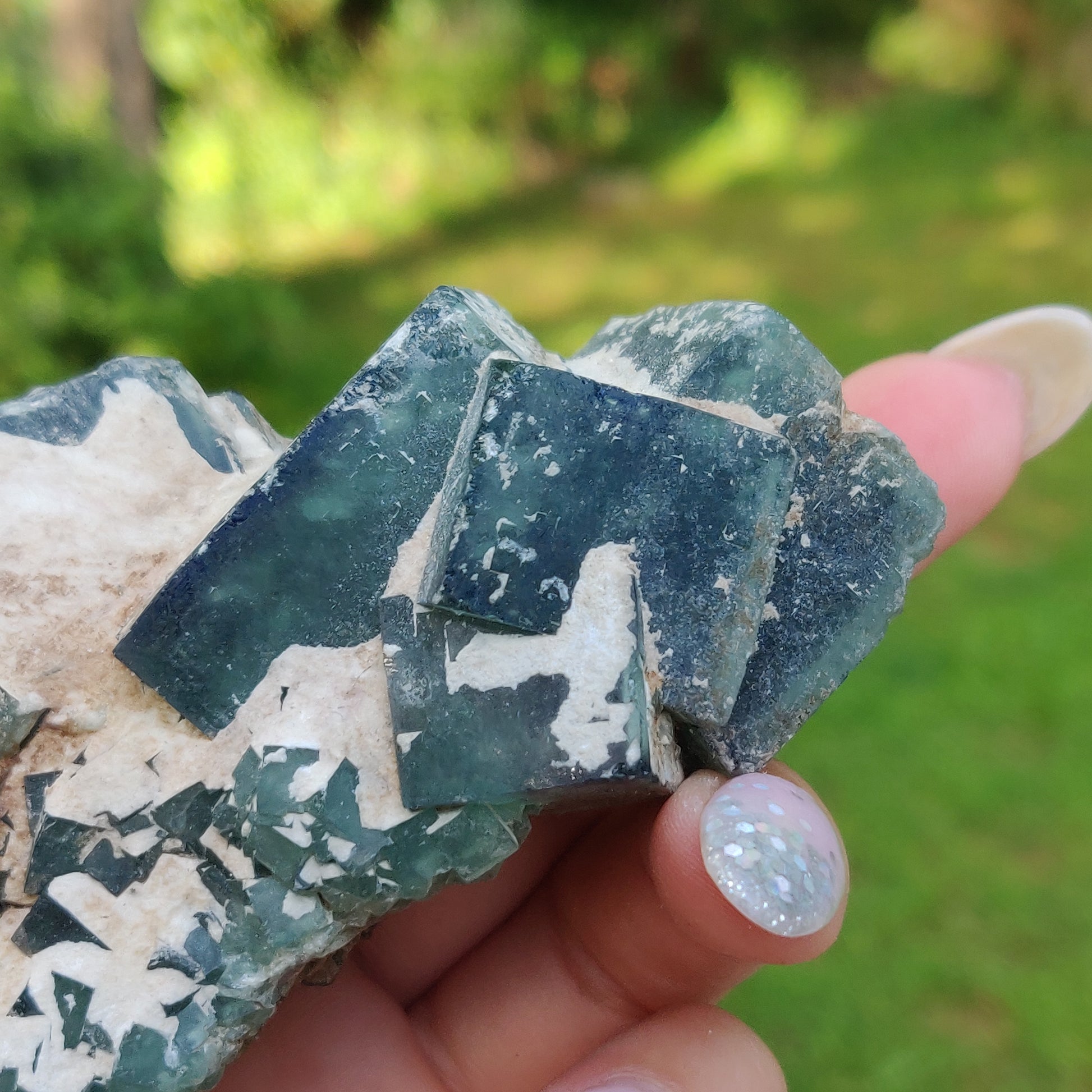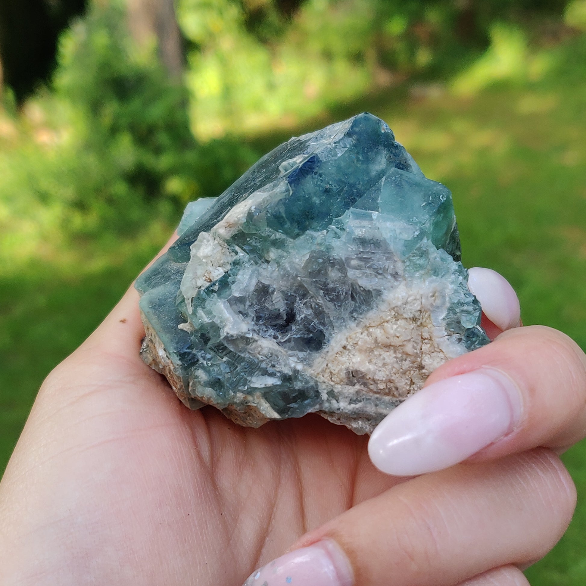 *Please note: this is a natural gem that will have imperfections. There are a few small chips and nicks. Natural beauty <3 This piece was photographed in natural lighting, but color may vary from monitor to monitor. Info about fluorite is from The Crystal Bible by Judy Hall.