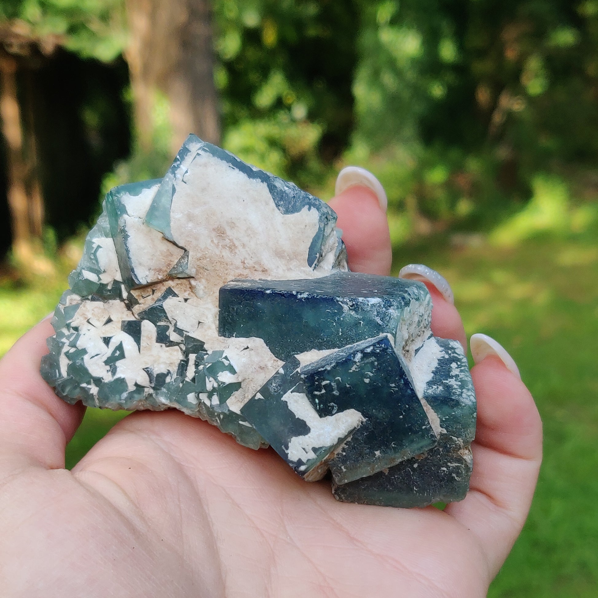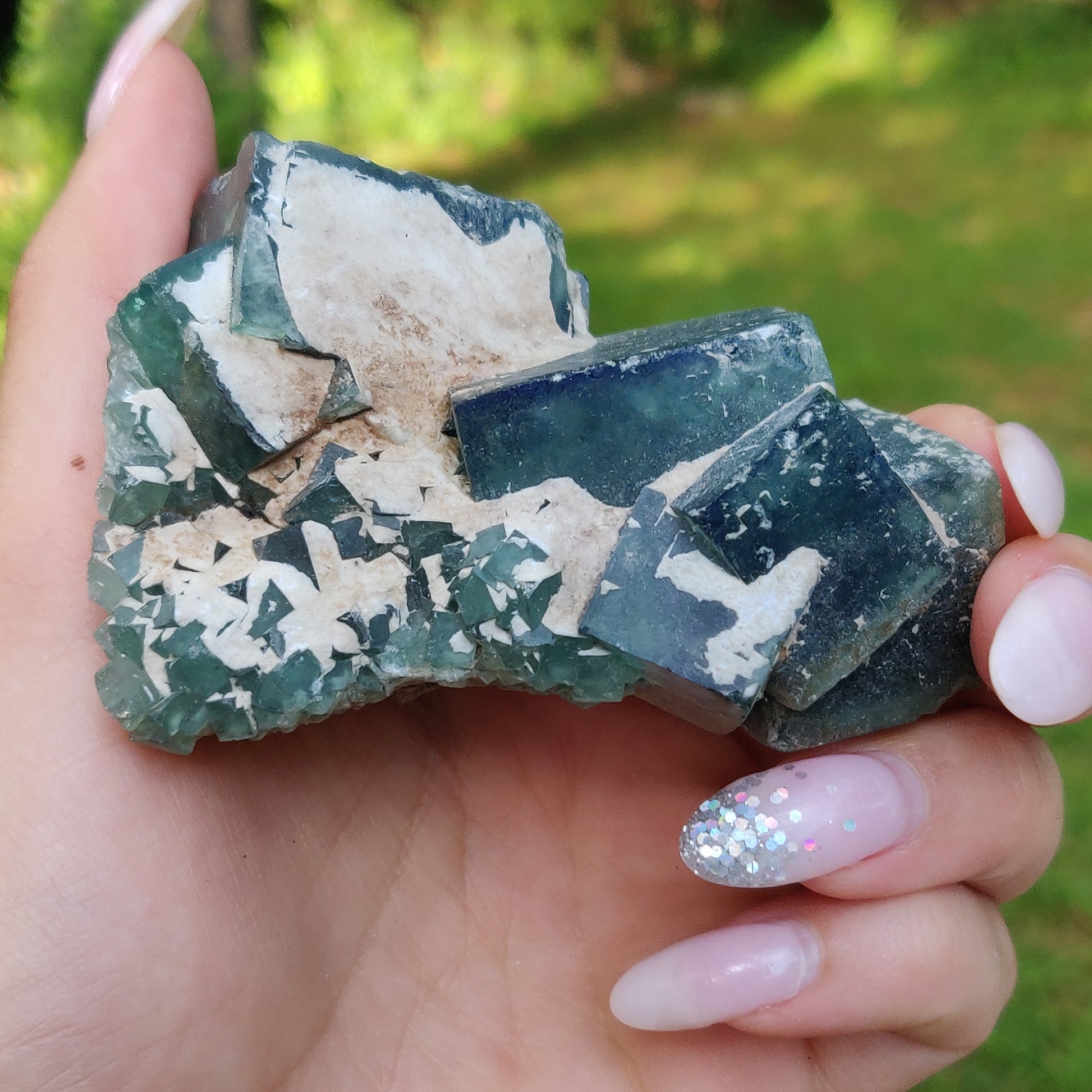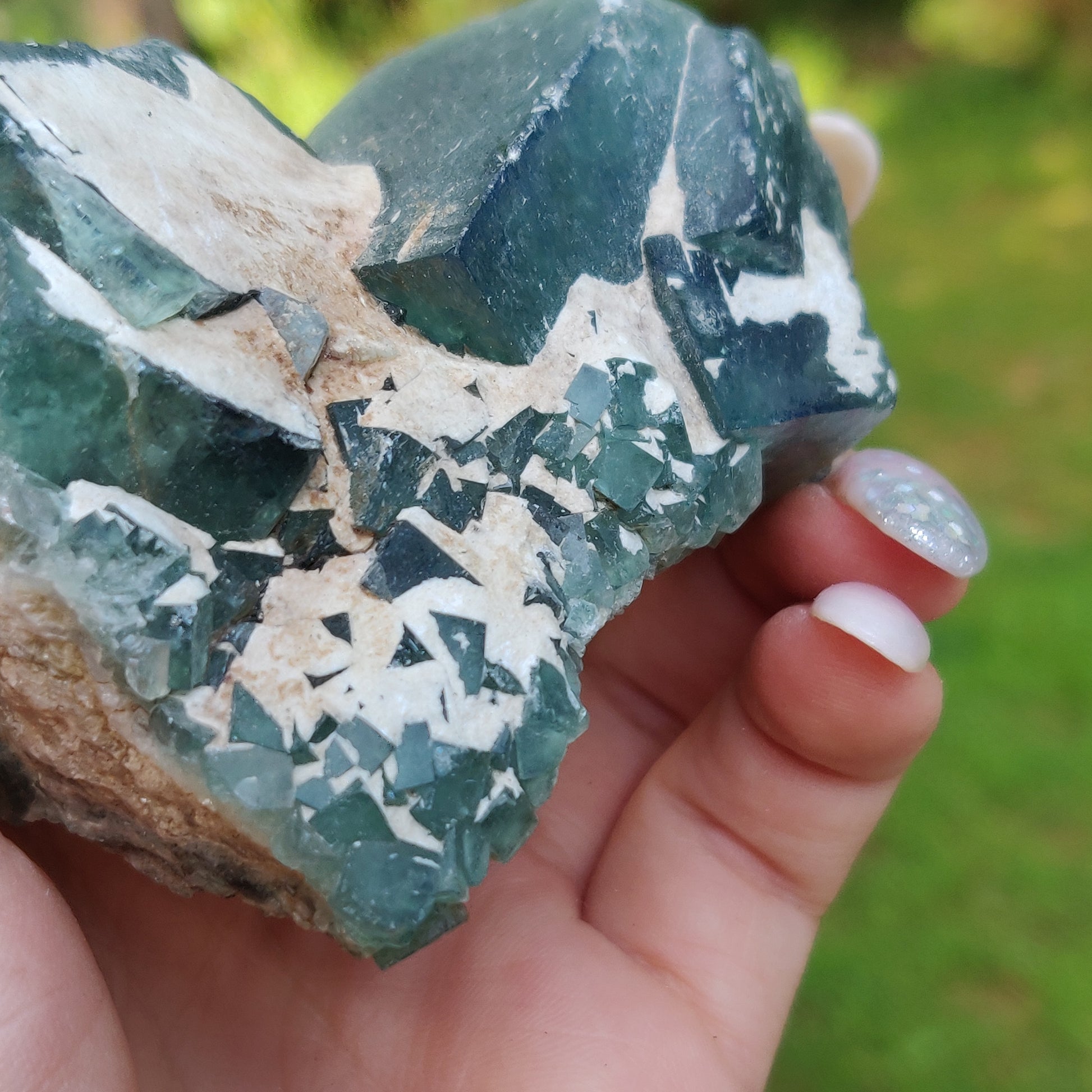 *Please note: this is a natural gem that will have imperfections. There are a few small chips and nicks. Natural beauty <3 This piece was photographed in natural lighting, but color may vary from monitor to monitor. Info about fluorite is from The Crystal Bible by Judy Hall.