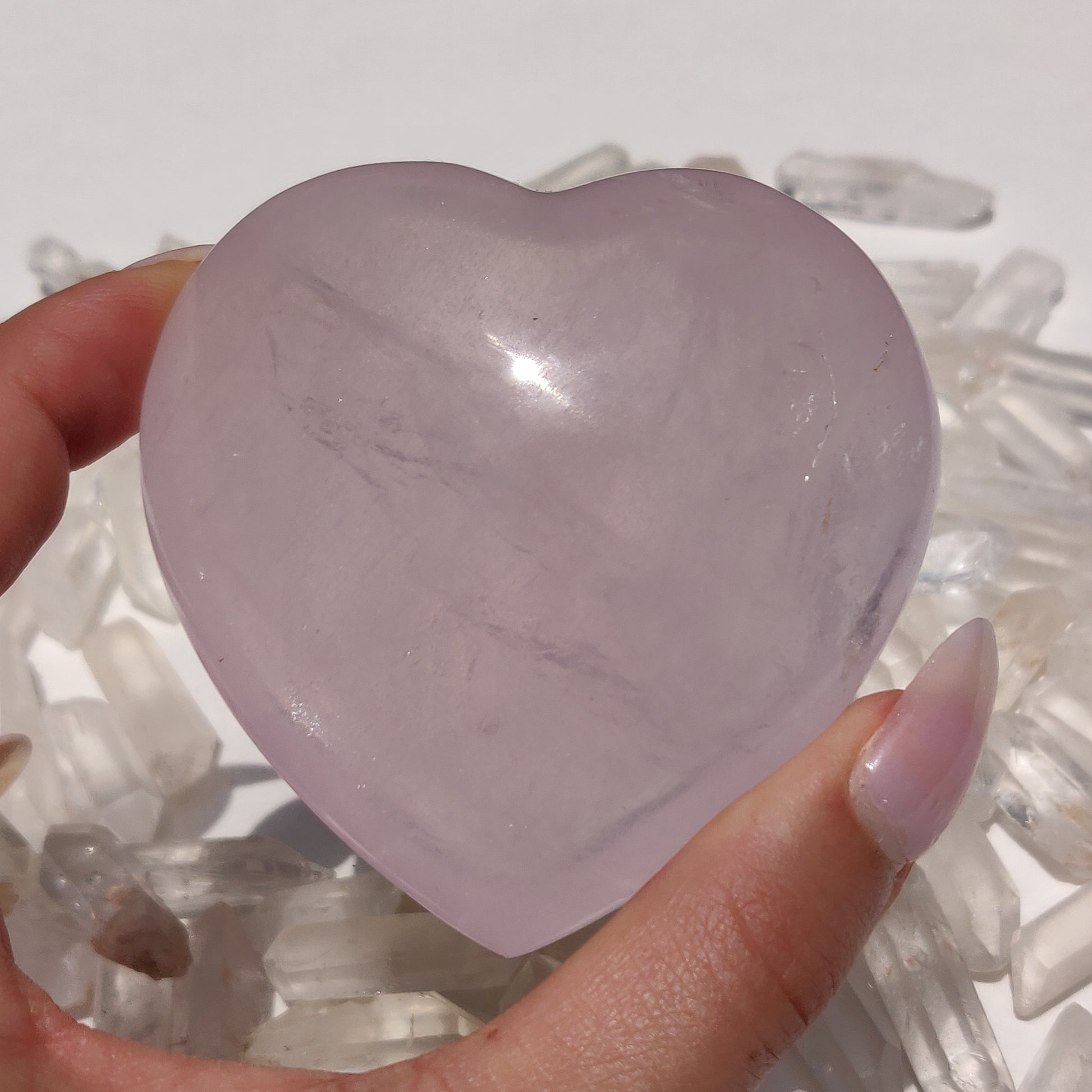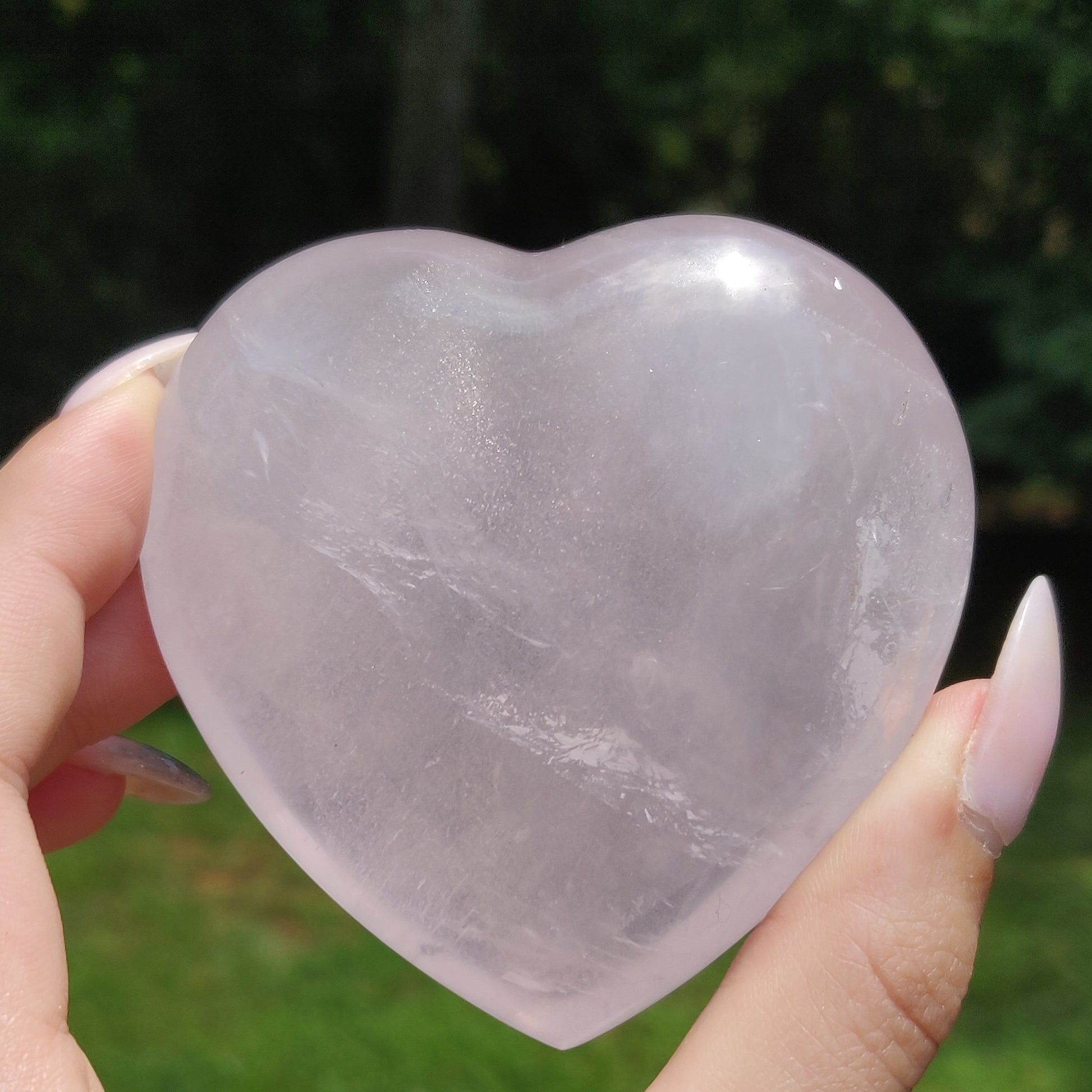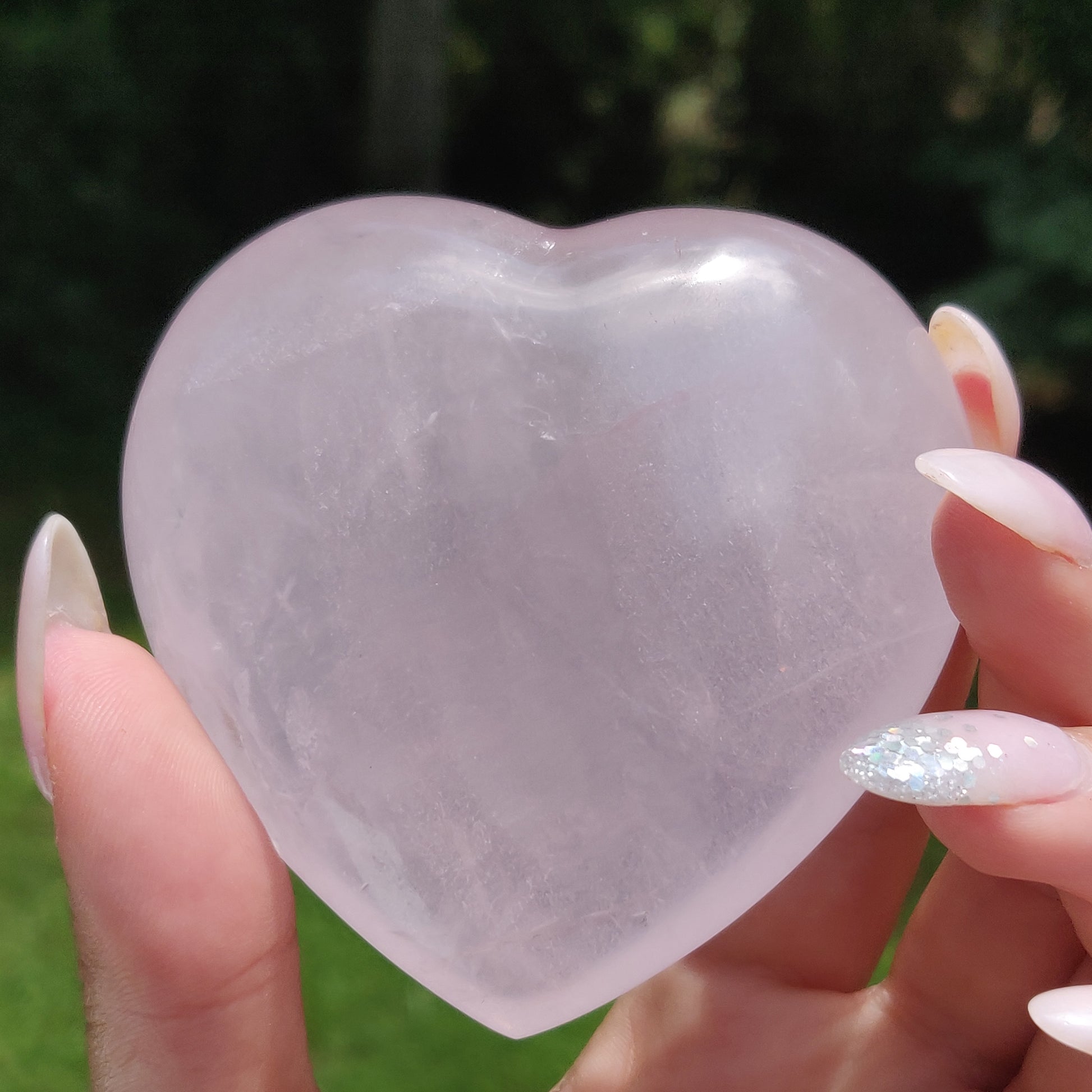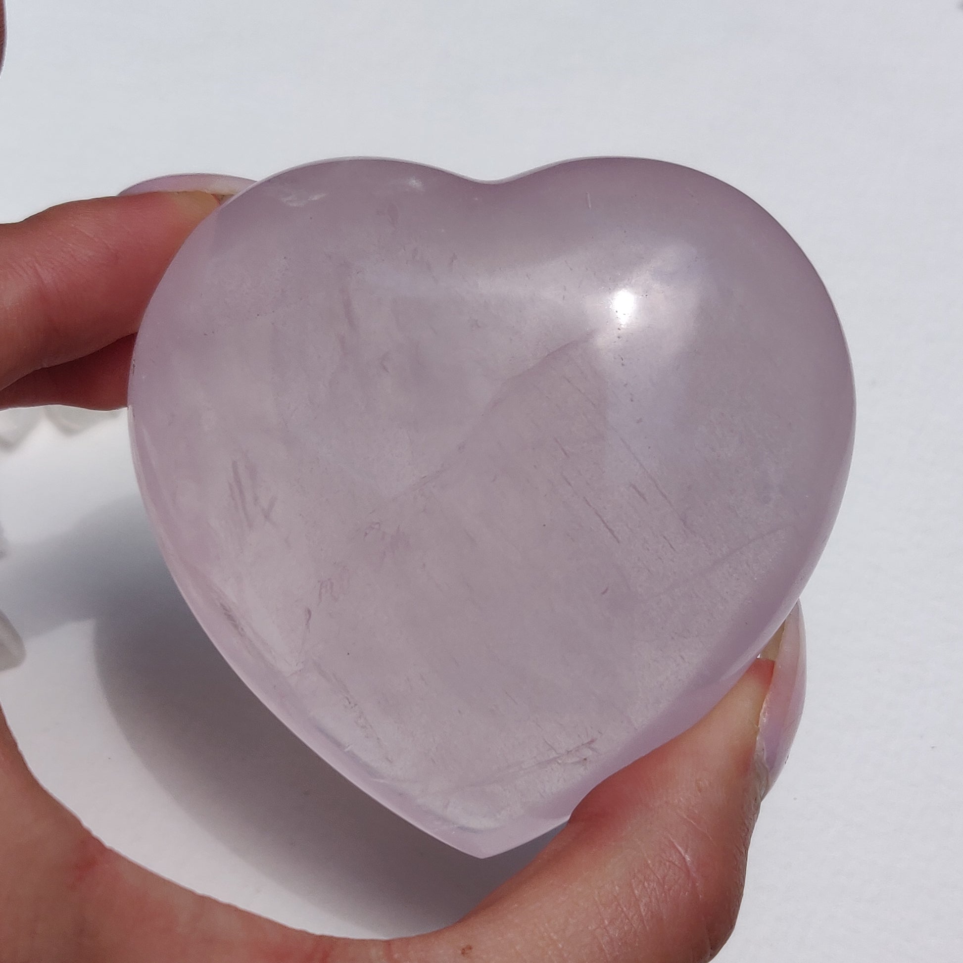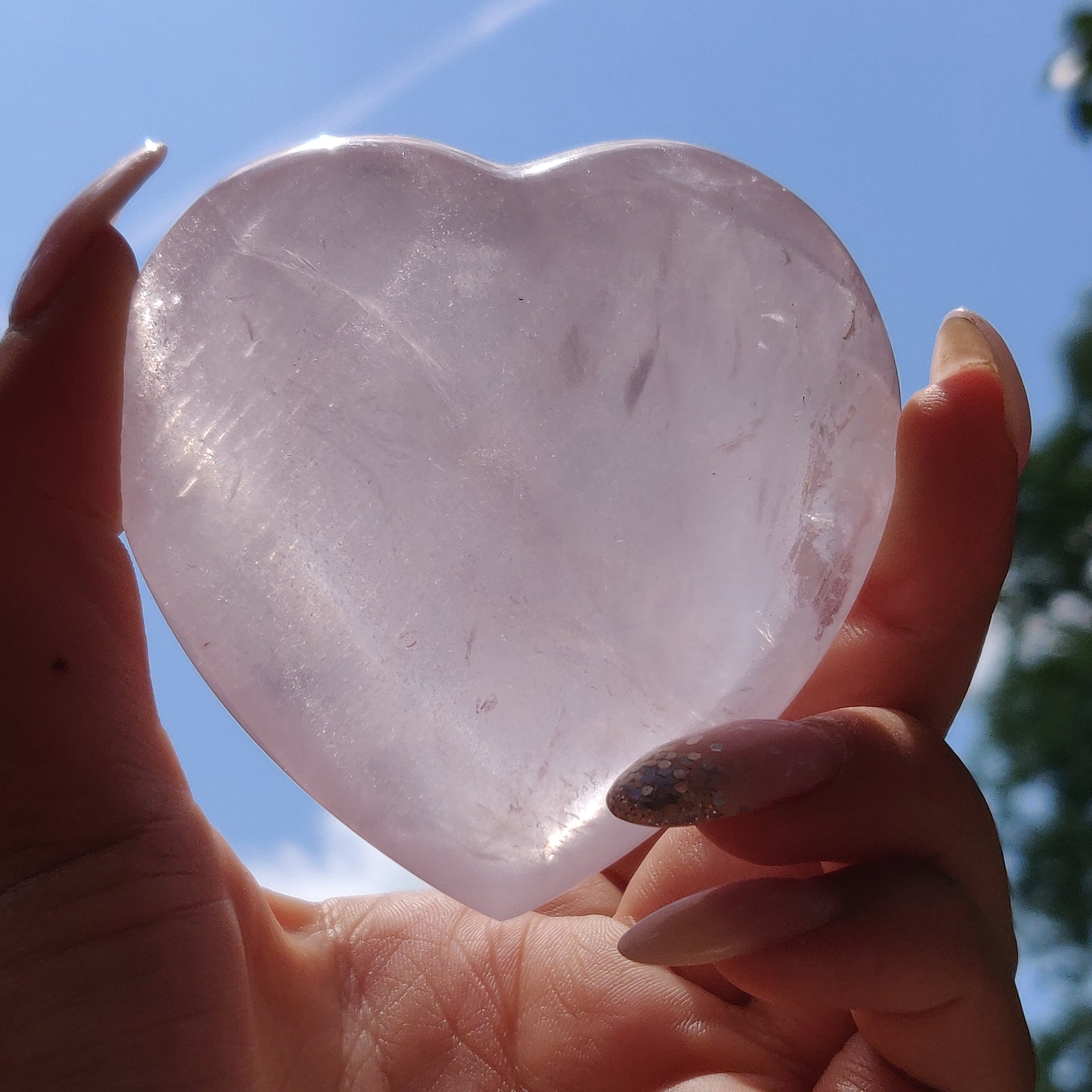 This gorgeous rose quartz heart display a beautiful pink hue! ♡ Rose quartz is known as the crystal of unconditional love. ♡ It carries a soft feminine energy of compassion and peace, tenderness, healing, nourishment, and comfort. It speaks directly to the Heart Chakra, dissolving emotional wounds, fears and resentments, and circulates a Divine loving energy throughout the entire aura. Reawakening the heart to its own innate love, it provides a deep sense of personal fulfillment and contentment, allowing one the capacity to truly give and receive love from others.