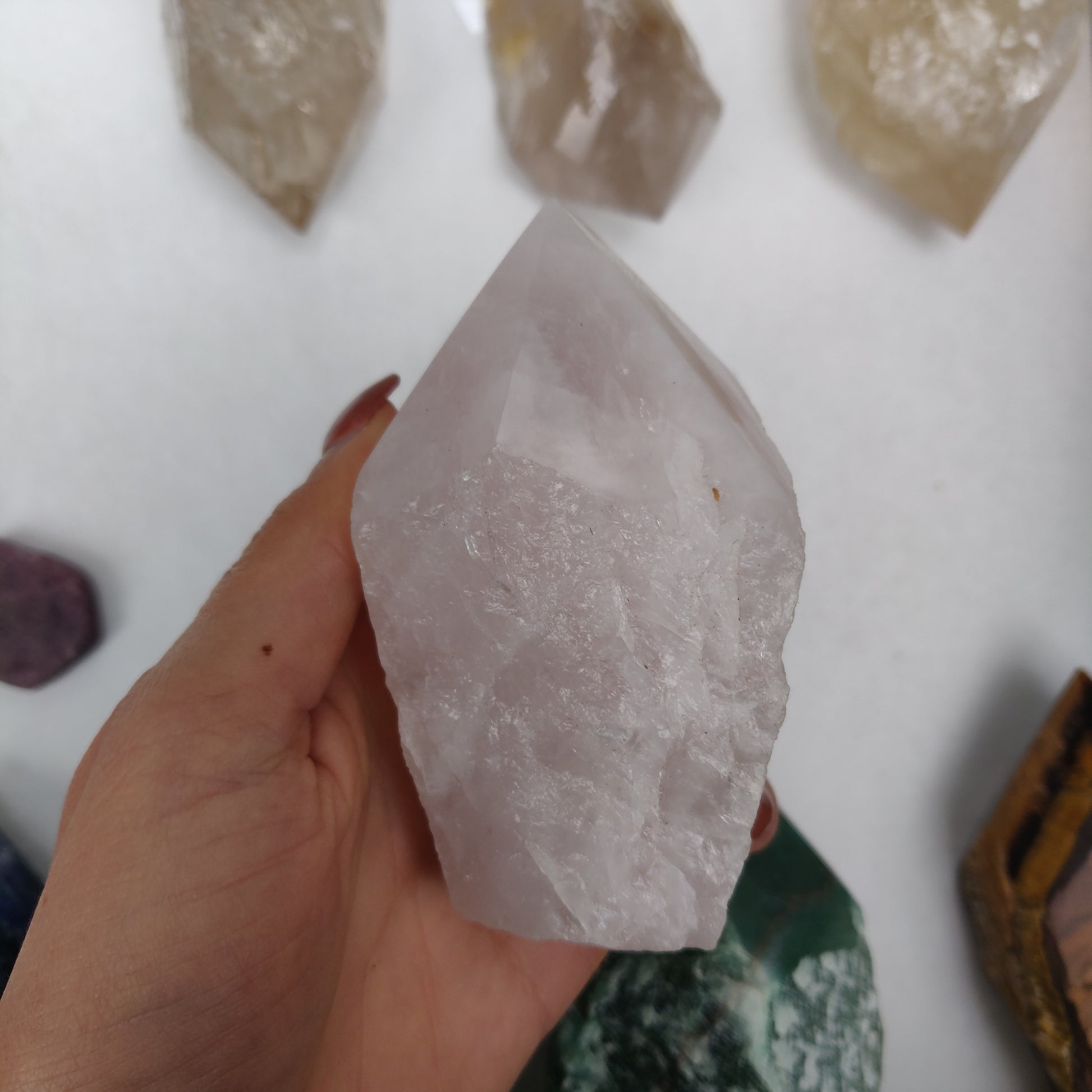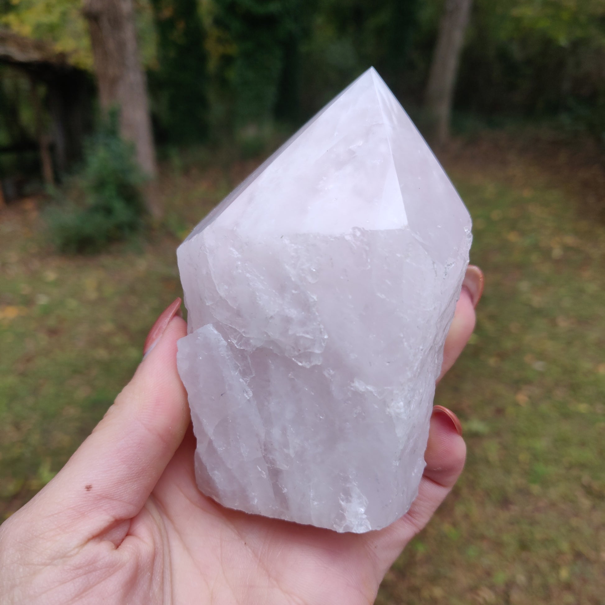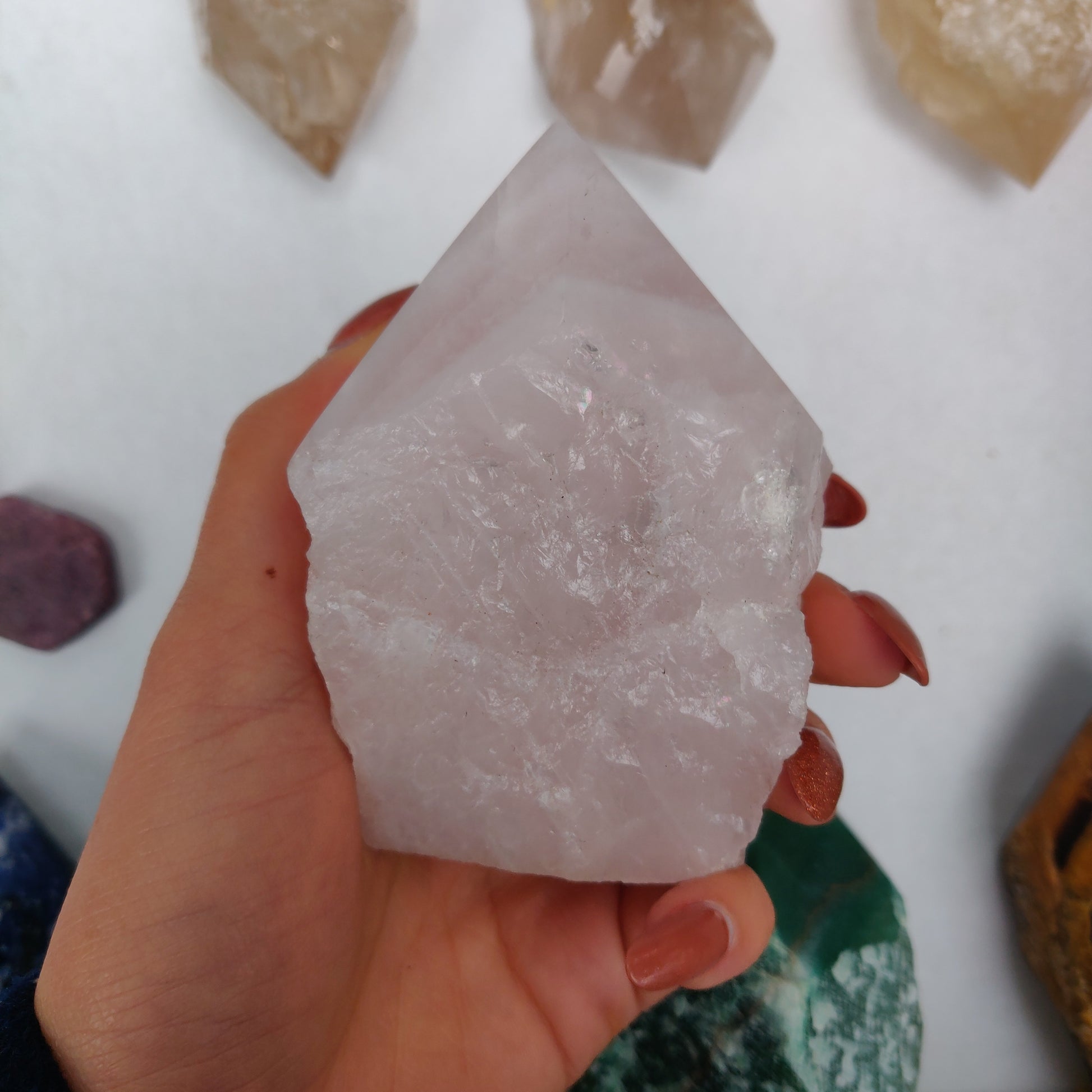 This gorgeous rose quartz point is half polished and half rough and displays a beautiful pale pink hue! ♡ Rose quartz is known as the crystal of unconditional love. ♡ It carries a soft feminine energy of compassion and peace, tenderness, healing, nourishment, and comfort. It speaks directly to the Heart Chakra, dissolving emotional wounds, fears and resentments, and circulates a Divine loving energy throughout the entire aura. Reawakening the heart to its own innate love, it provides a deep sense of personal fulfillment and contentment, allowing one the capacity to truly give and receive love from others.