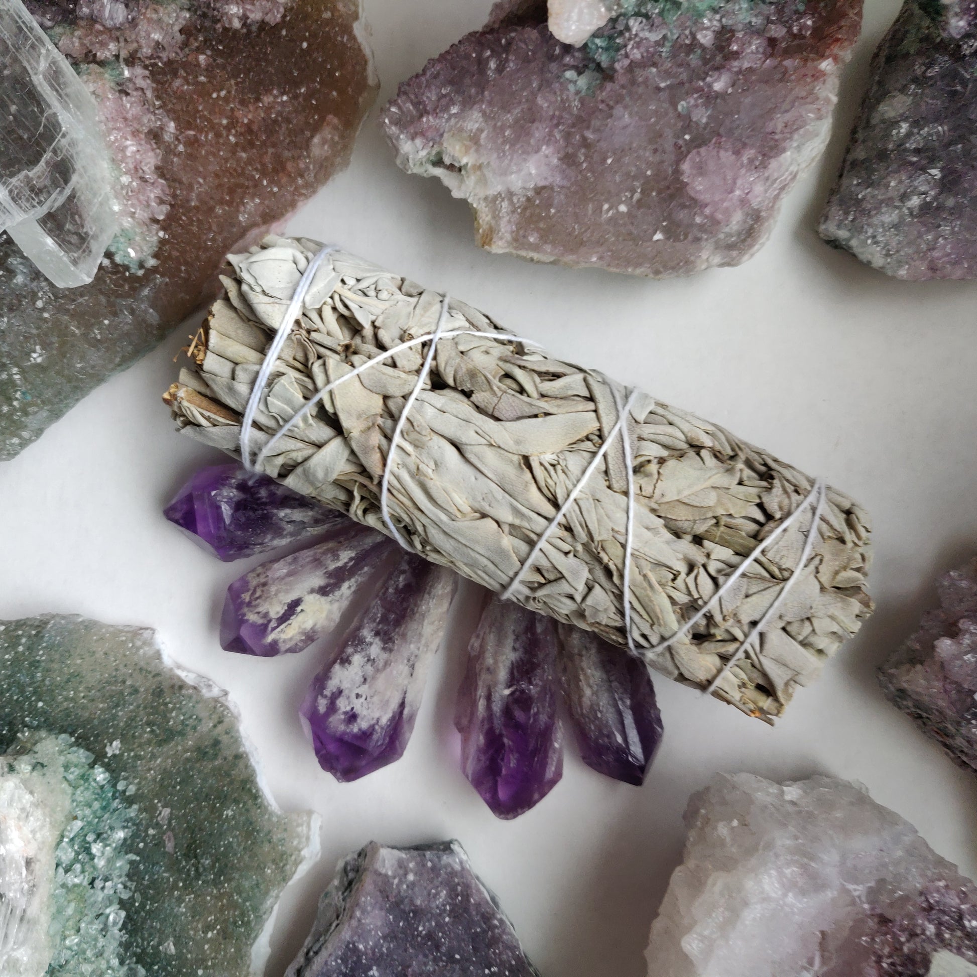 You can also choose to add a small Bahia Amethyst point to accompany your sage bundle from the dropdown menu. Your mini Amethyst point will be intuitively chosen, if you decide to add it to your purchase. :)