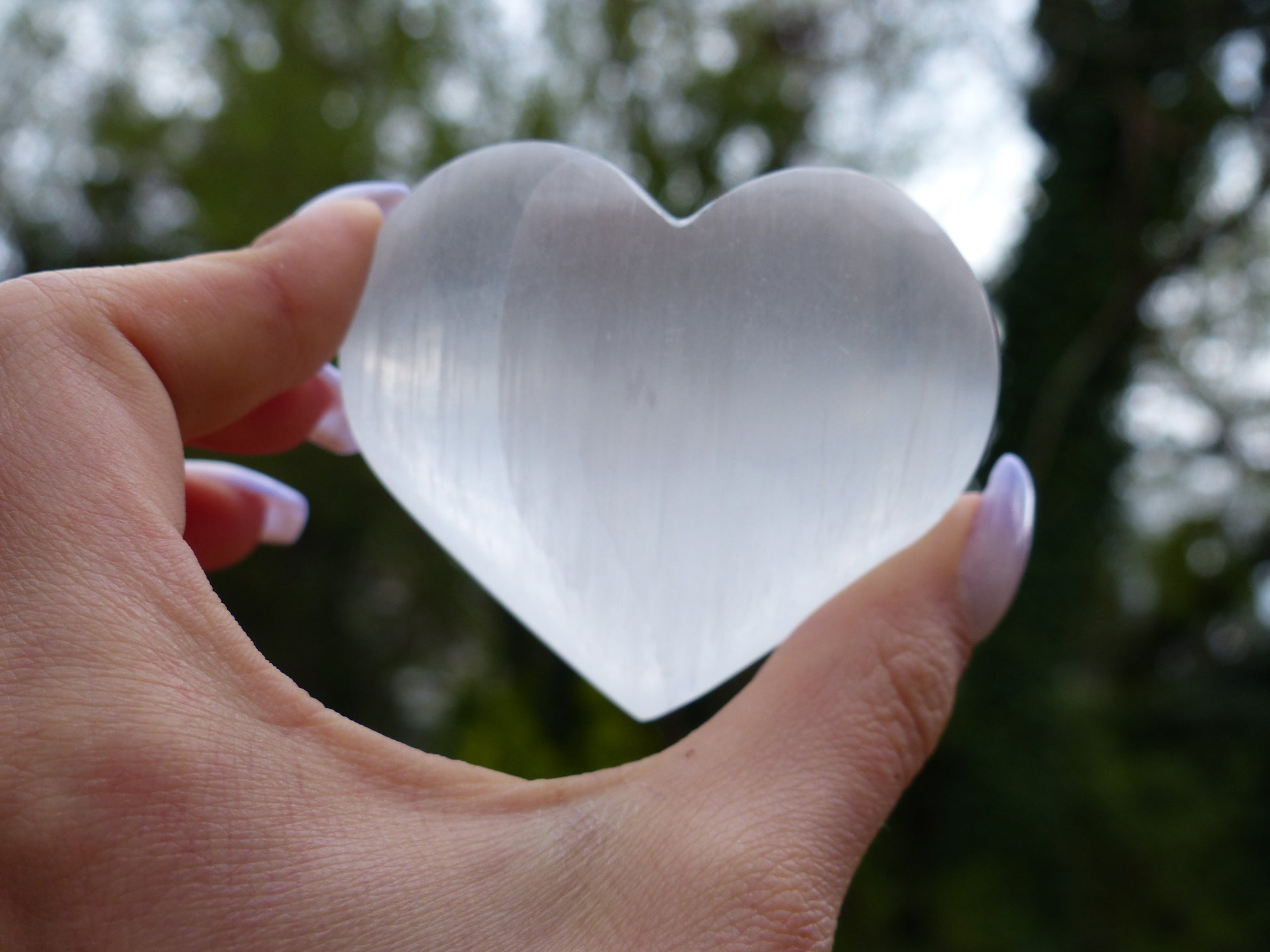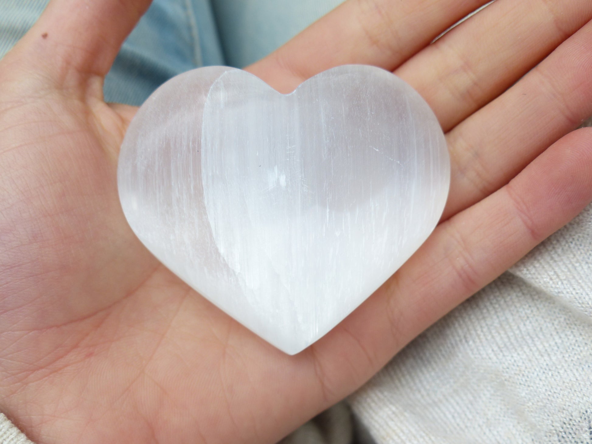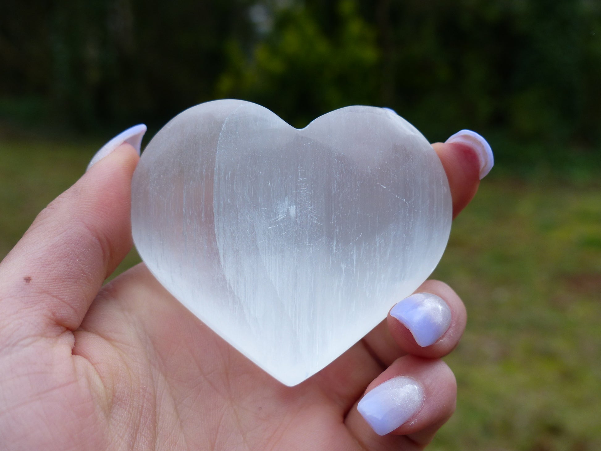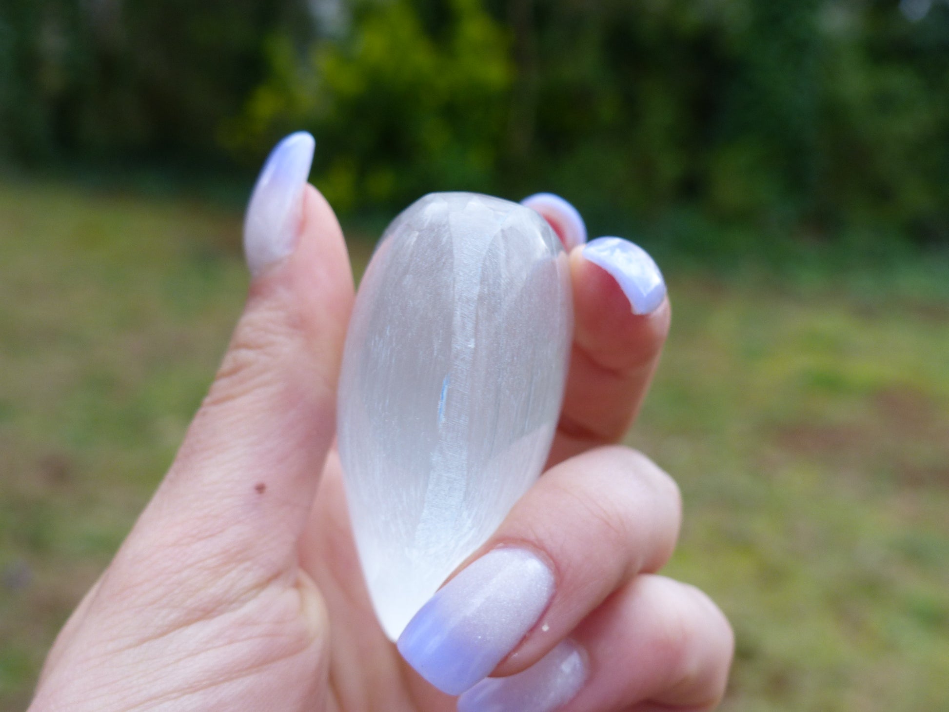 *Please note: this is a natural gem that will have imperfections. There are a few small chips and nicks. Natural beauty <3 Selenite is a soft mineral, so it should be kept dry.