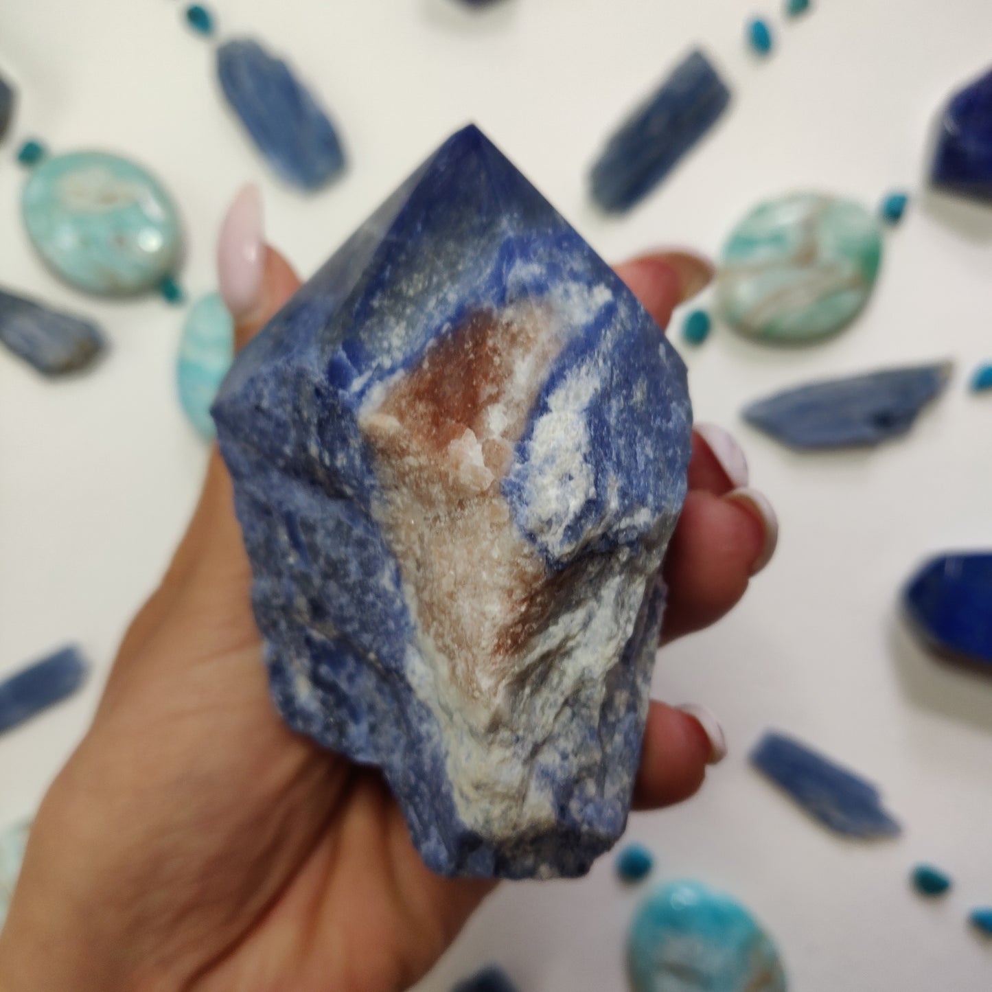 This beautiful Sodalite point is polished into a point at the top and left raw and unpolished on its bottom half.