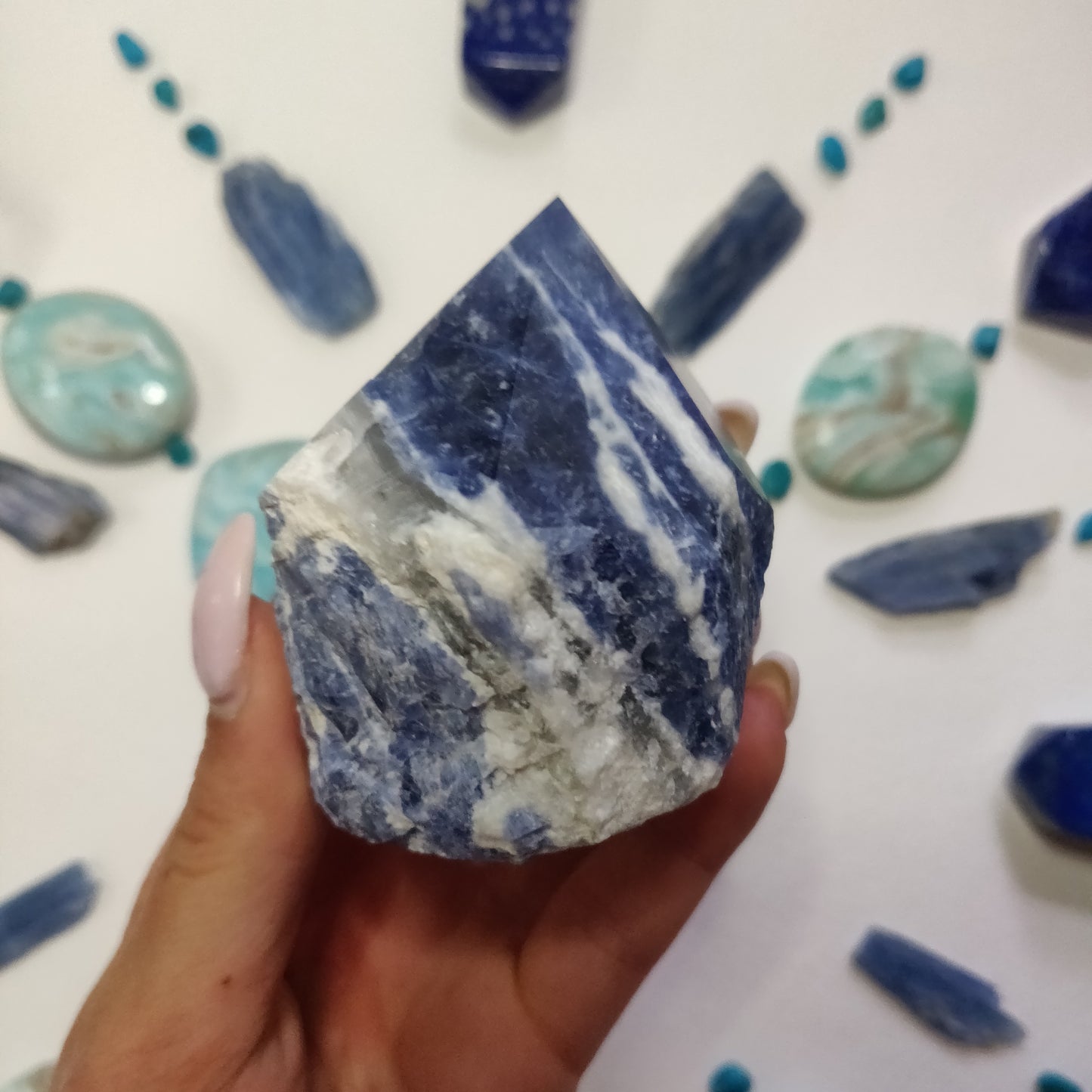 This beautiful Sodalite point is polished into a point at the top and left raw and unpolished on its bottom half.