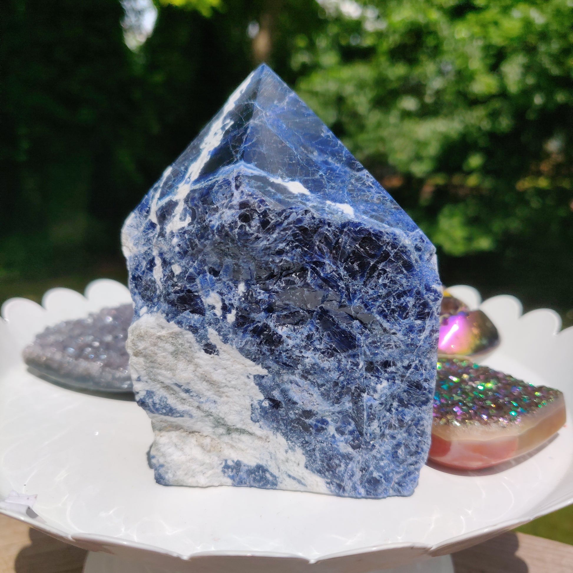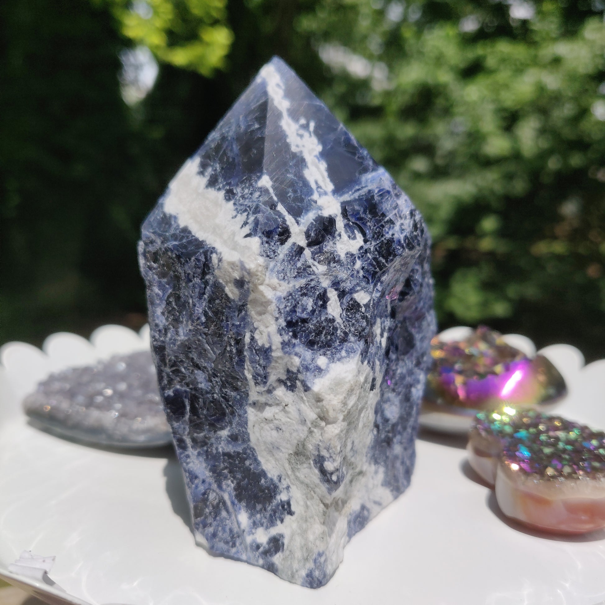 This beautiful Sodalite point is polished into a point at the top and left raw and unpolished on its bottom half.