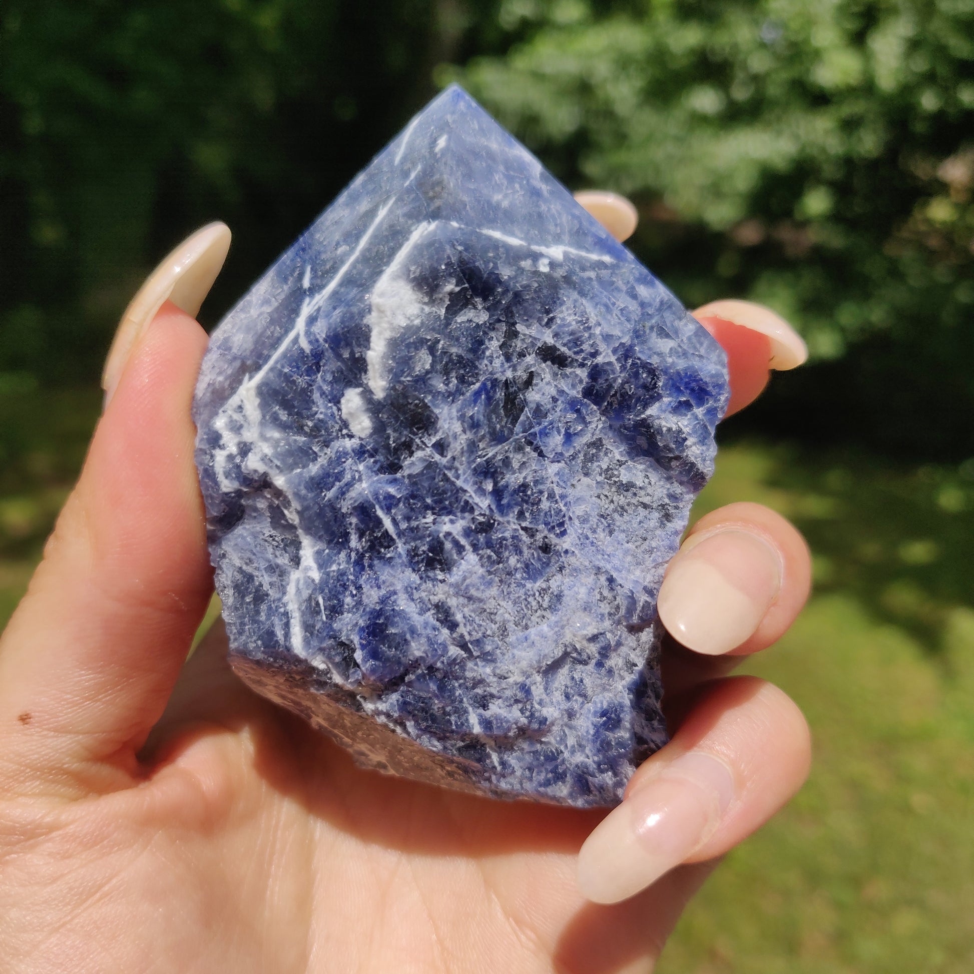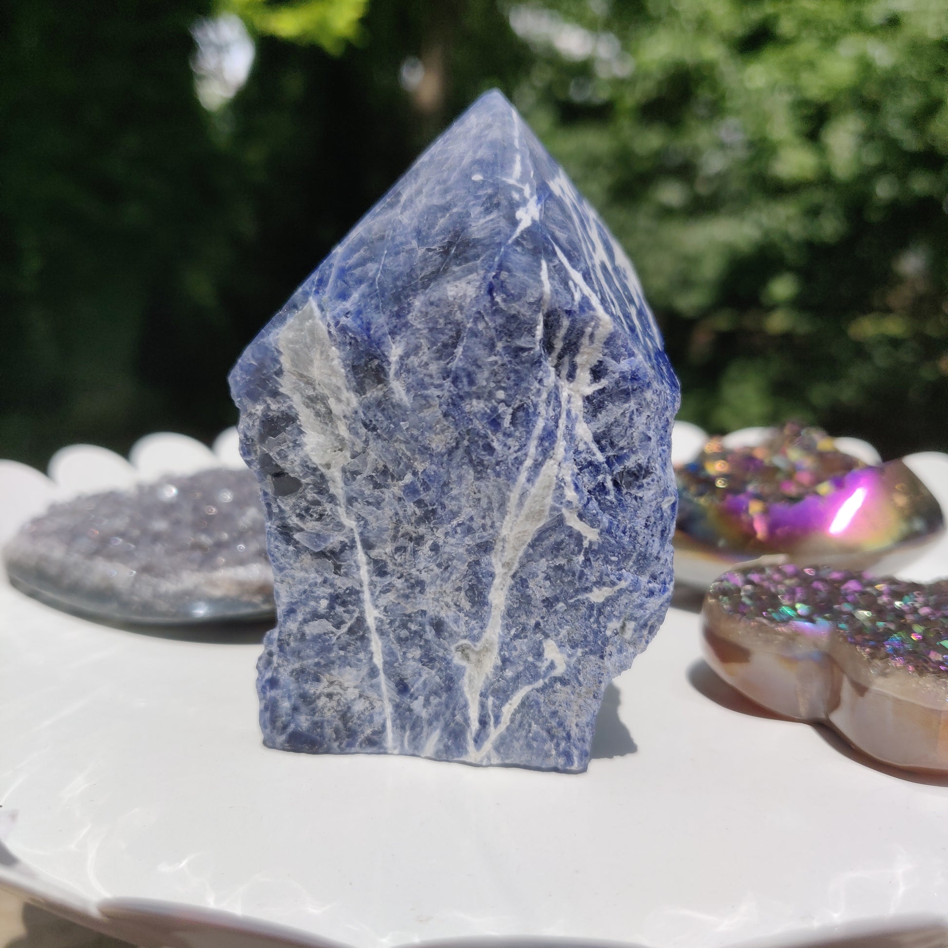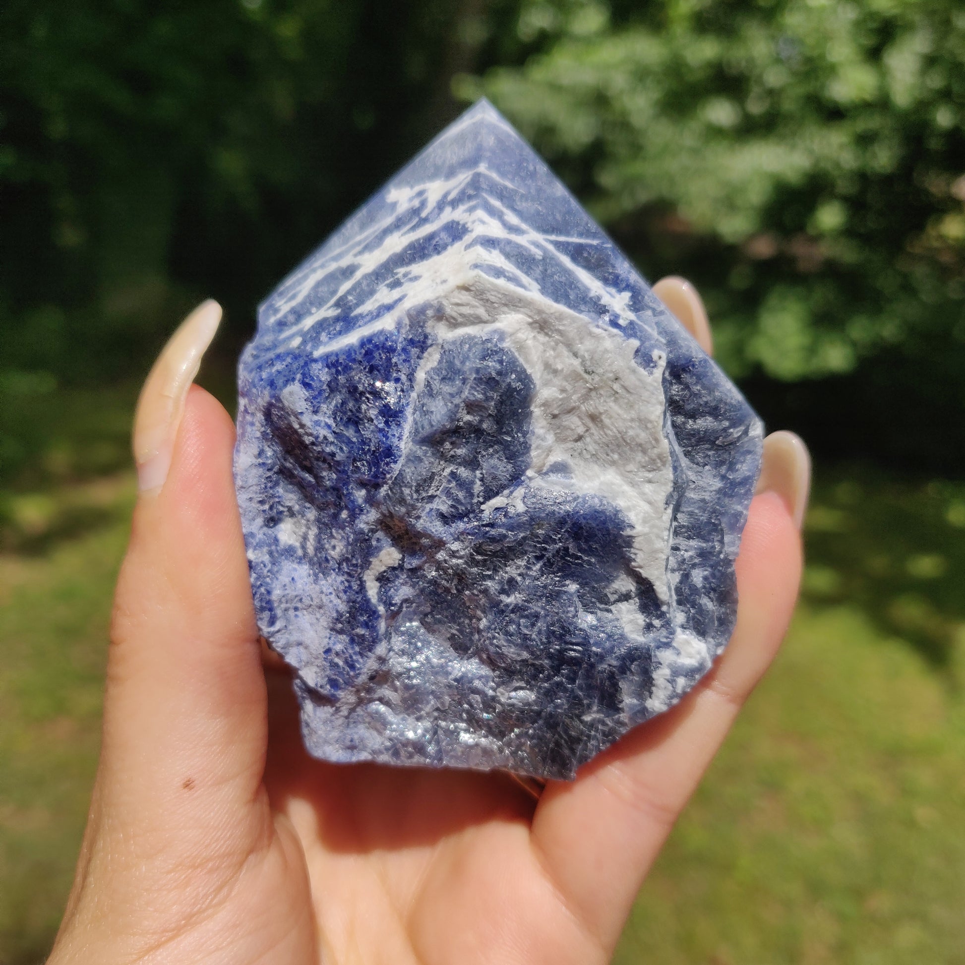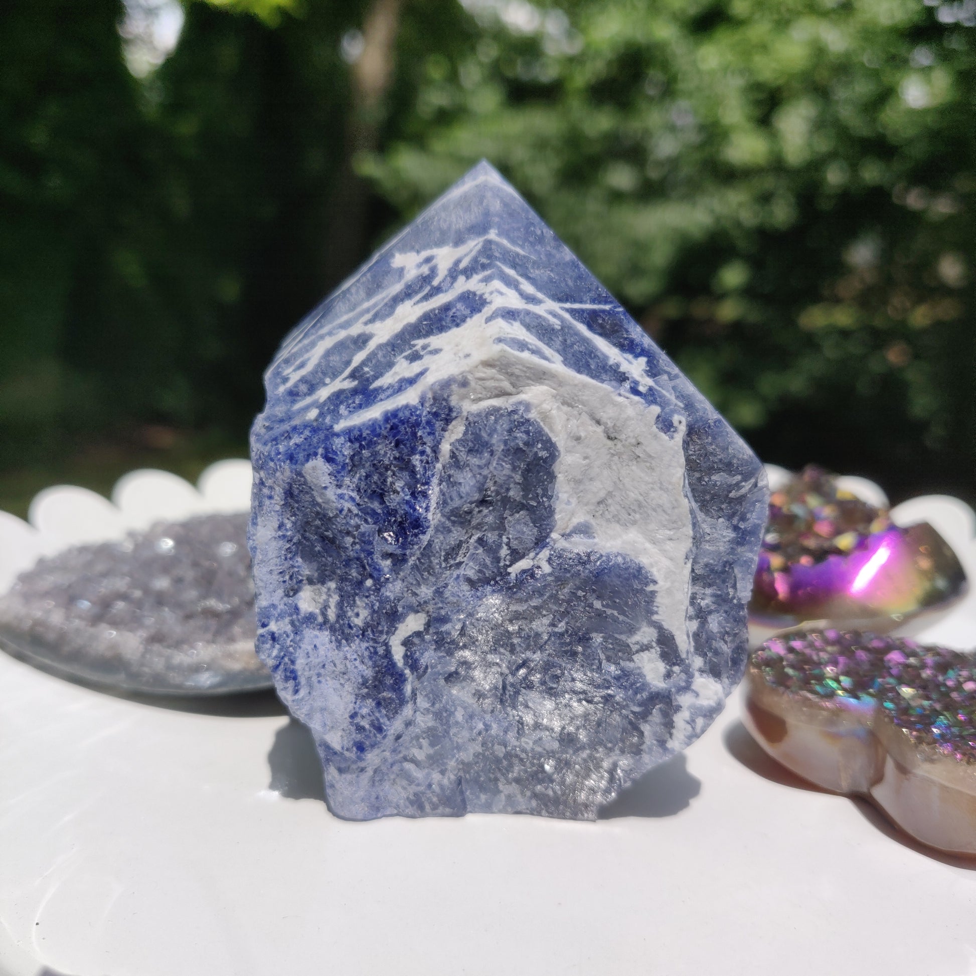 This beautiful Sodalite point is polished into a point at the top and left raw and unpolished on its bottom half.