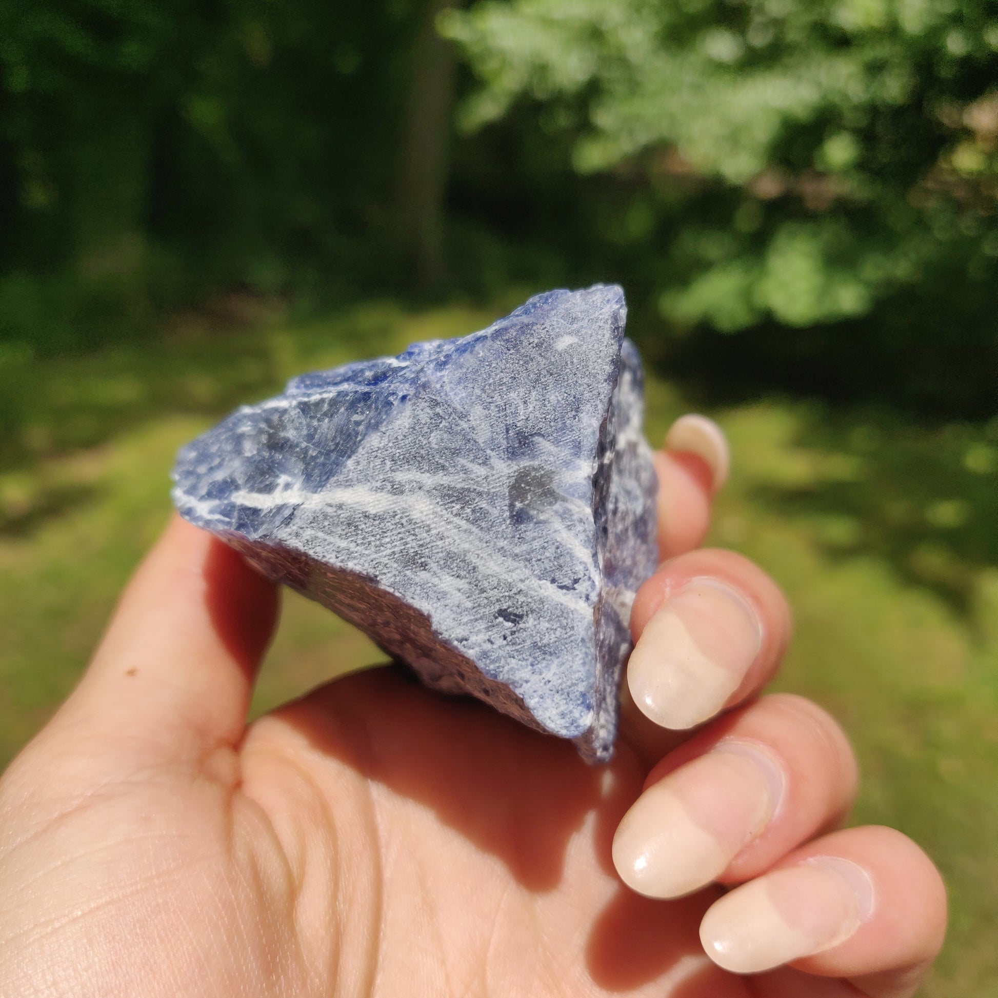 "Sodalite is an excellent stone for the mind. It encourages rational thought, objectivity, truth, and intuitive perception, together with the verbalization of feelings. As it calms the mind, it allows new information to be received. Sodalite stimulates the release of old mental conditioning and rigid mindsets, creating space to put new insights in practice." -Judy Hall, Crystal Bible vol. 1