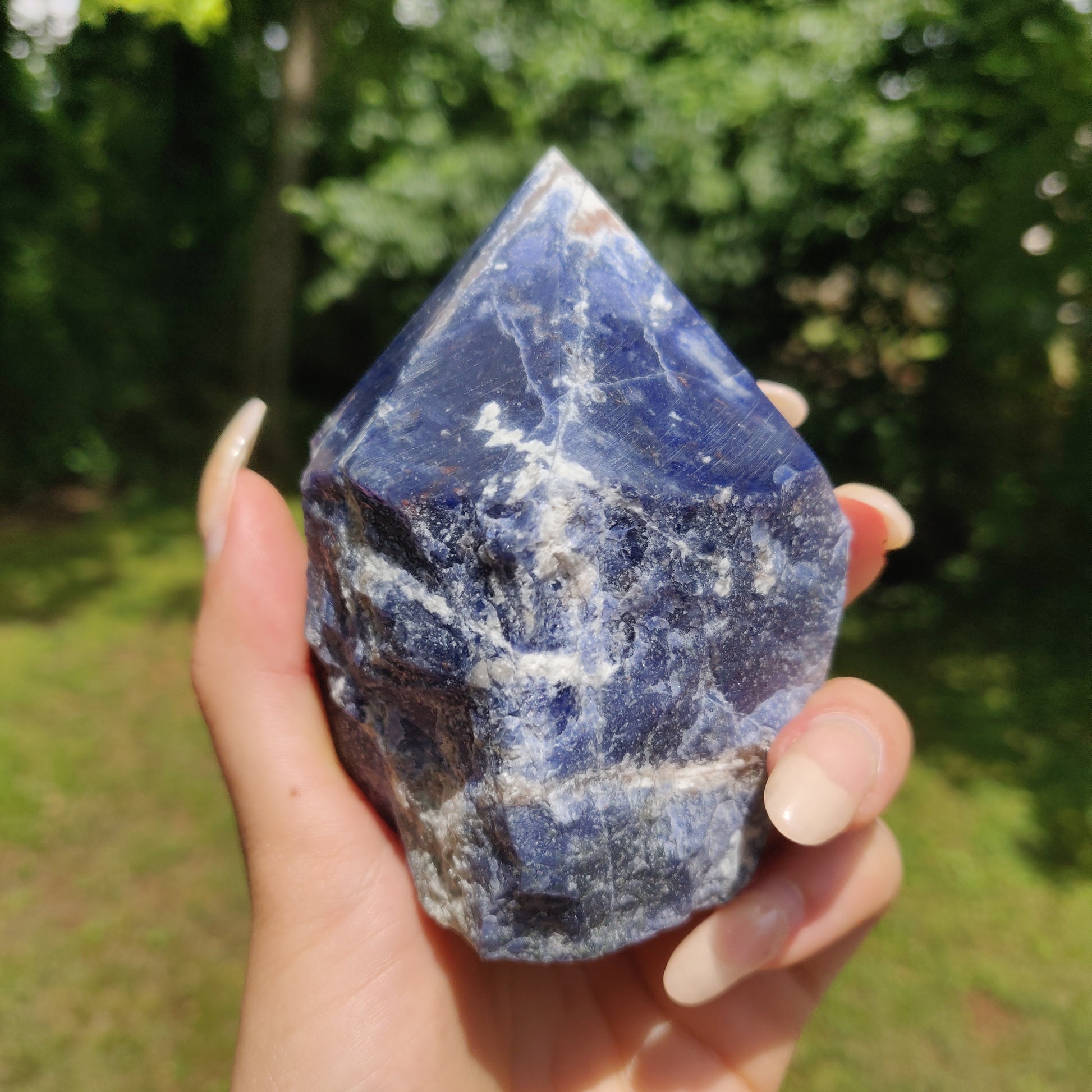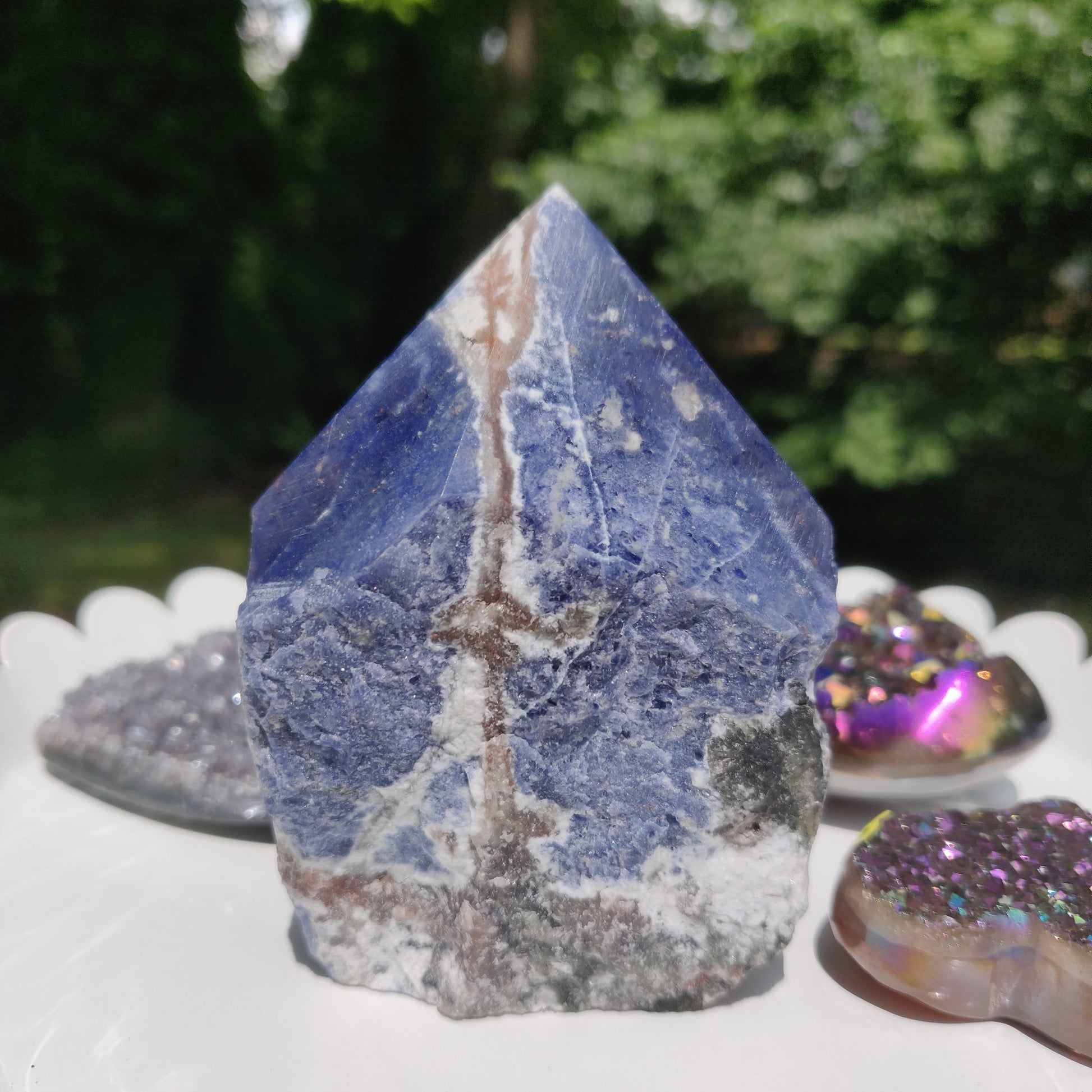 This beautiful Sodalite point is polished into a point at the top and left raw and unpolished on its bottom half.