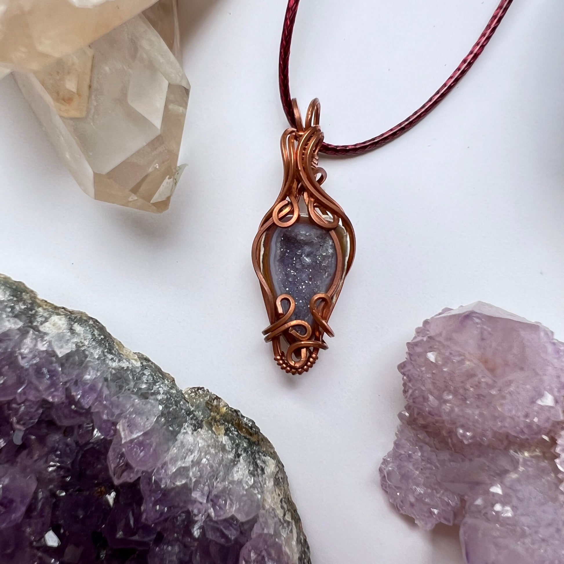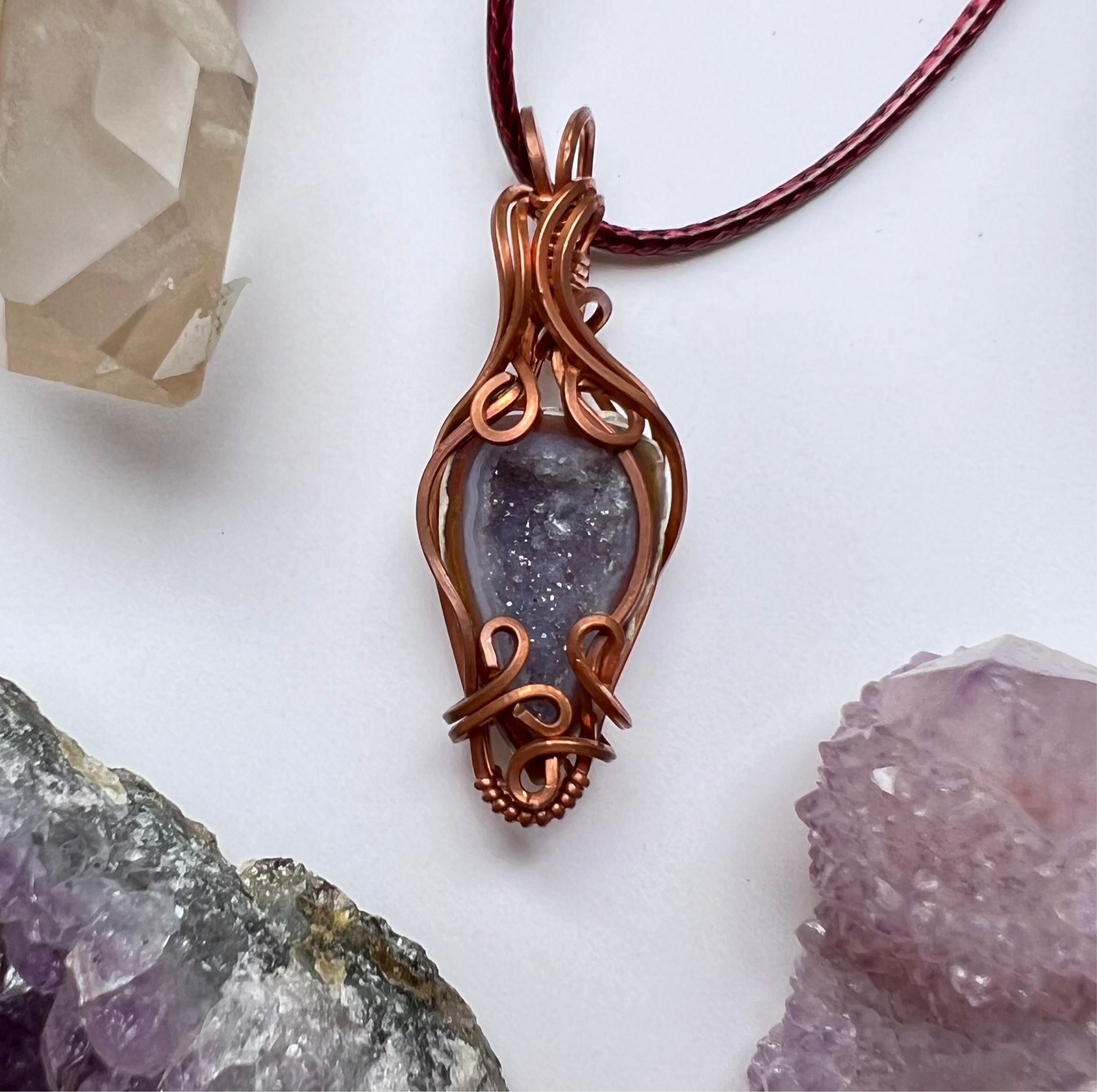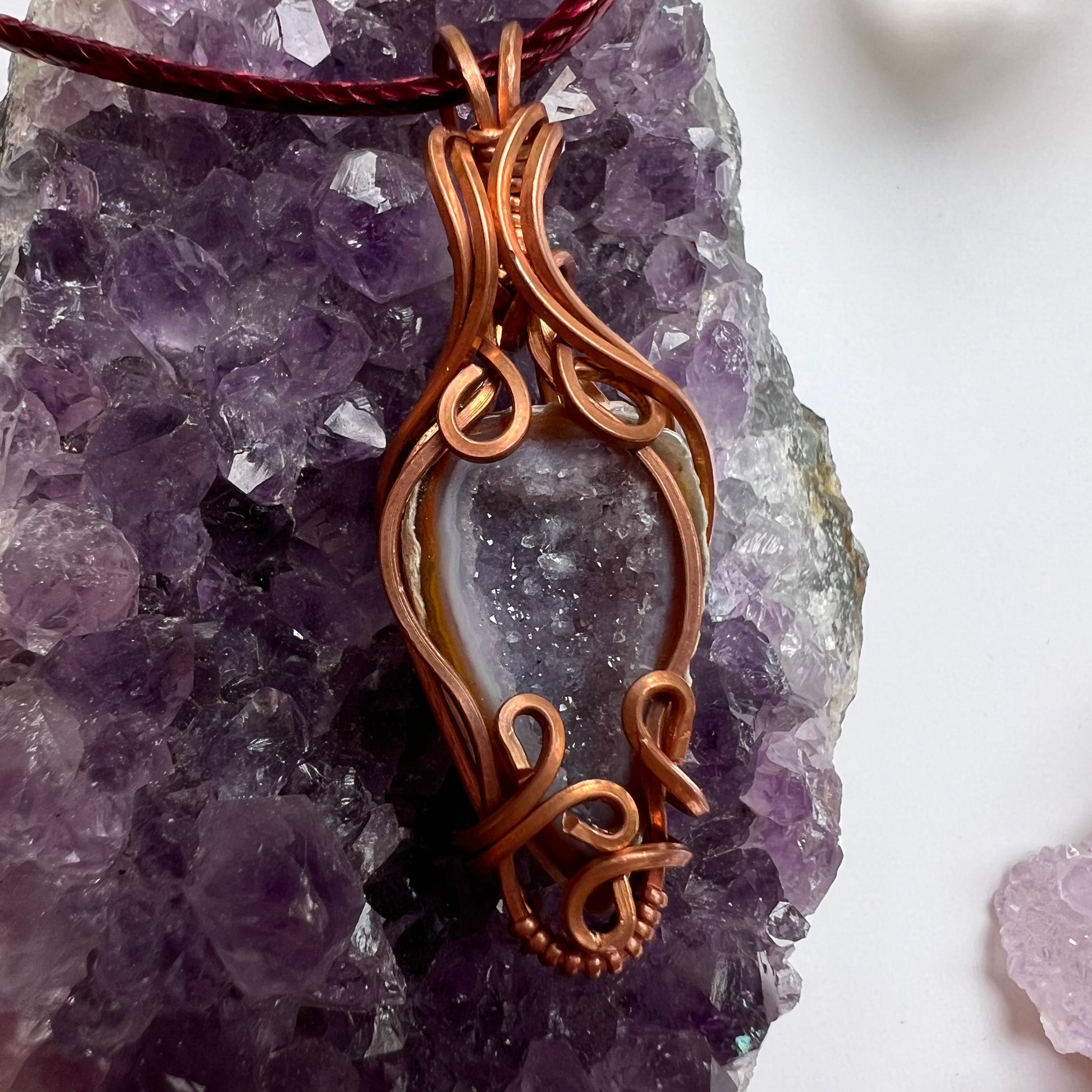 Tabasco Geode Pendant Wire-Wrapped in Copper