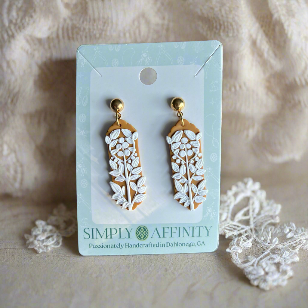 Step into a world of delicate elegance with The Lorelei. Each pair is meticulously hand-sculpted, drawing inspiration from the intricate lace patterns on a cherished friend, Lorelei's, wedding dress. Originally crafted in translucent clay to beautifully mimic the fabric of her wedding gown, these earrings are now available in a delightful honey yellow hue that captures the warmth and joy of love.