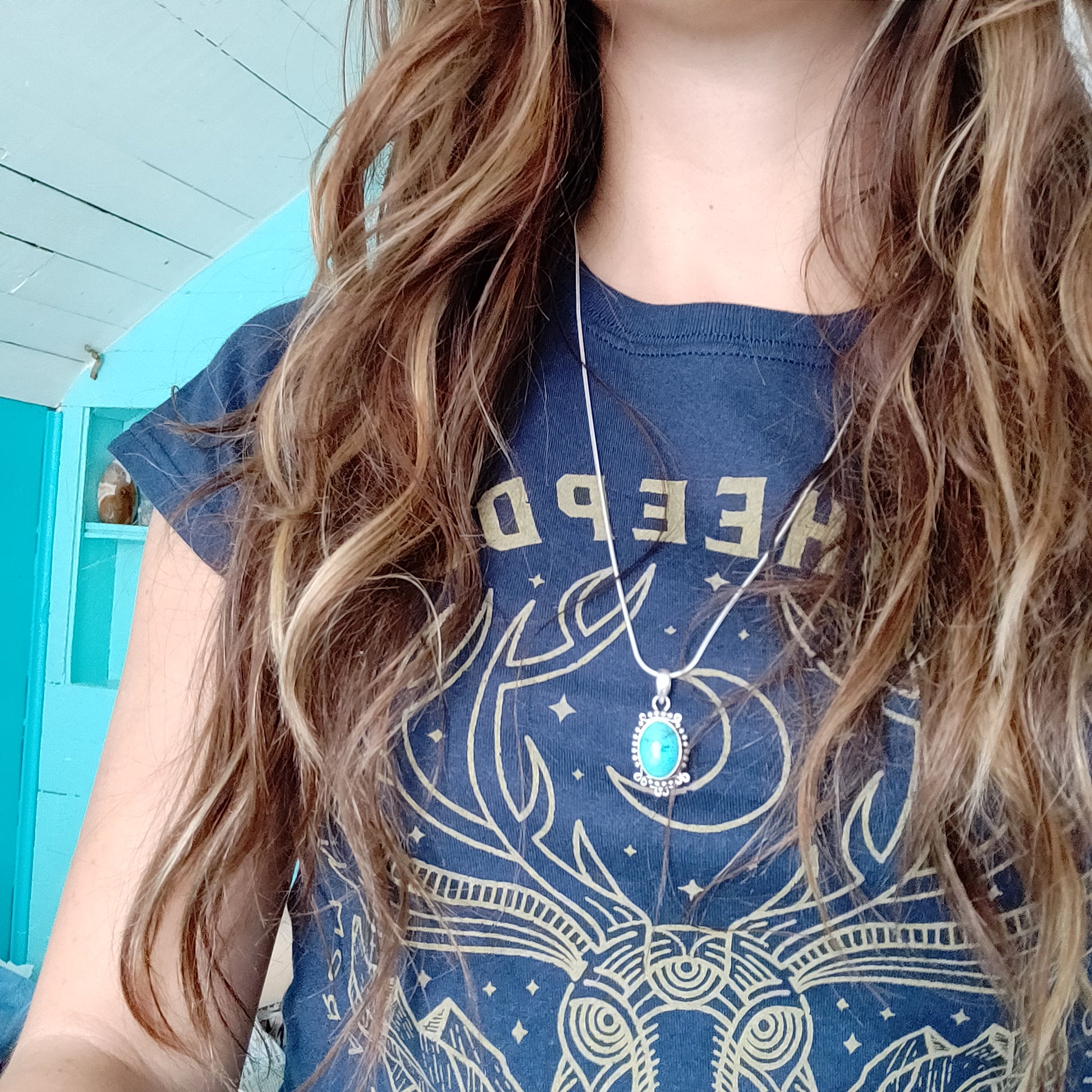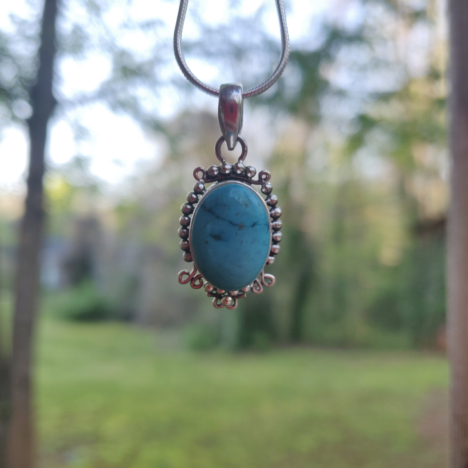 This gorgeous Turquoise pendant is made of .925 sterling silver. Turquoise is a stone of protection.